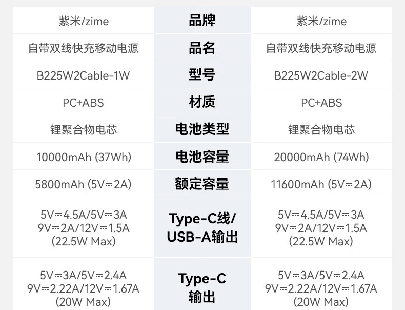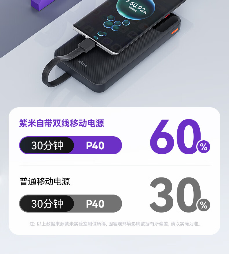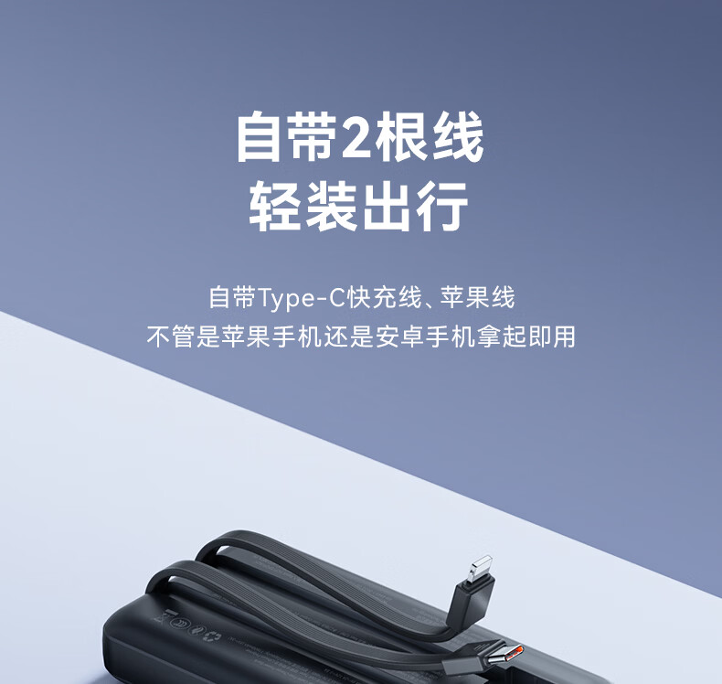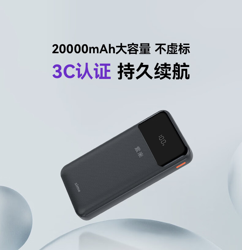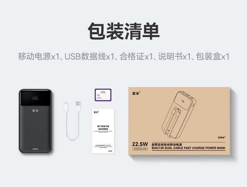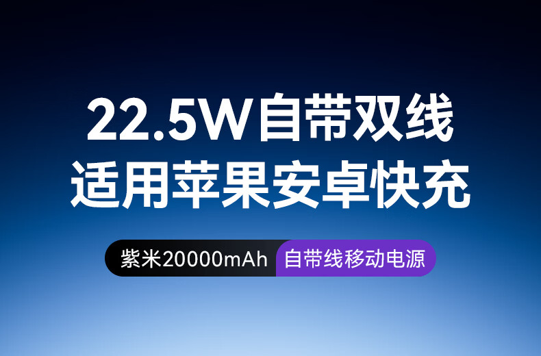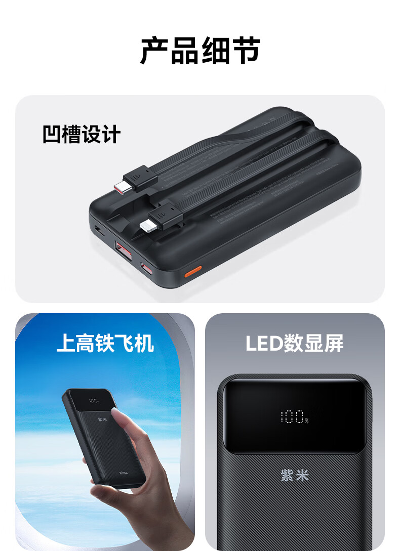 紫米3c认证充电宝自带线20000毫安大容量可上飞机22.5W超级快充苹果PD20W小巧便携适用华为小米手机 【20000mAh】自带线22.5W快充|白