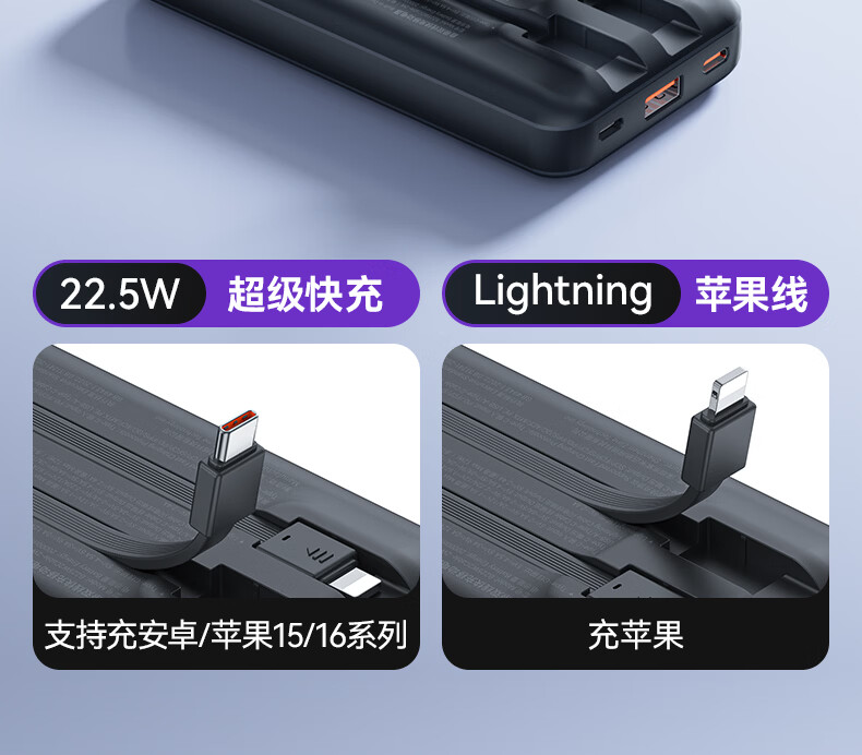 科小匠固态充电宝【买一送一】自带线大容量【3C认证|可上飞机】固态充电宝22.5W快充苹果安卓通用 暮黑|3c认证 16000毫安 可上飞机