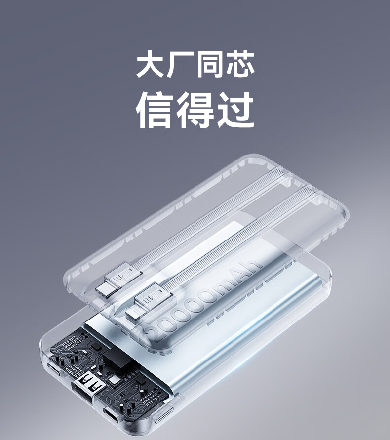 SOULUX【新国标3C认证 | 直营正品】可上飞机超级快充自带线充电宝小巧便携大容量移动电源适用苹果安卓 【20000M顶配版】皓月白 26年新3C认证 | 可上飞机高铁
