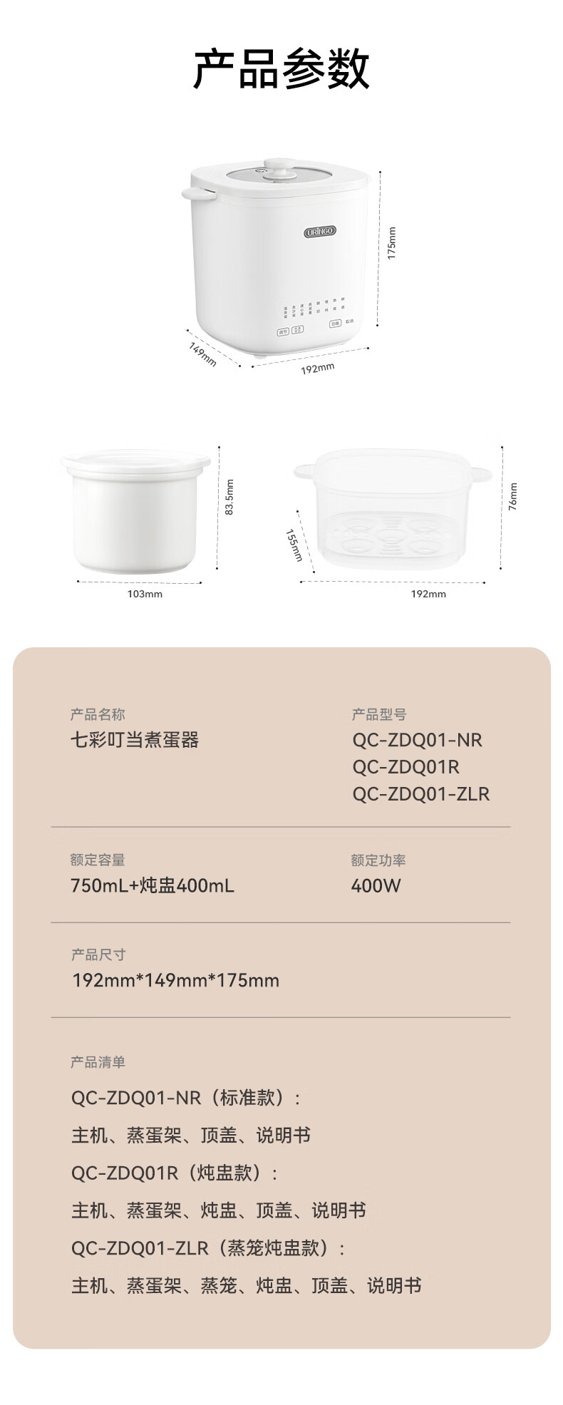 七彩叮当煮蛋器蒸蛋器蒸锅电蒸锅蒸煮多功能一体机全自动智能煮鸡蛋神器小蒸锅1-2人早餐机 单层 【炖盅款】