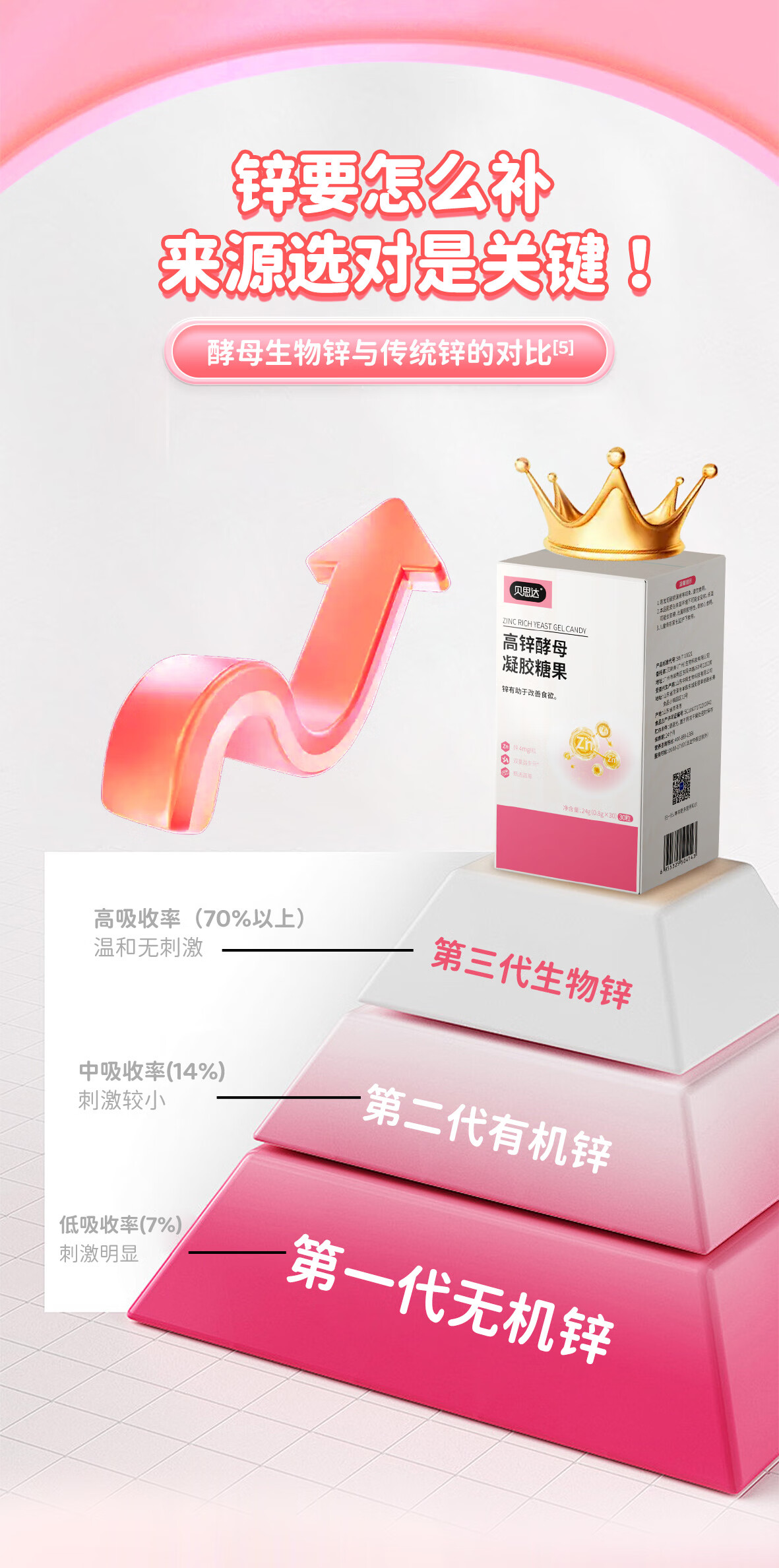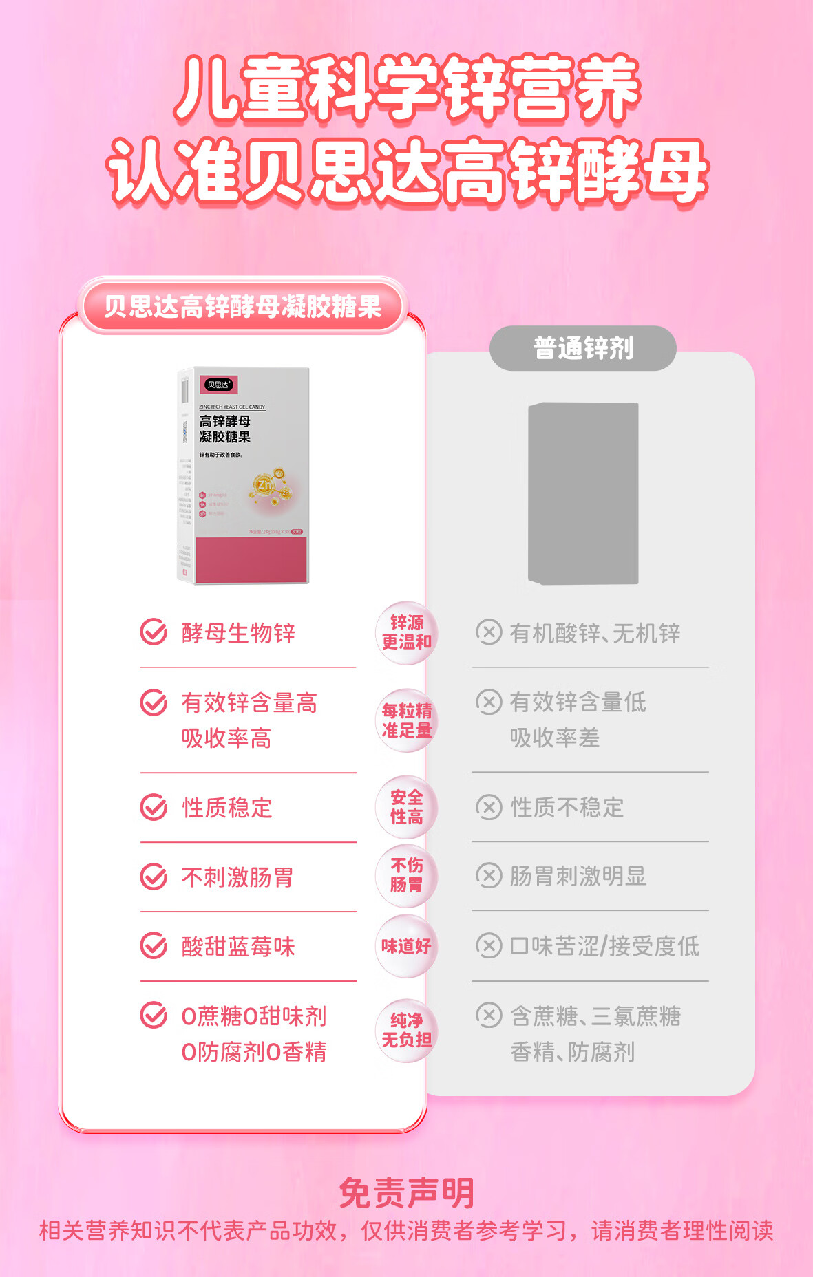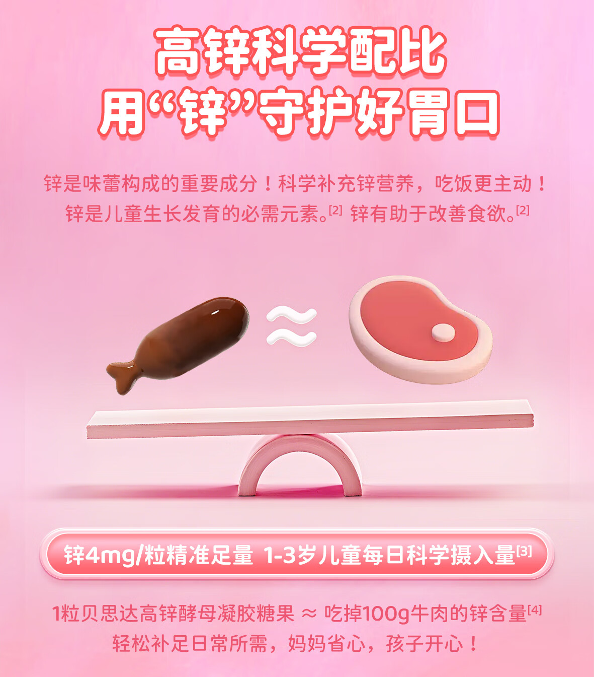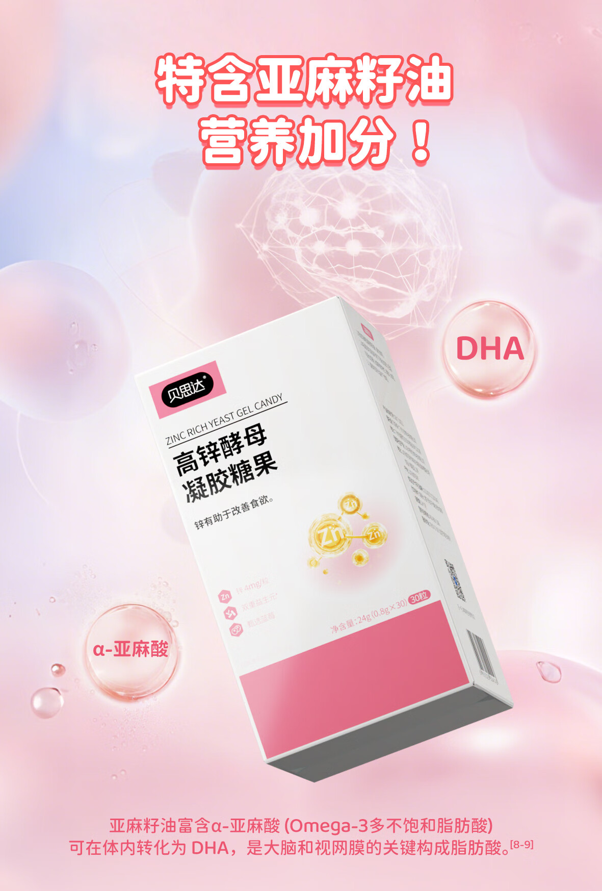 贝思达高锌酵母凝胶糖果软糖补充剂儿童成长补锌营养品 30粒*1盒