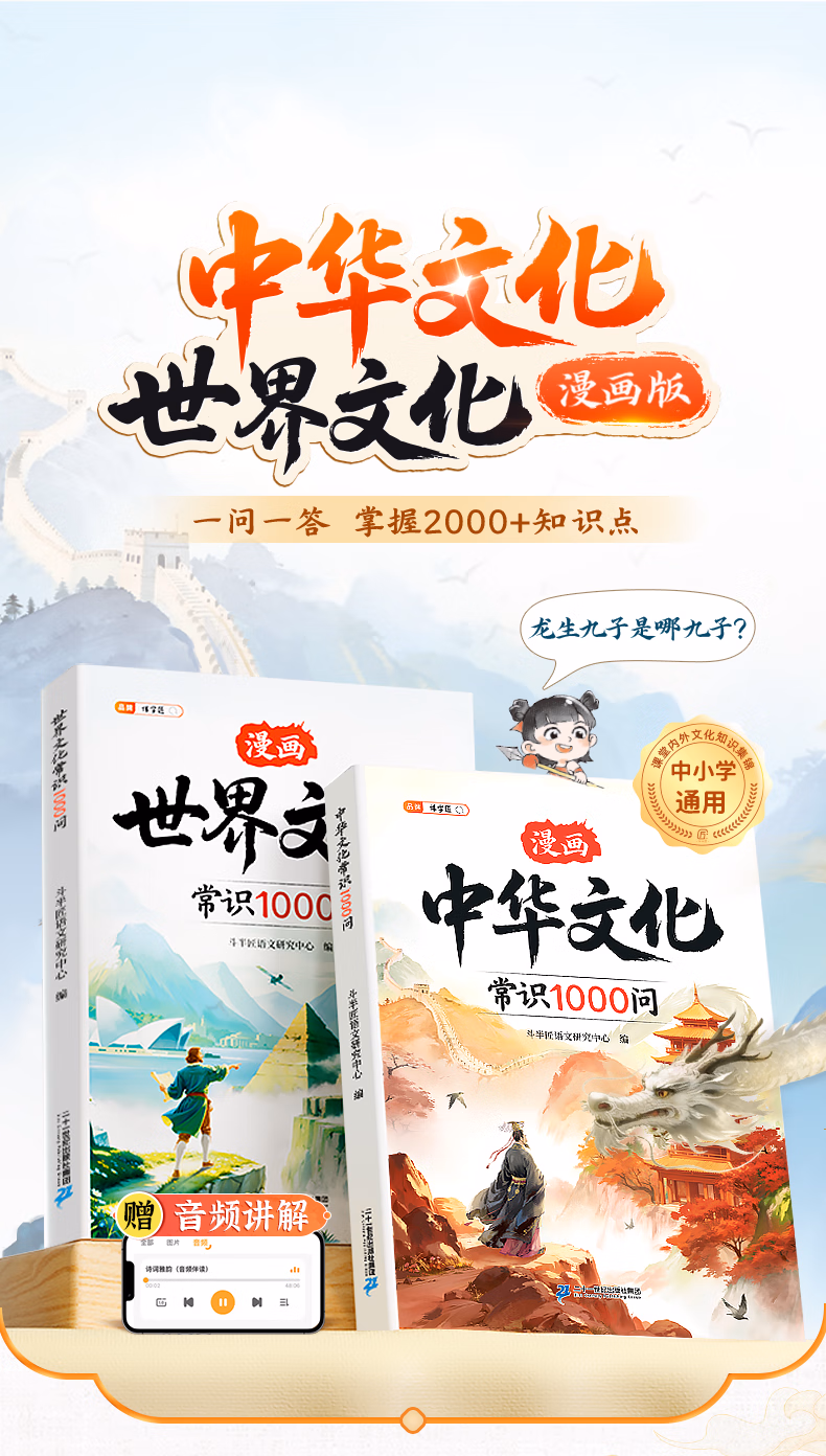 【伴学匠】中华文化常识1000问百科常识漫画版中国文化世界文化一千问古典文学常识青少年中小学生课外读物经典历史常识古代文化传承阅读书籍 漫画中华文化常识1000问