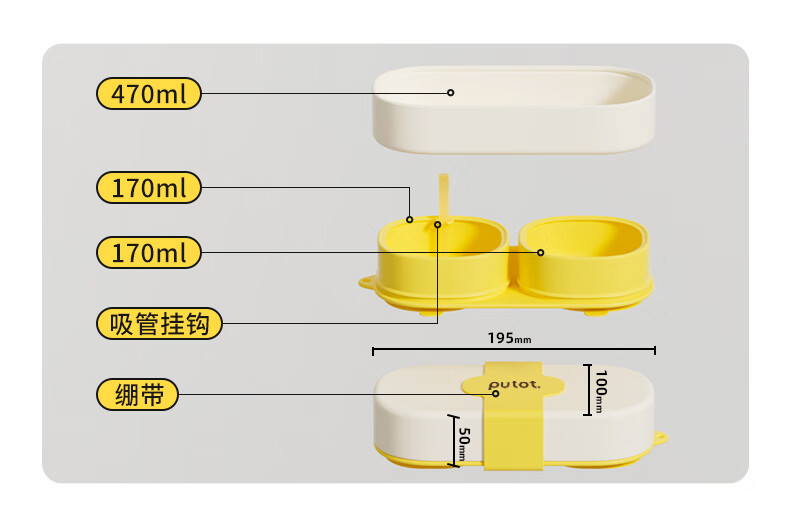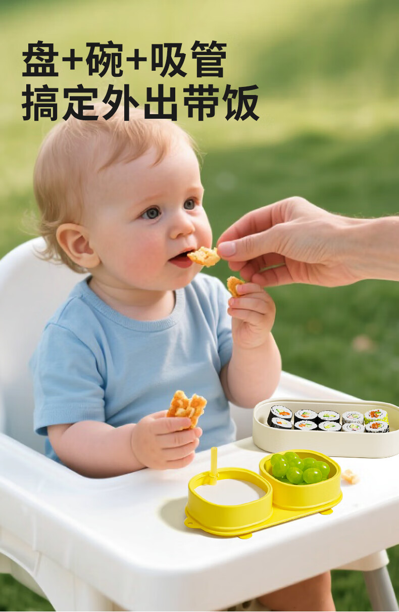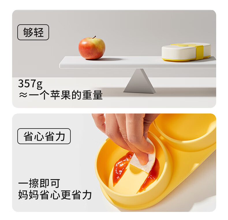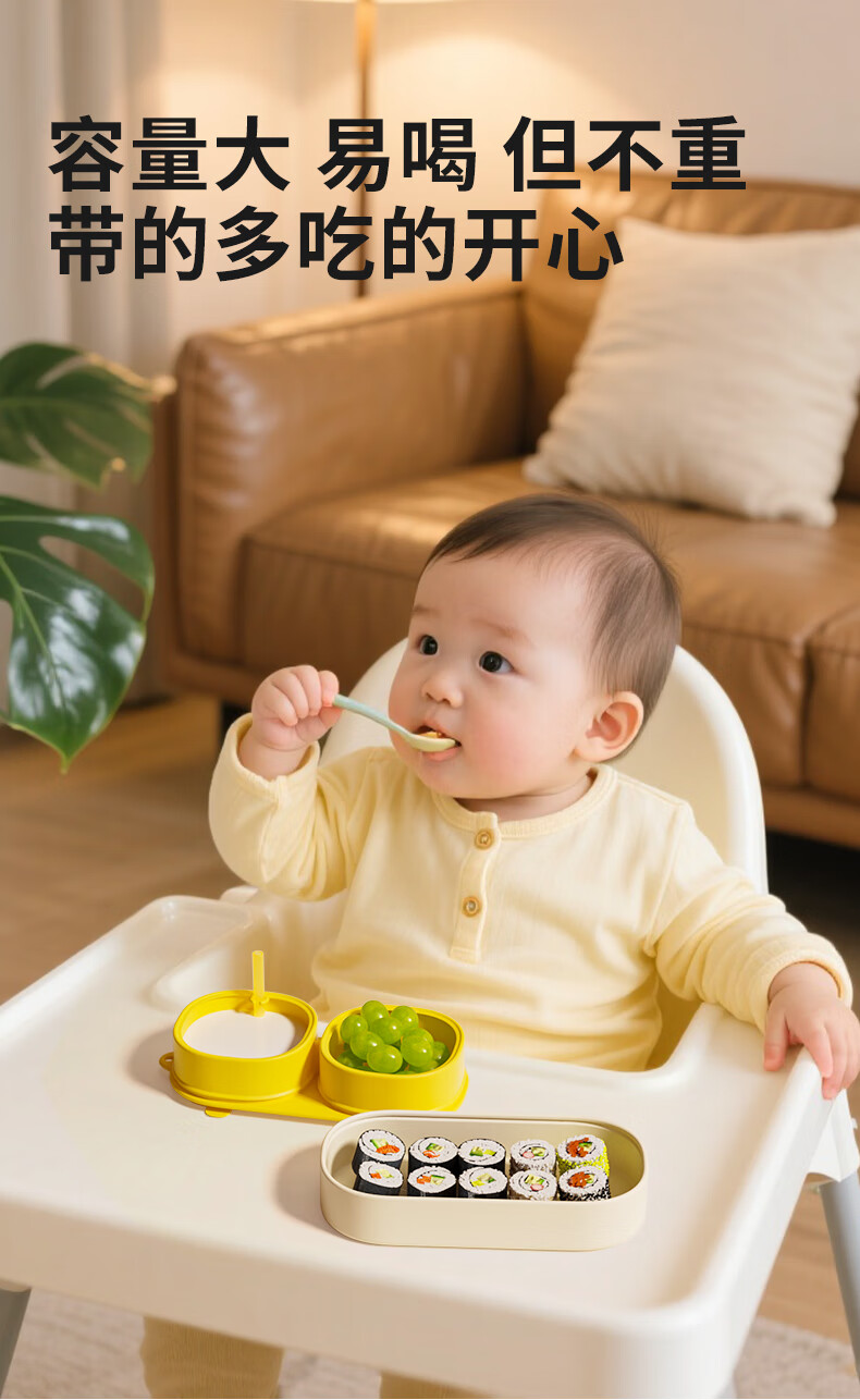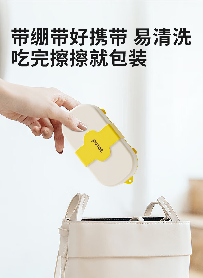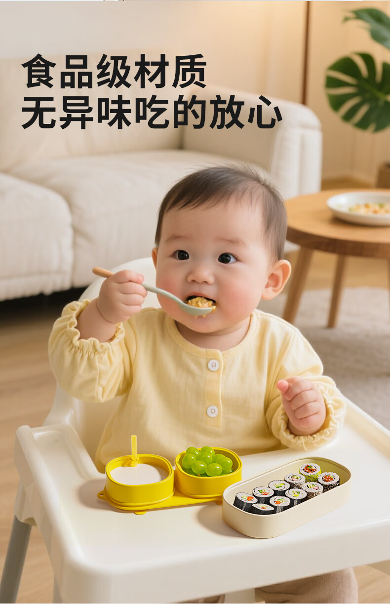 PUTOT宝宝硅胶辅食分格餐盘1可蒸煮外出露营便携保鲜便当饭盒儿童餐具3 柠檬黄-硅胶餐盒 【食品级硅胶】