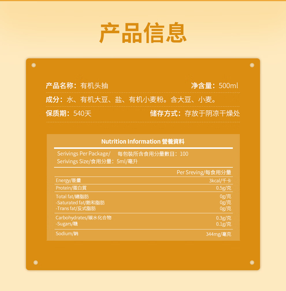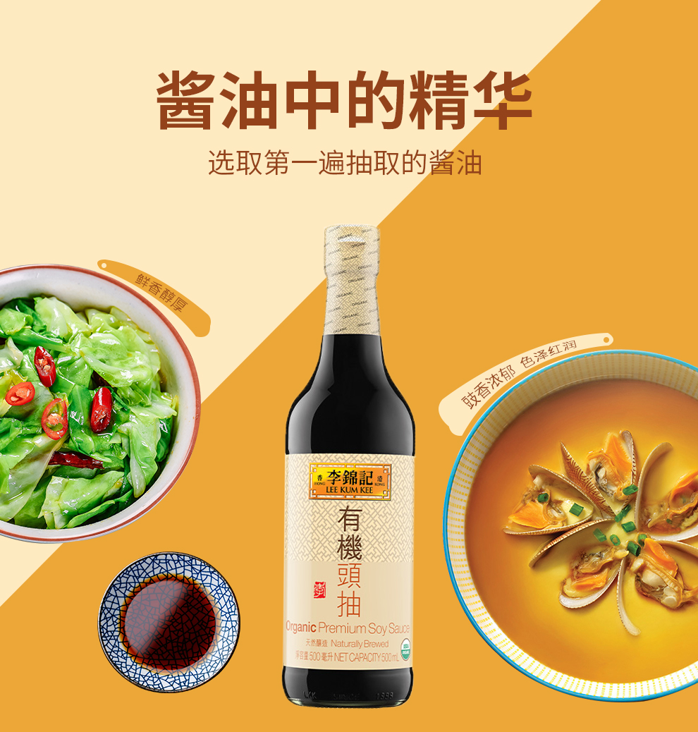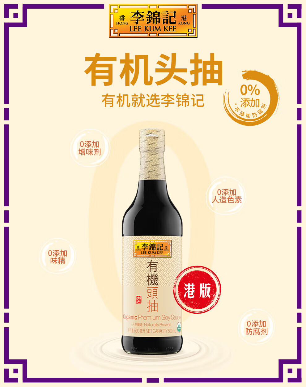 李锦记(LEE KUM KEE)有机头抽500ml 有机认证港版生抽酱油香港豉油0添加防腐剂自然鲜