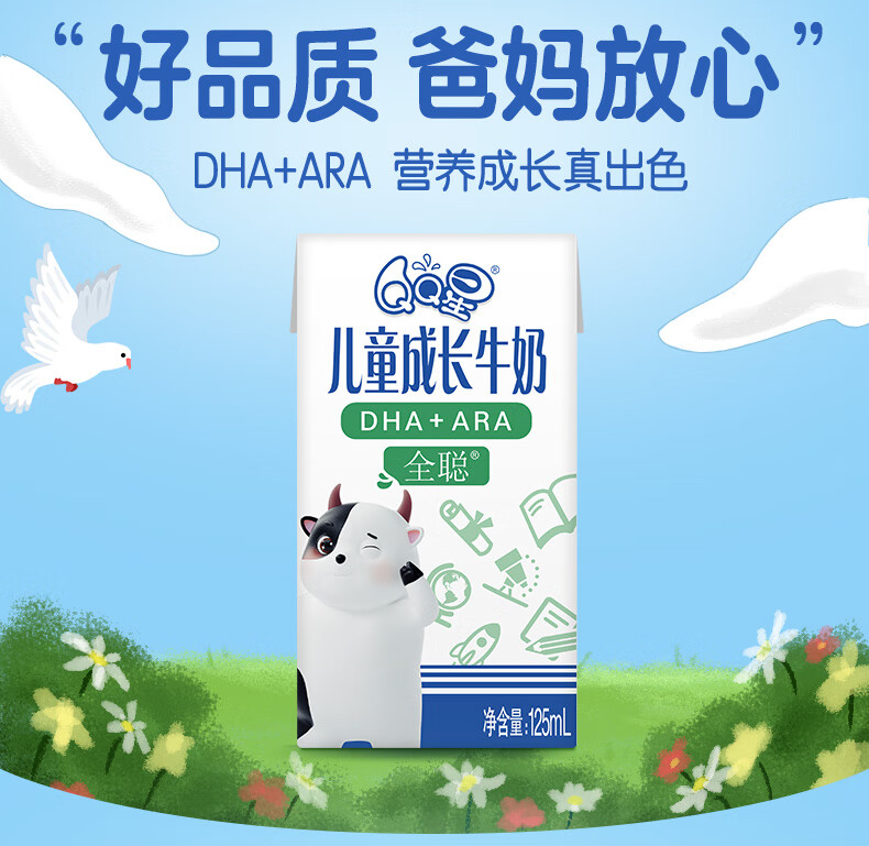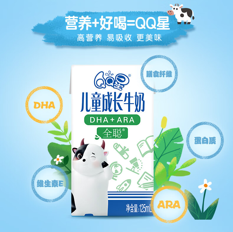 QQ星伊利儿童成长牛奶早餐奶全聪125ml*20盒 礼盒装【周深同款QQ星】