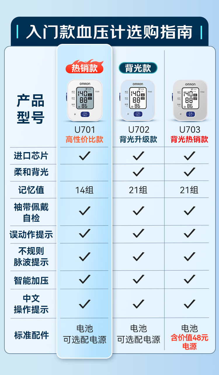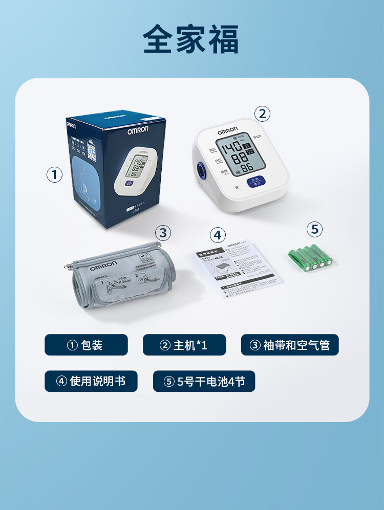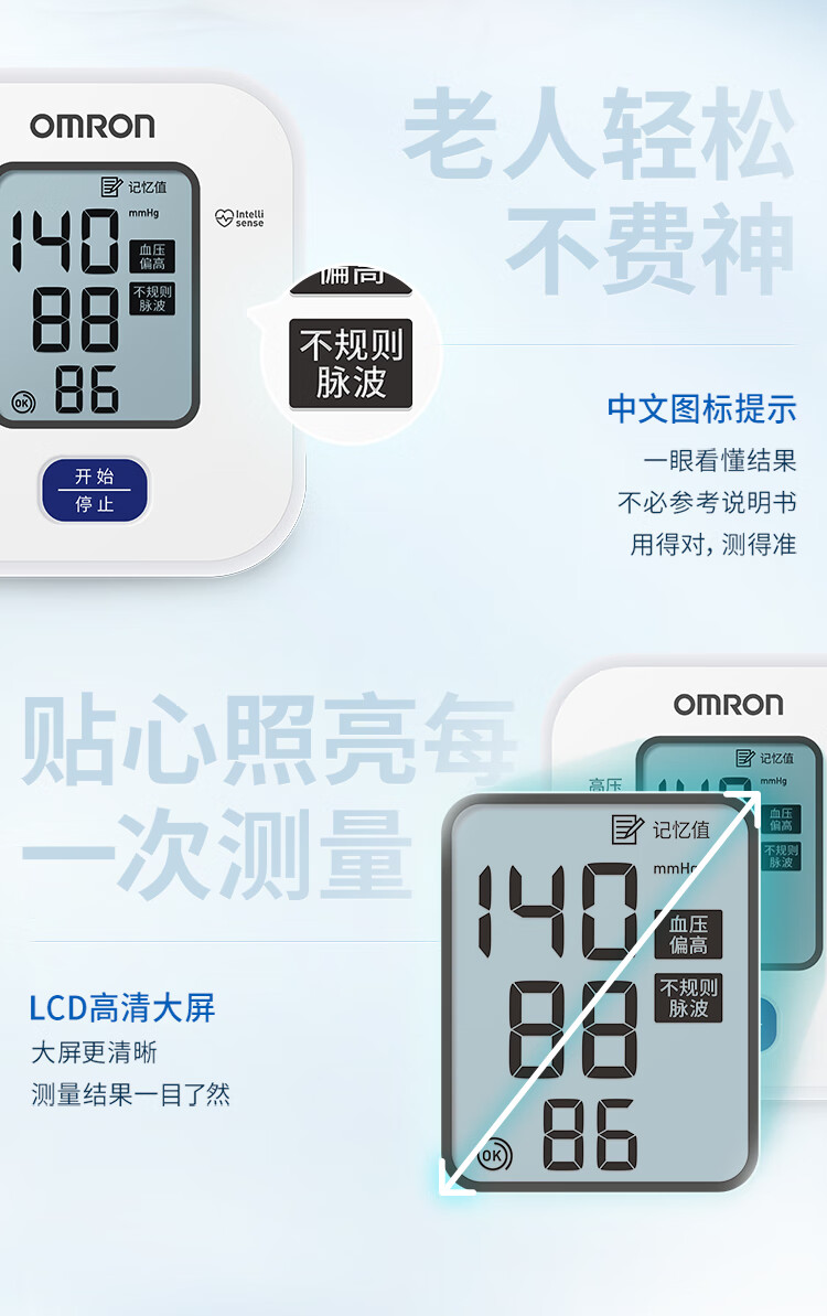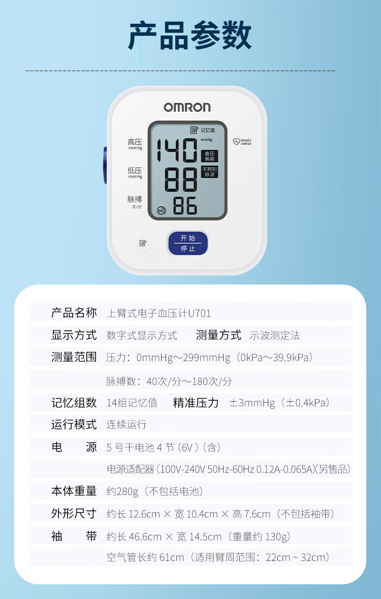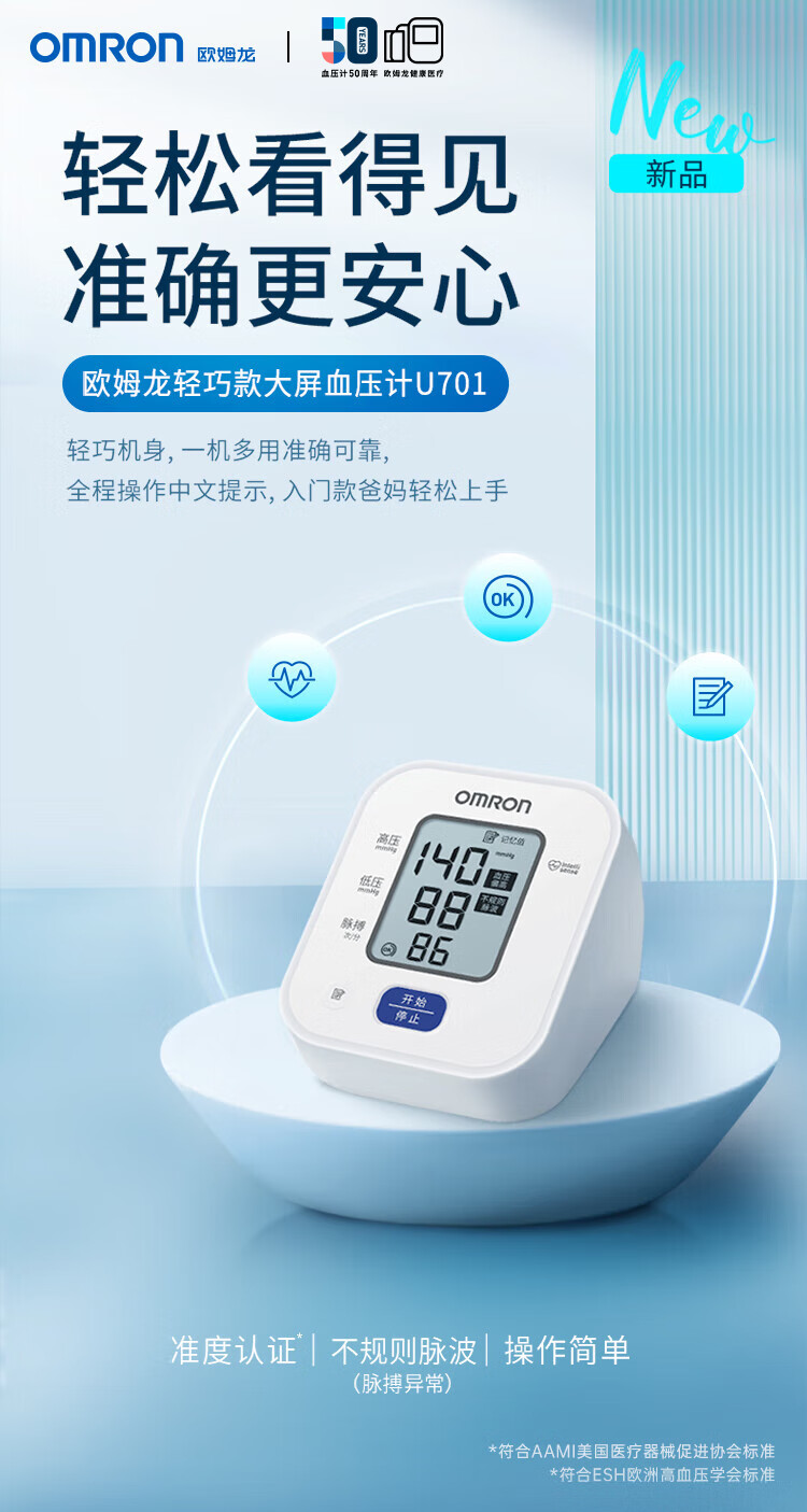 欧姆龙(OMRON)电子血压计上臂式血压仪家用 大屏医用高精准老人U701 年货
