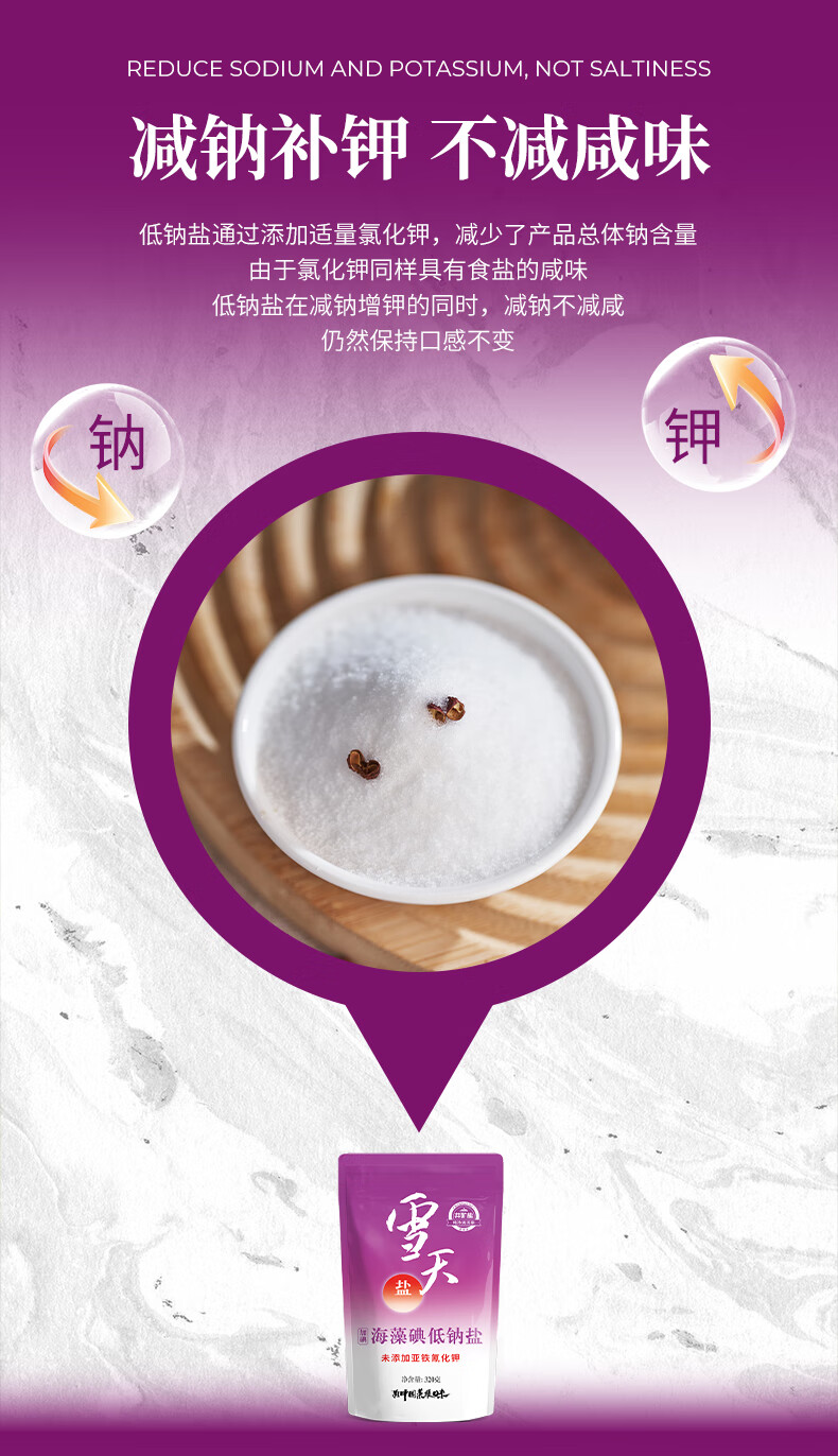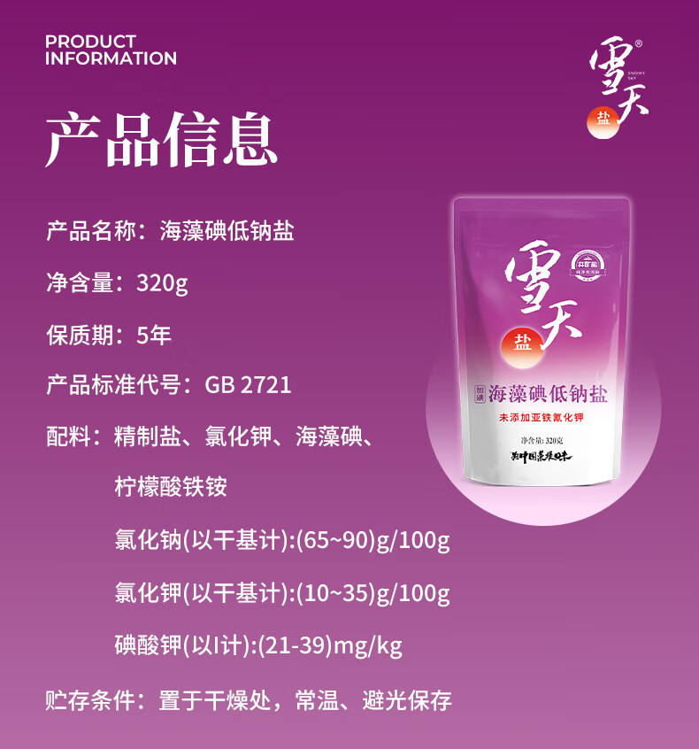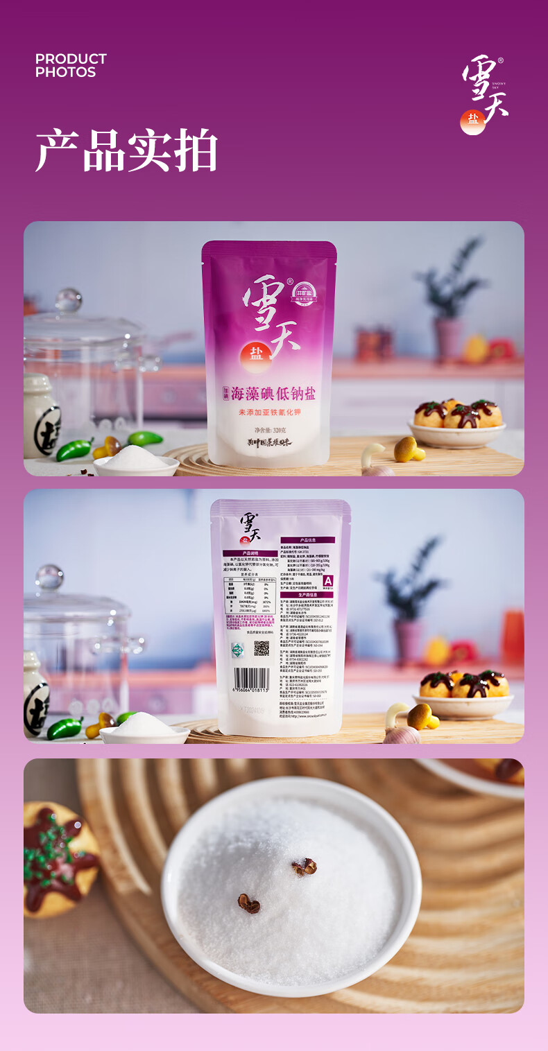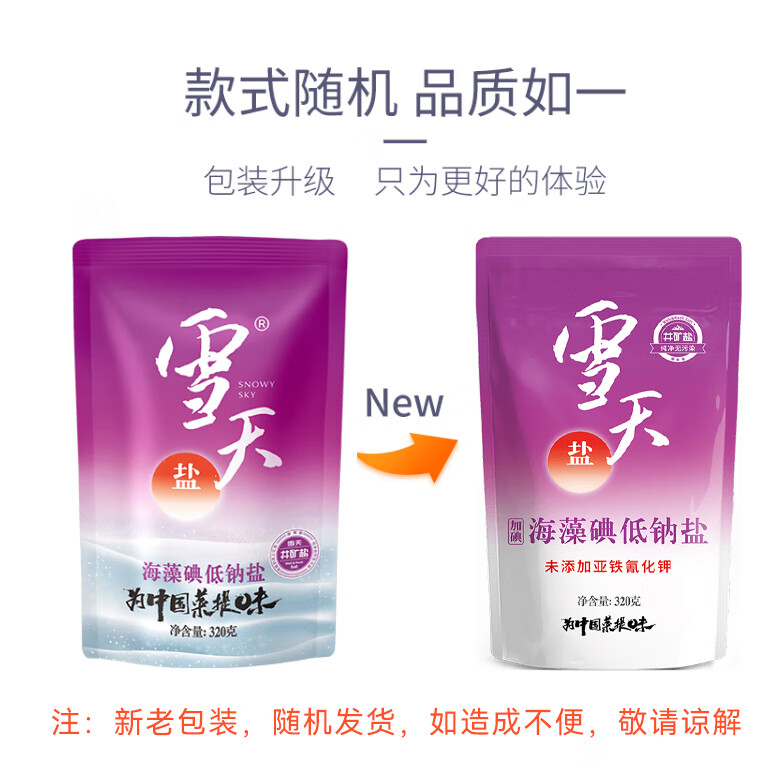 雪天海藻碘低钠盐320g*3【加碘】食用盐 家用烹饪调味品调料 深井岩盐