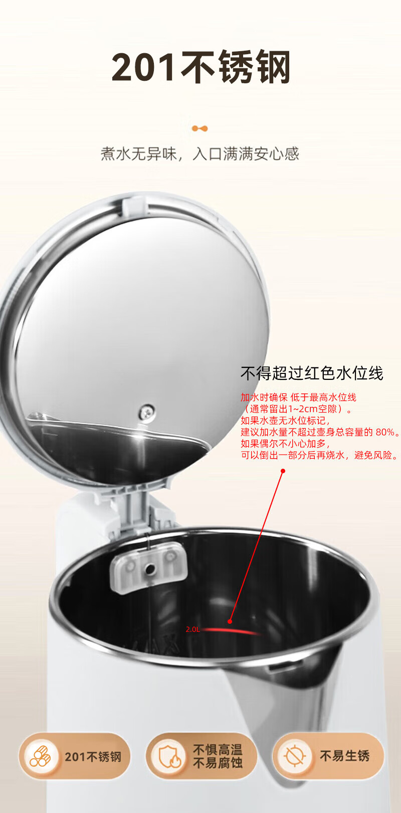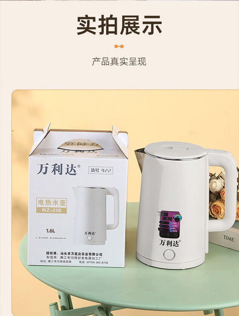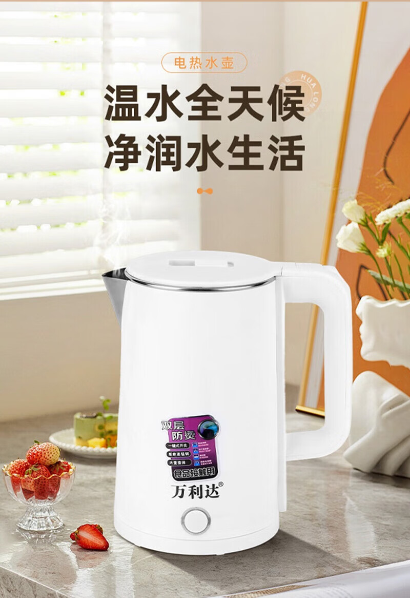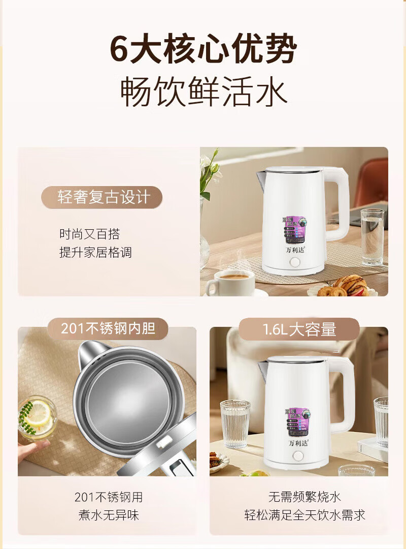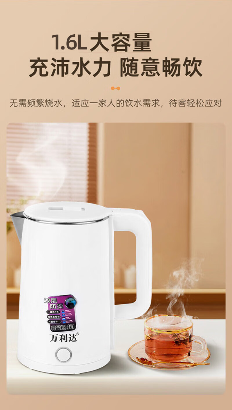 万利达烧水壶热水壶电热水壶电水壶煮水壶恒温便携家用新款大容量食品级不锈钢 1.6L 加厚旗舰款