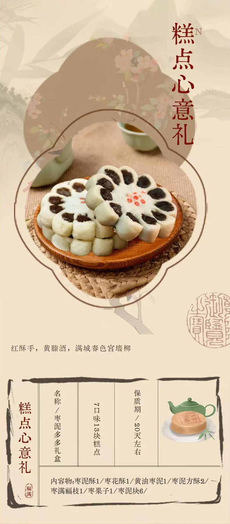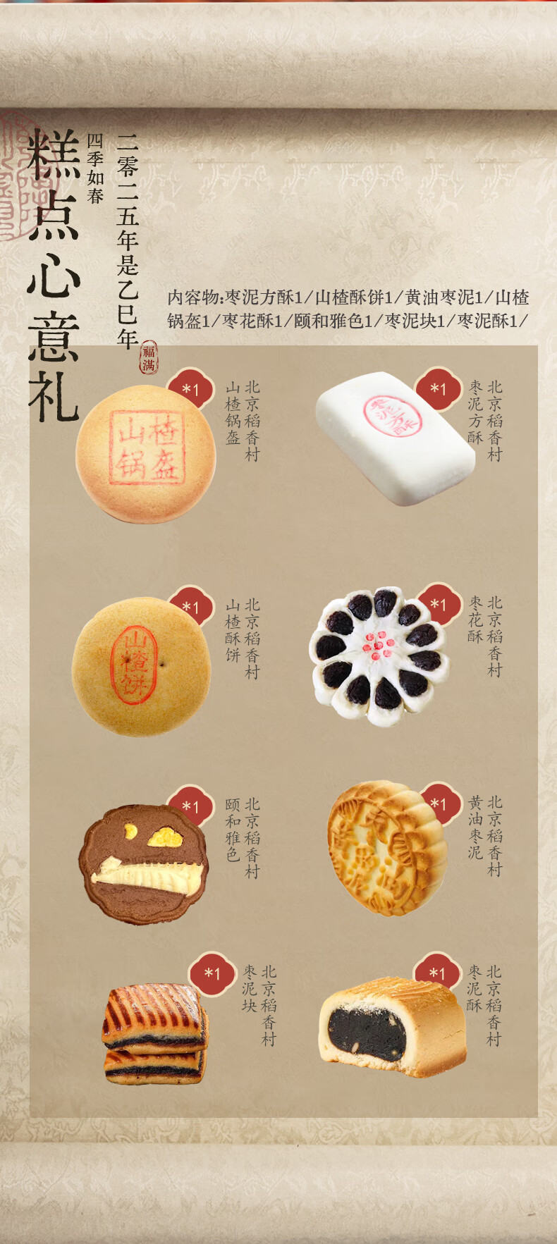 北京稻香村稻香村糕点礼盒三禾北京特产点心伴手礼网红下午茶零食点心礼盒 枣泥多多13块