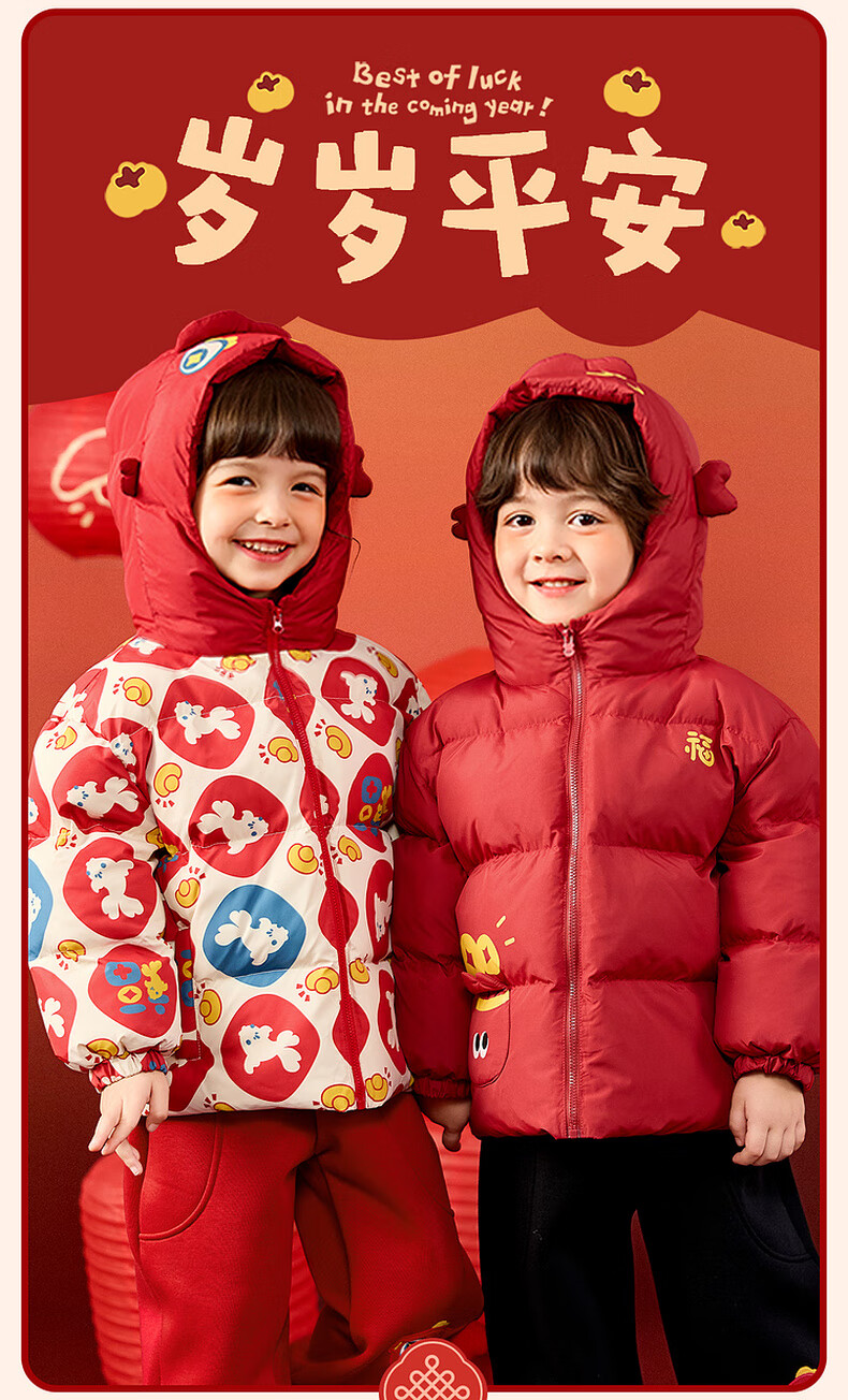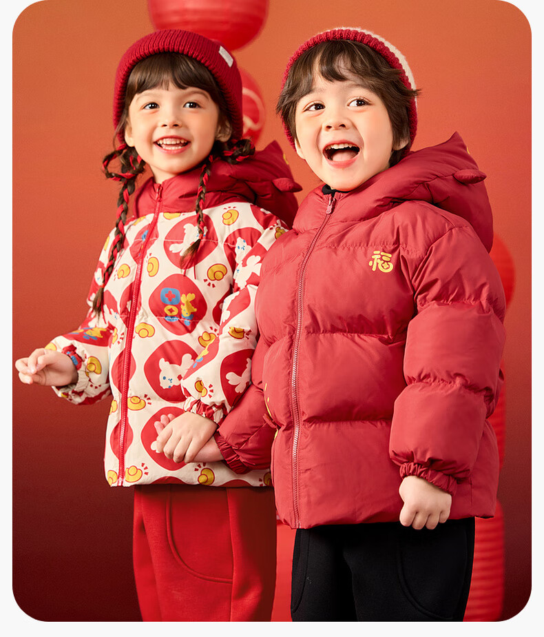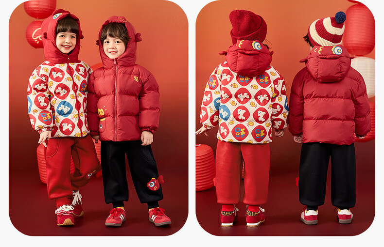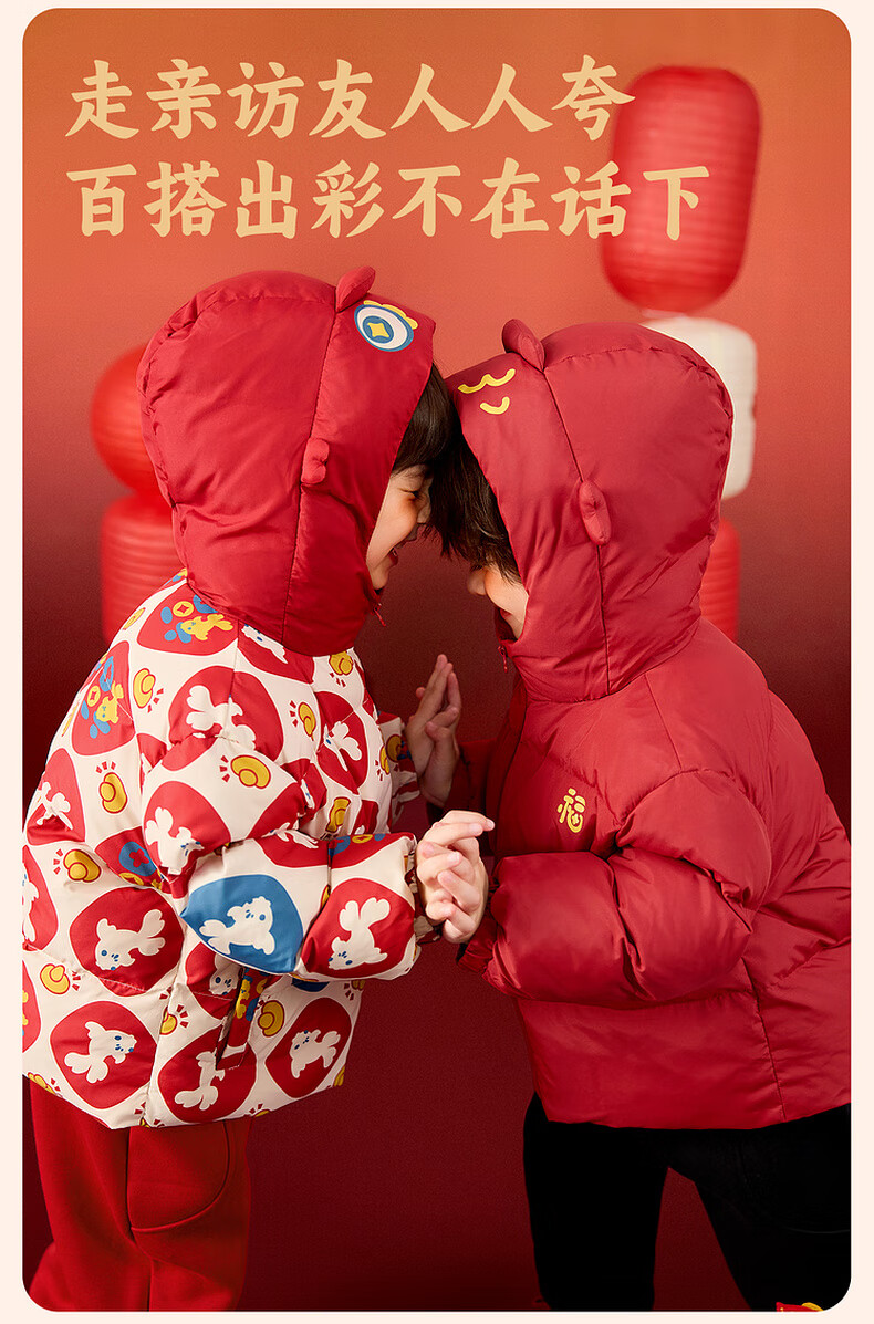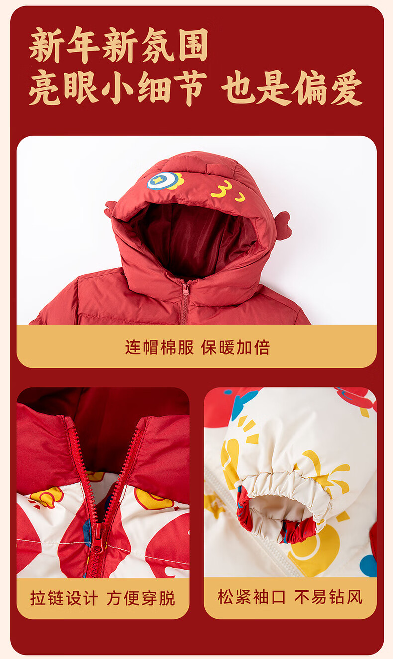 嘟嘟家儿童棉服红色冬装男童拜年服女童新年衣服喜庆宝宝棉袄冬款童装潮 红色 110