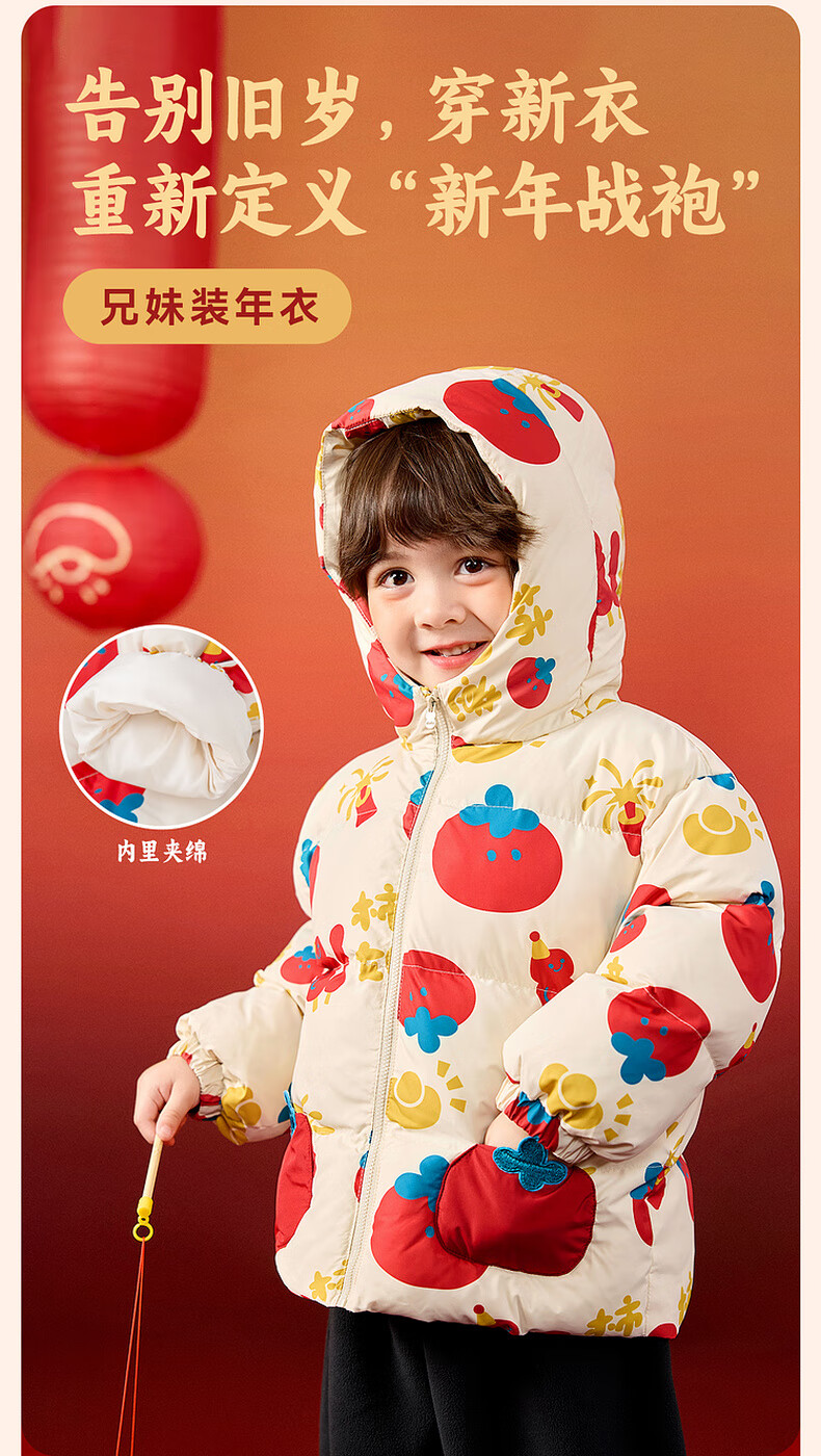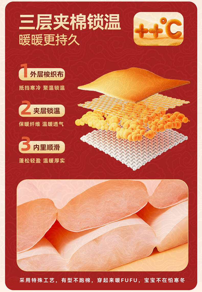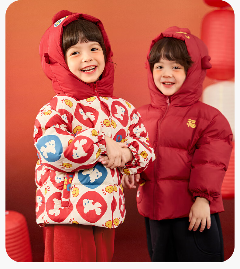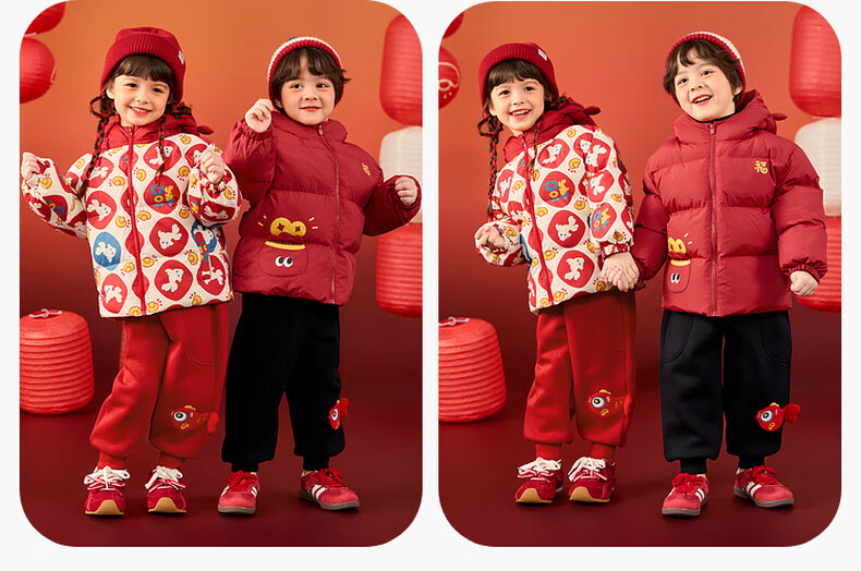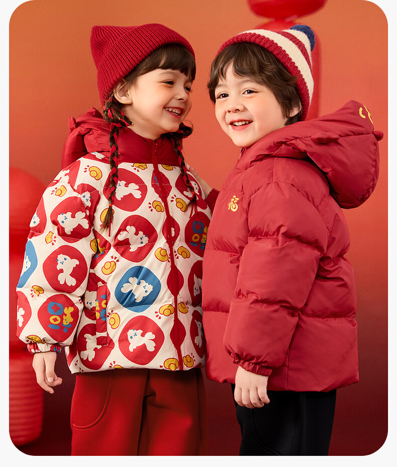 嘟嘟家儿童棉服红色冬装男童拜年服女童新年衣服喜庆宝宝棉袄冬款童装潮 红色 110