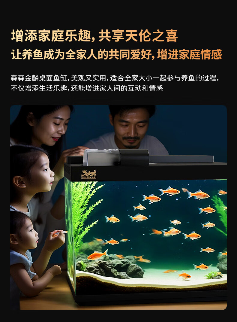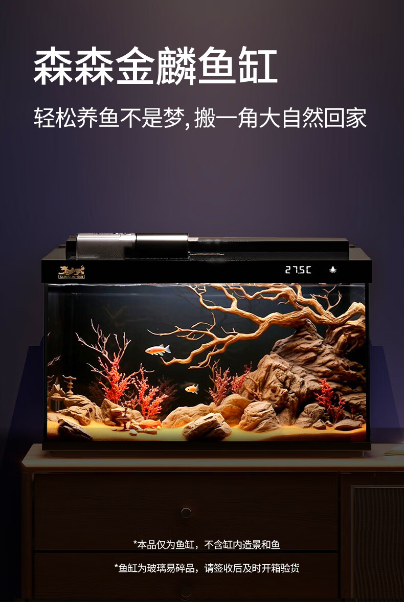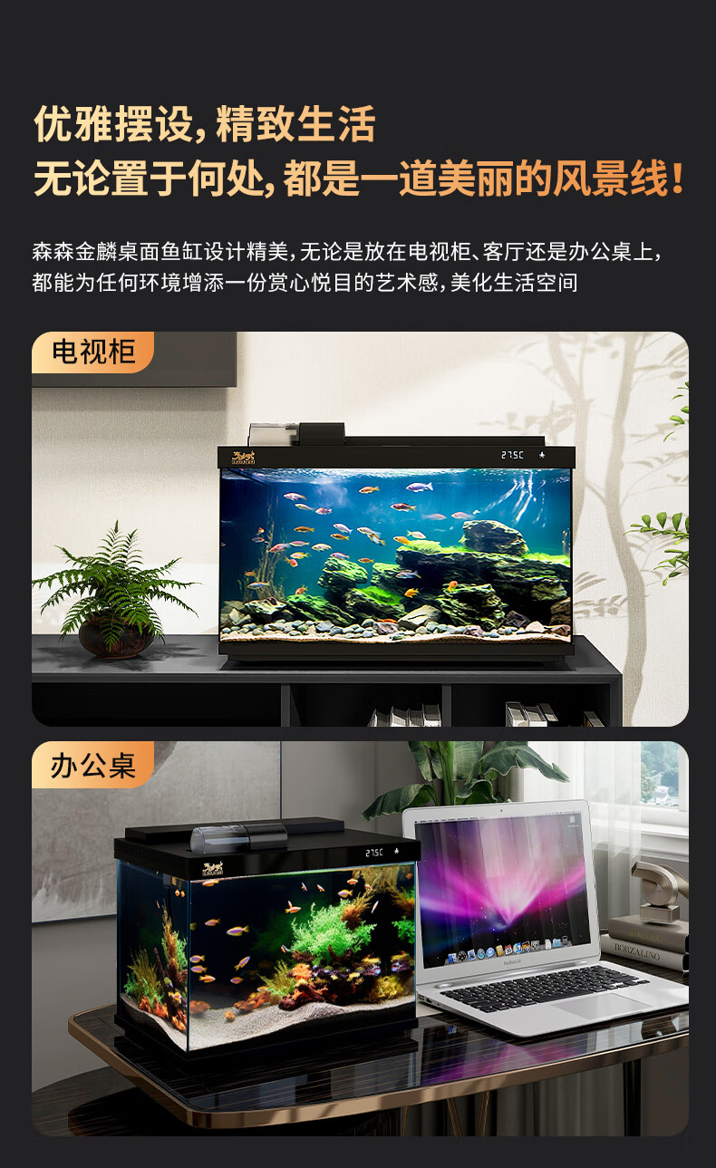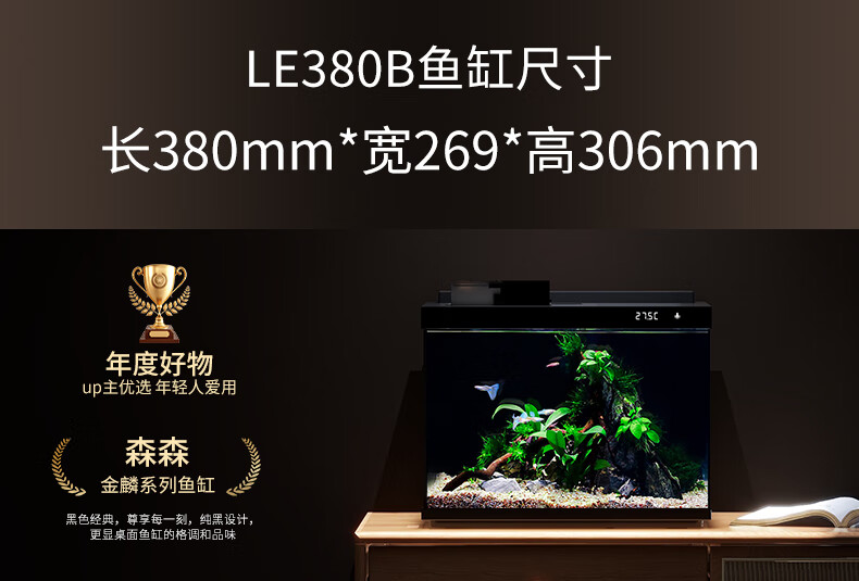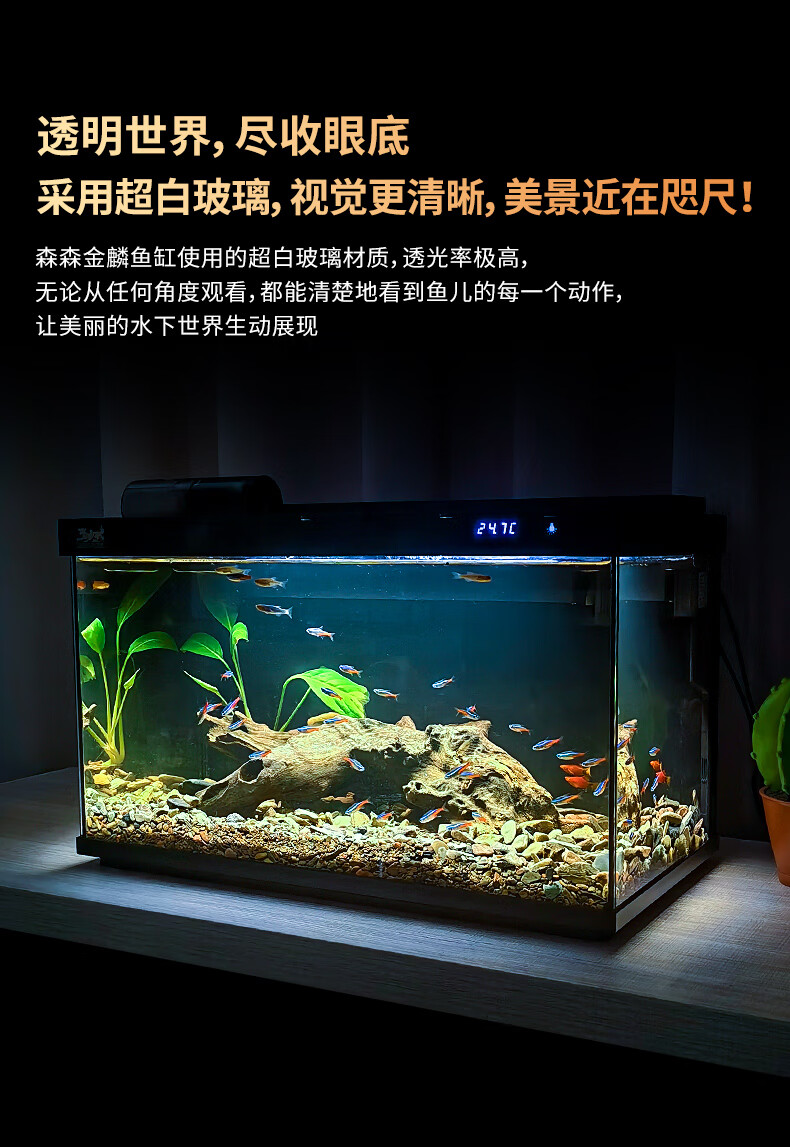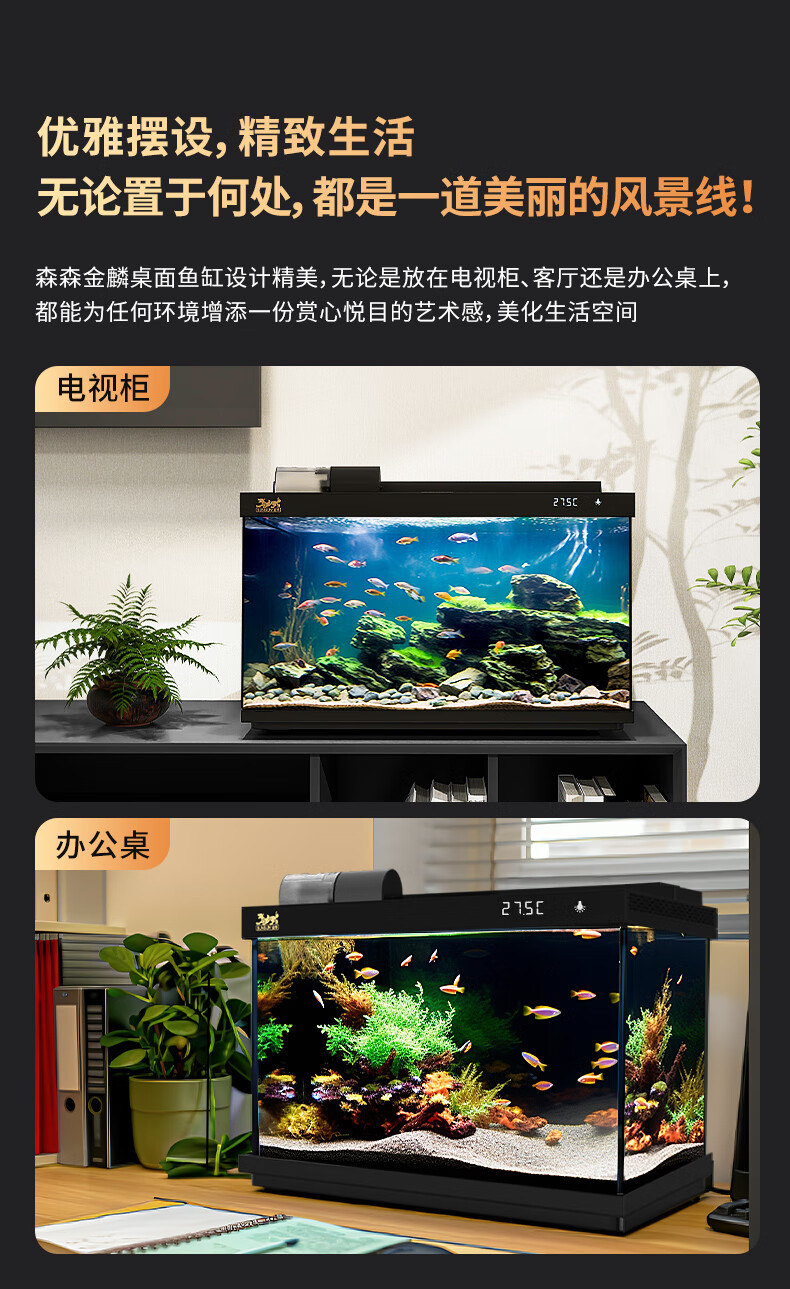 森森金麟超白玻璃鱼缸一体缸自循环客厅小型LEA-380黑色