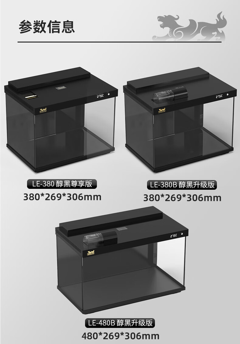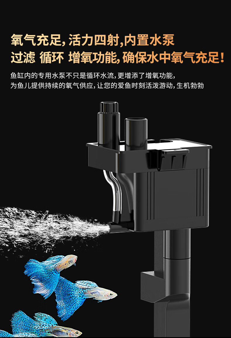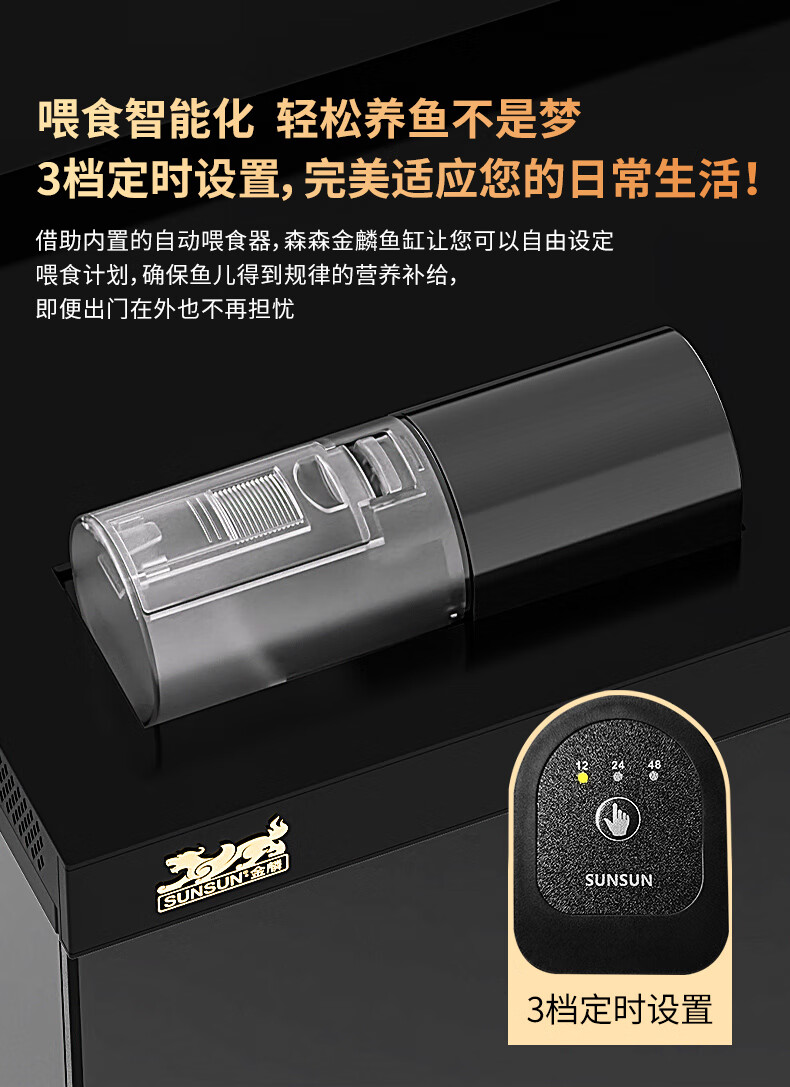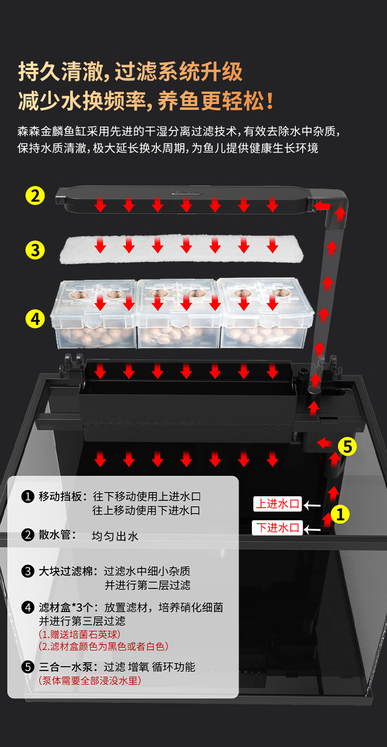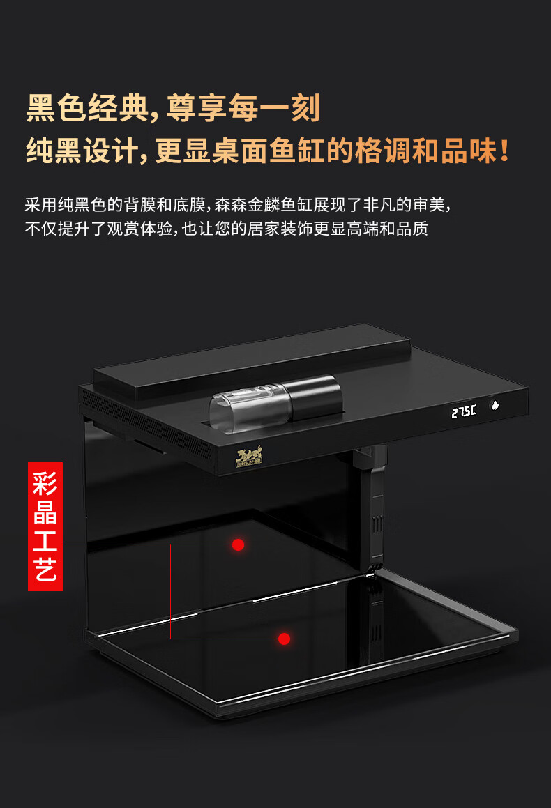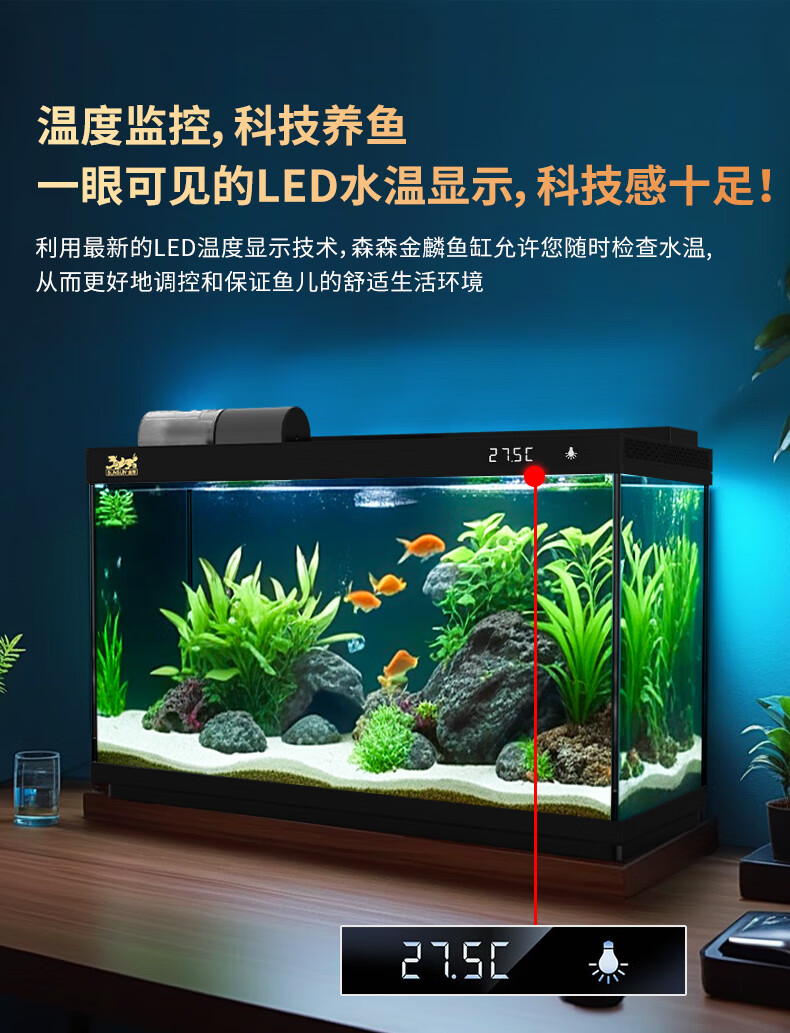 森森金麟超白玻璃鱼缸一体缸自循环客厅小型LEA-380黑色