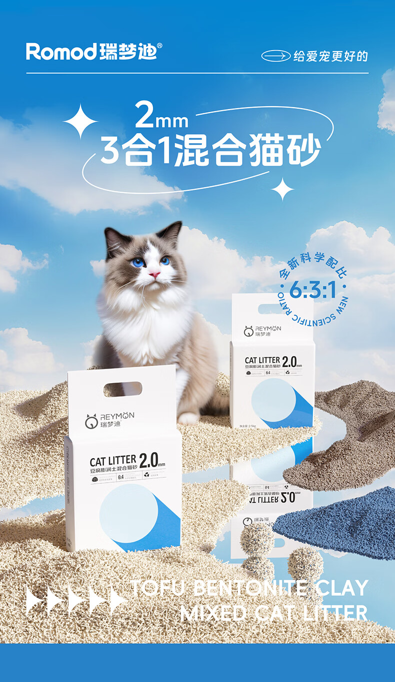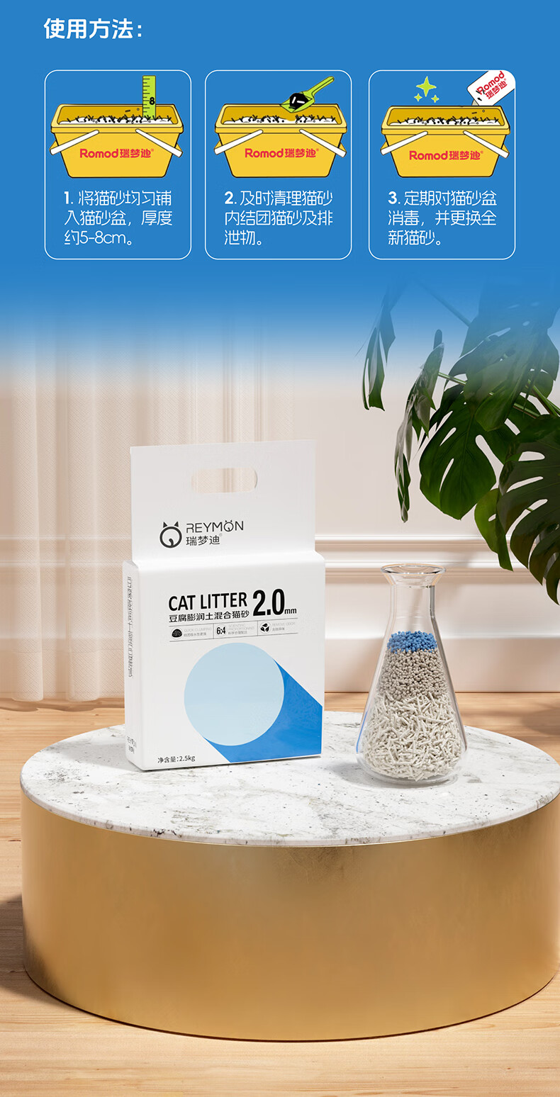 瑞梦迪除臭豆腐混合猫砂2.5kg*5包高效结团低尘吸水可冲厕所
