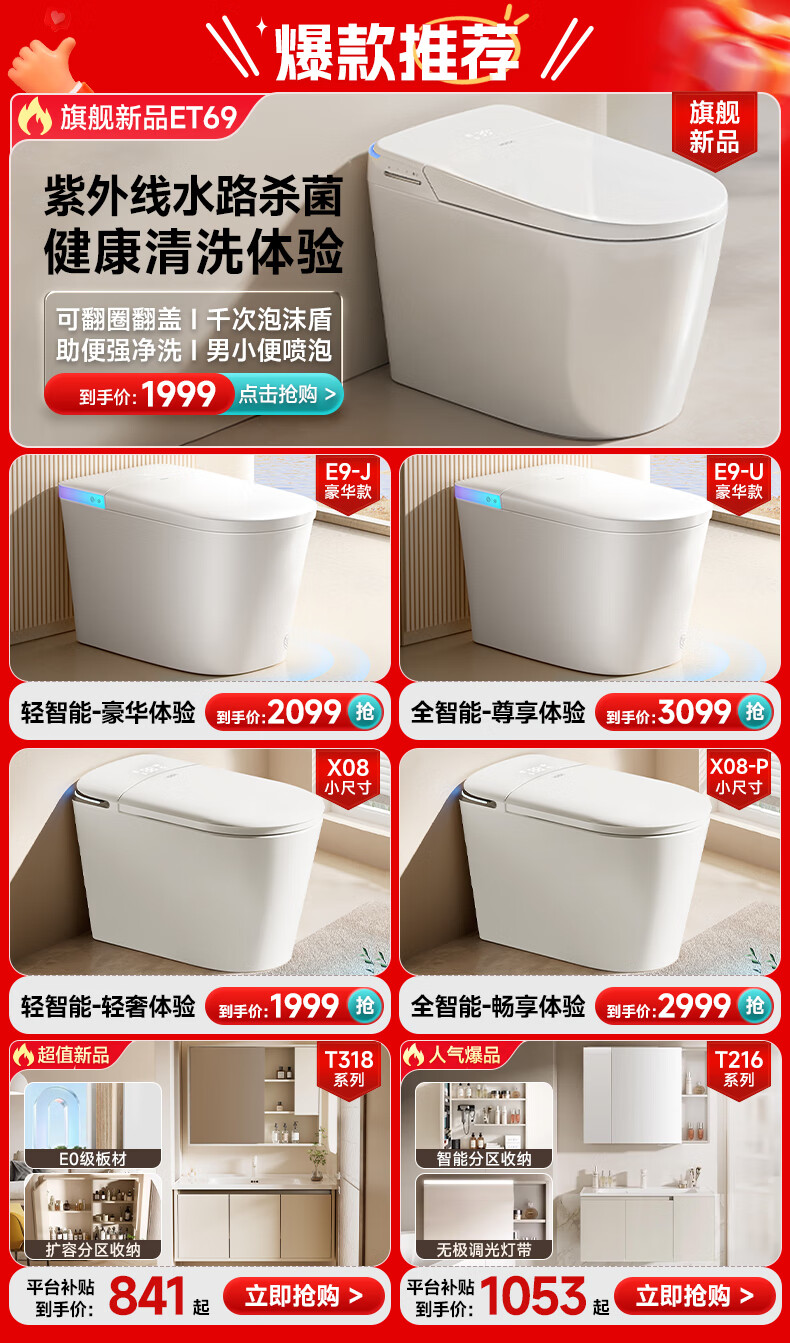 惠达(HUIDA)智能马桶坐便器不限水压内置泡沫盾座圈加热脚踢离座冲水ES50MAX ES50MAX紫外线杀菌|小便喷泡|千次泡沫 305/300mm (适用290-385mm)