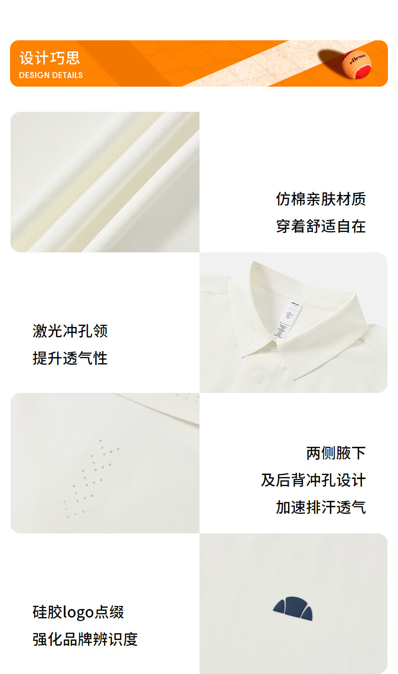 ellesse小贝壳26春夏新品网球服防晒透气运动速干经典Polo短袖男 本白 M