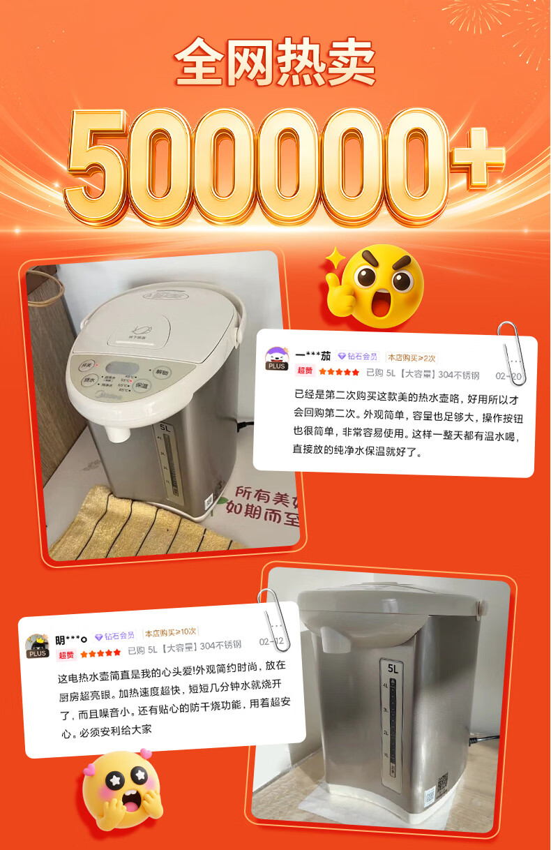 美的(Midea)电热水瓶电热水壶全自动断电保温控温恒温食品级304不锈钢5L大容量家用泡茶母婴冲奶神器Colour201