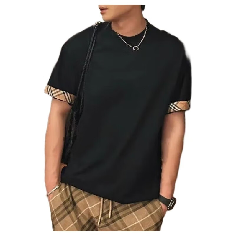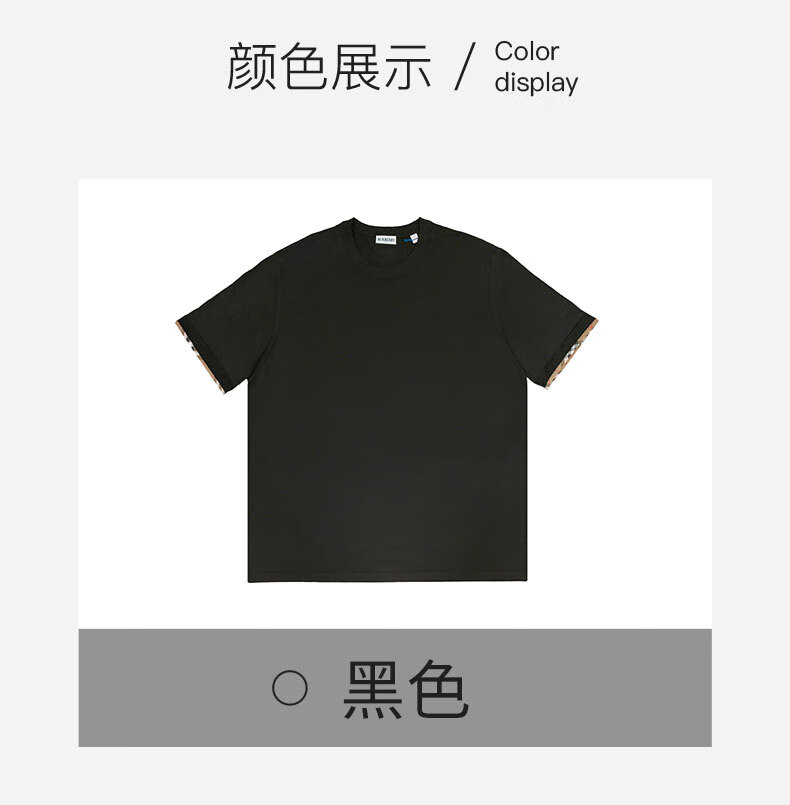 BURBERRY博柏利巴宝莉新款女士黑色棉质袖口格纹装饰短袖T恤81042911 M