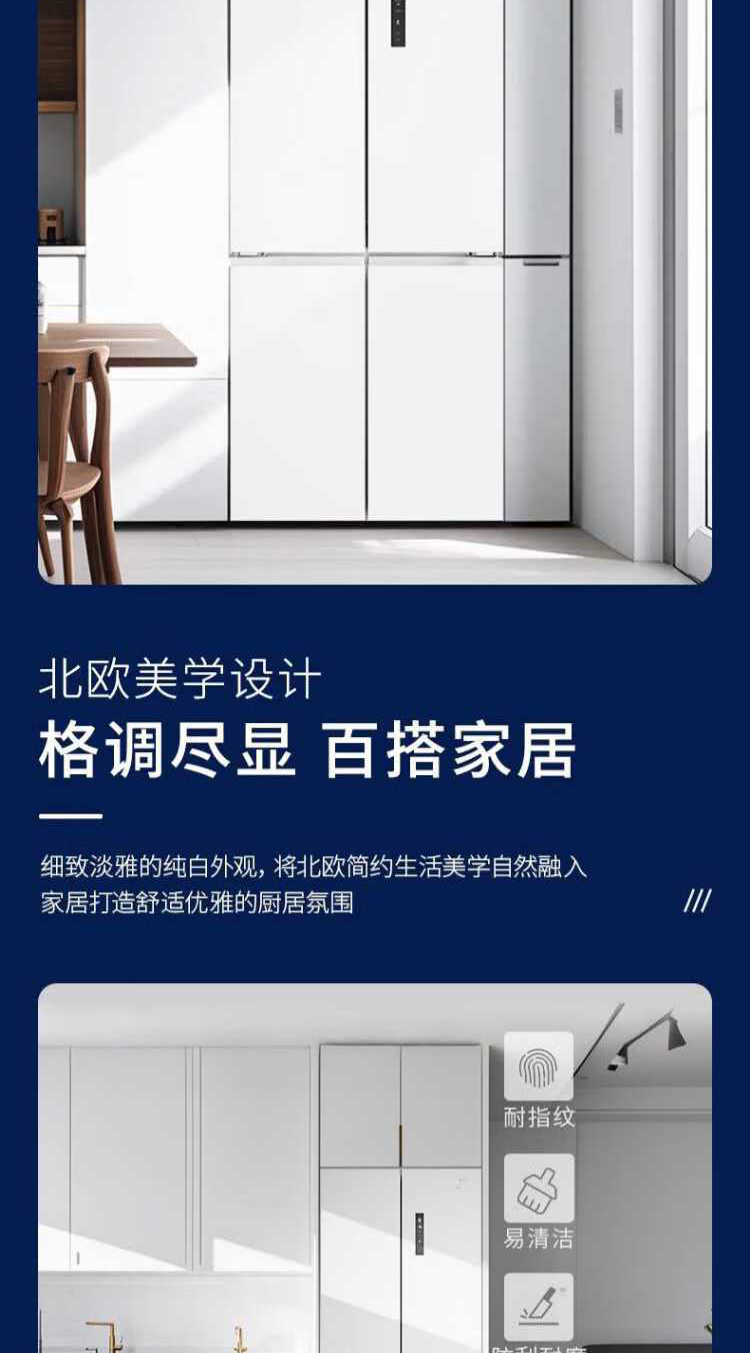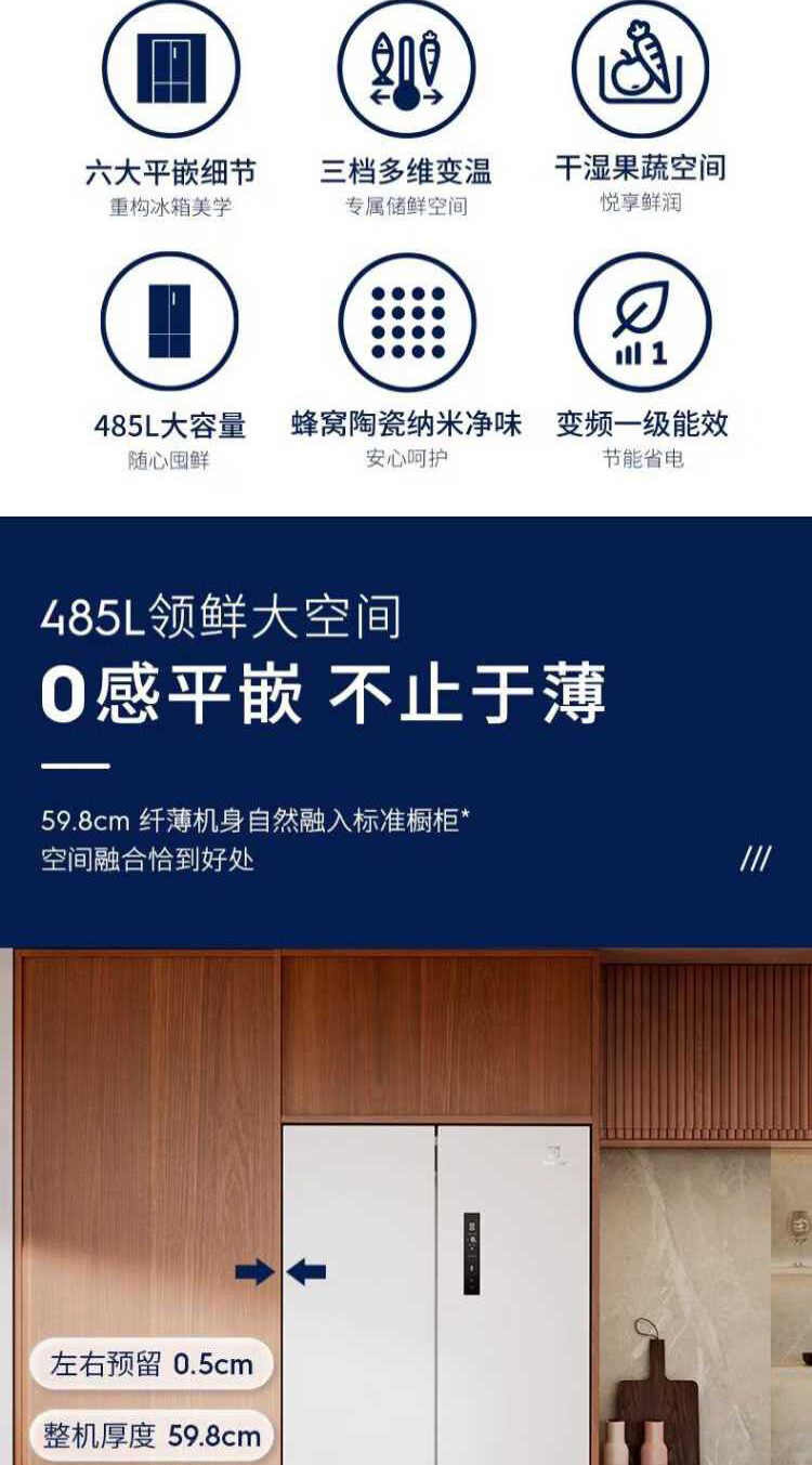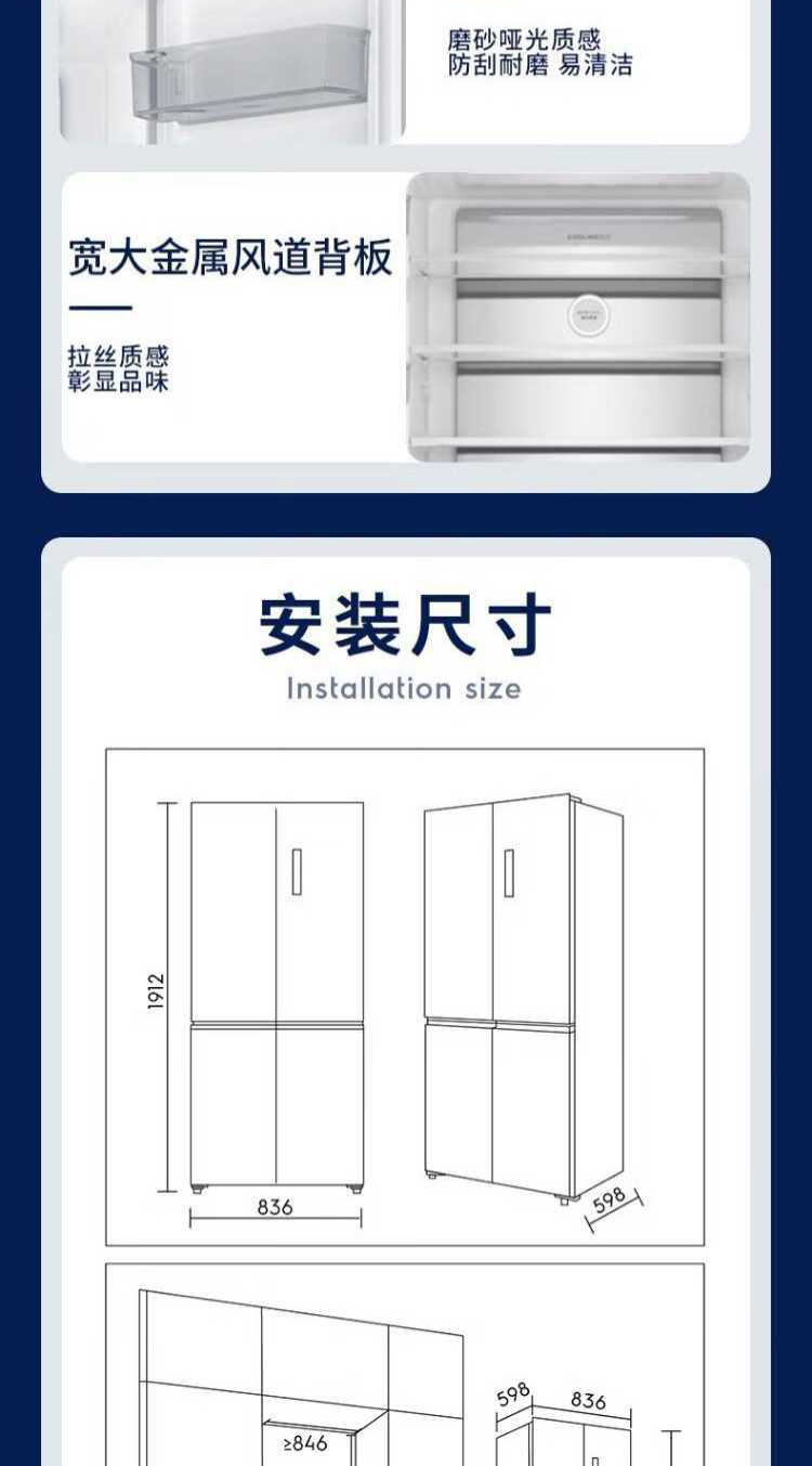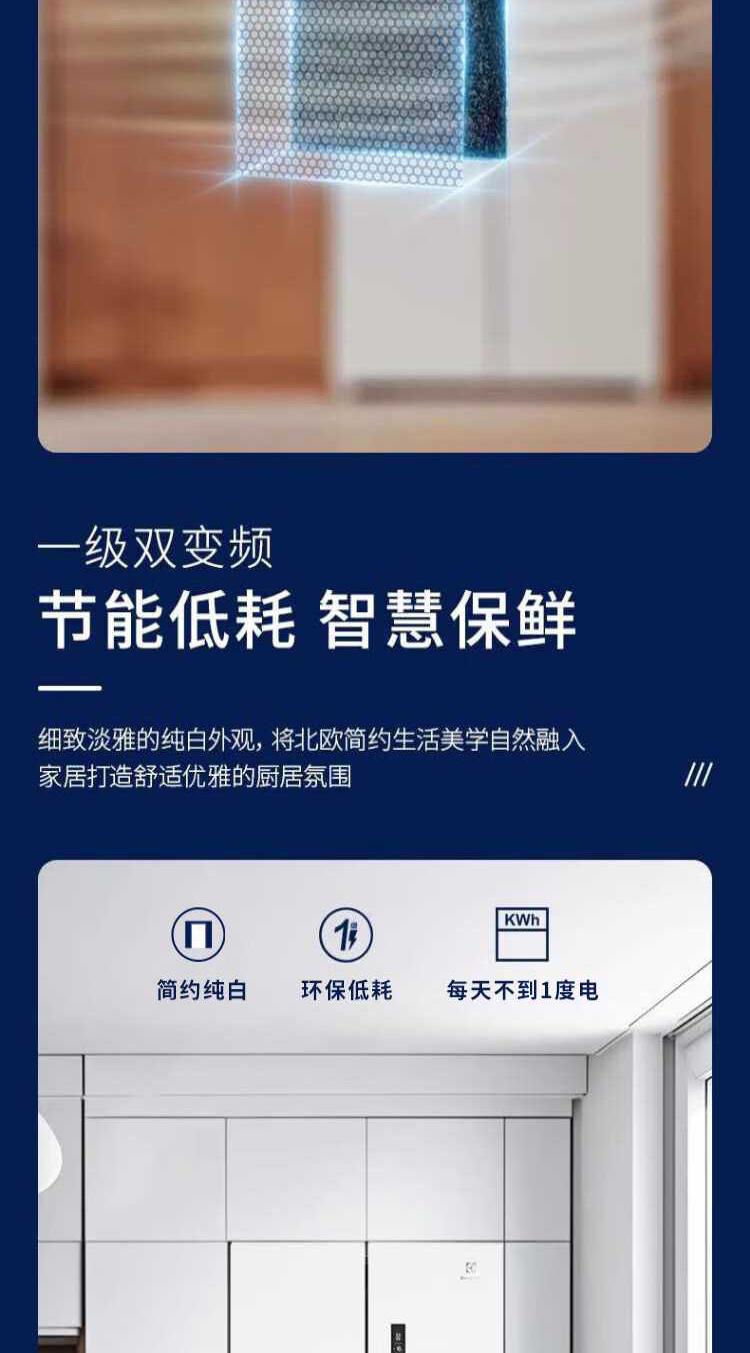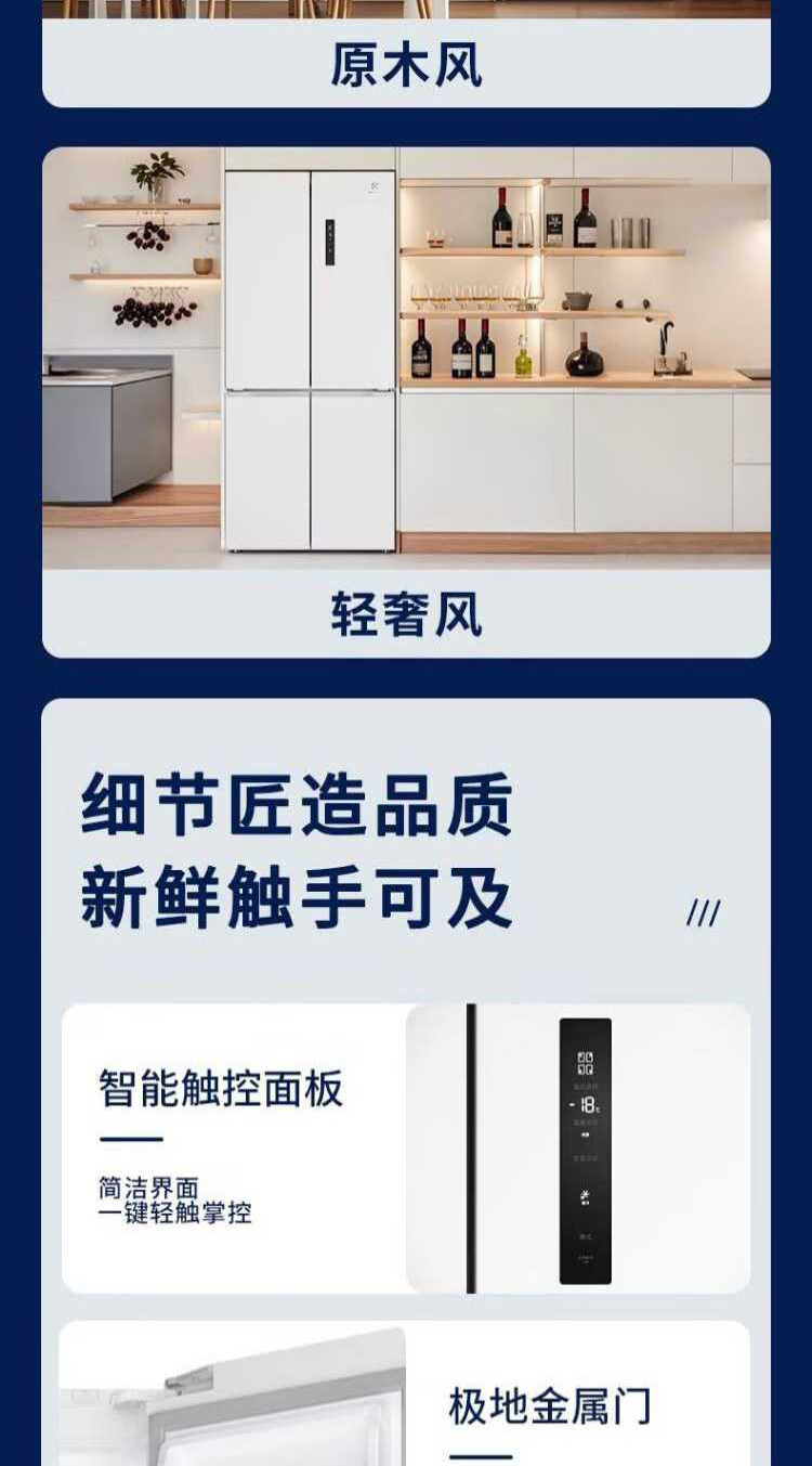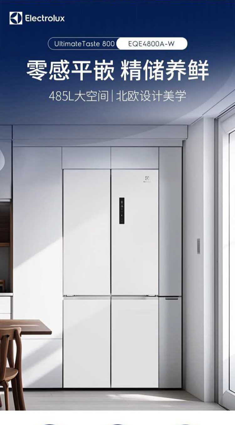 伊莱克斯(Electrolux)485L十字四门 零感平嵌大容量多维变温储鲜智能恒温净味一级能效冰箱EQE4800A-W