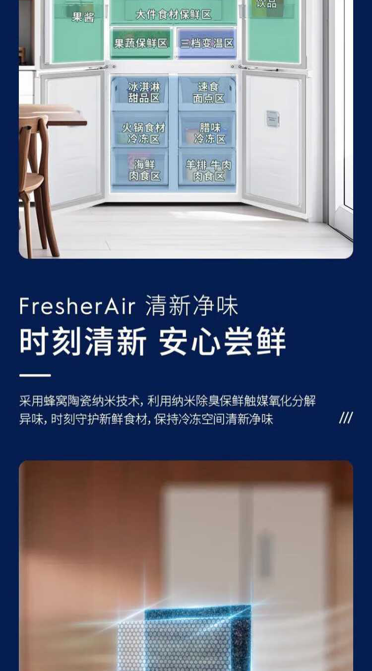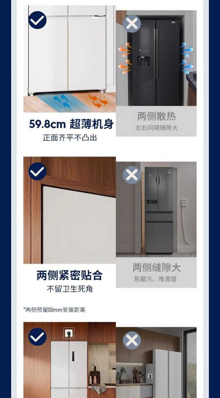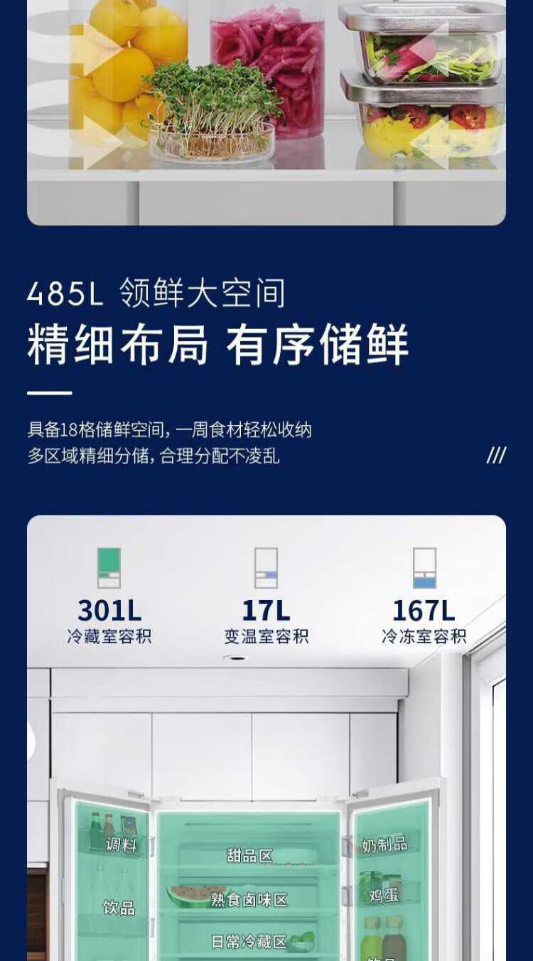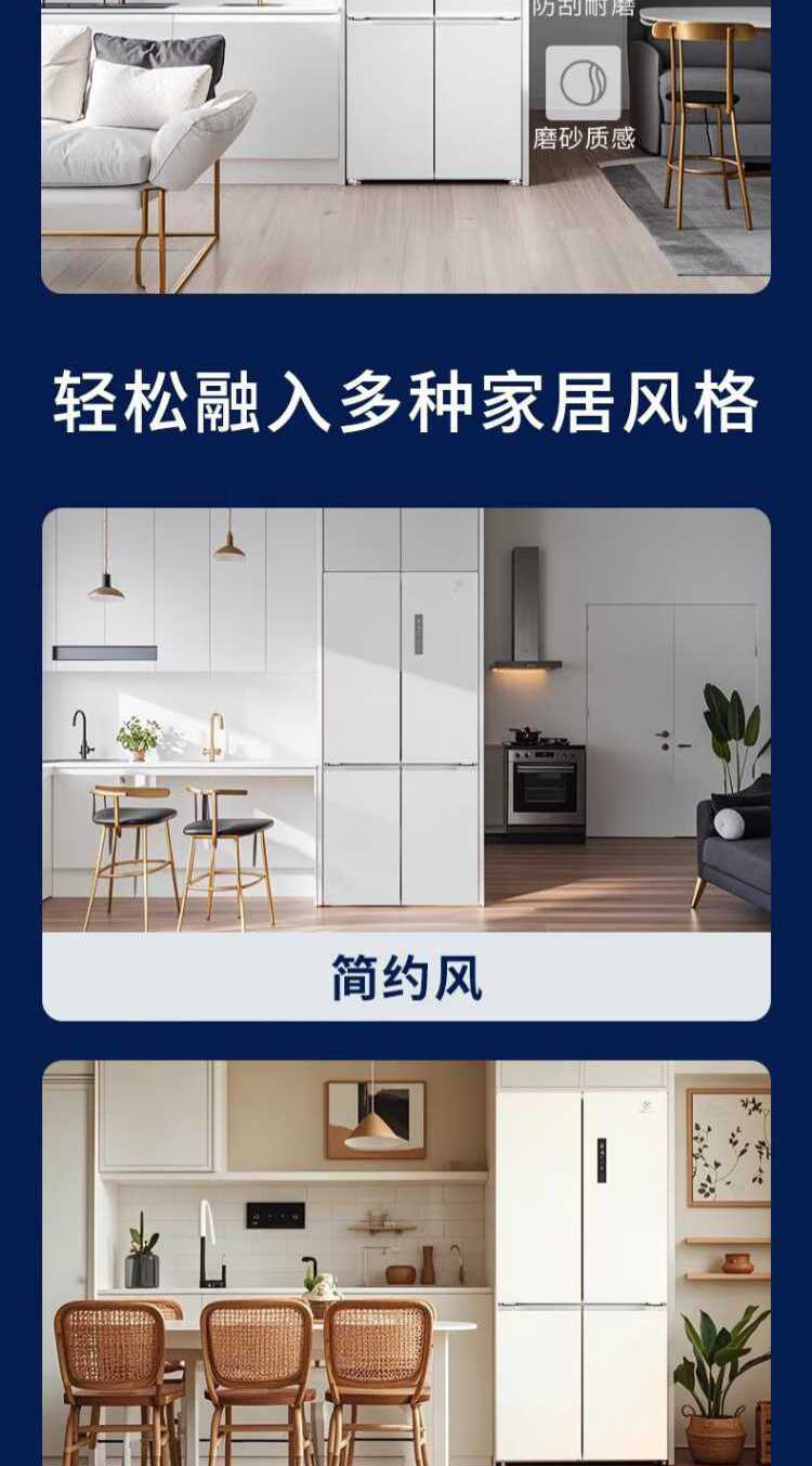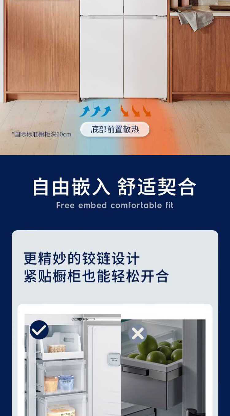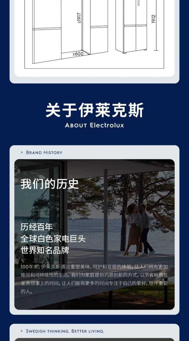 伊莱克斯(Electrolux)485L十字四门 零感平嵌大容量多维变温储鲜智能恒温净味一级能效冰箱EQE4800A-W