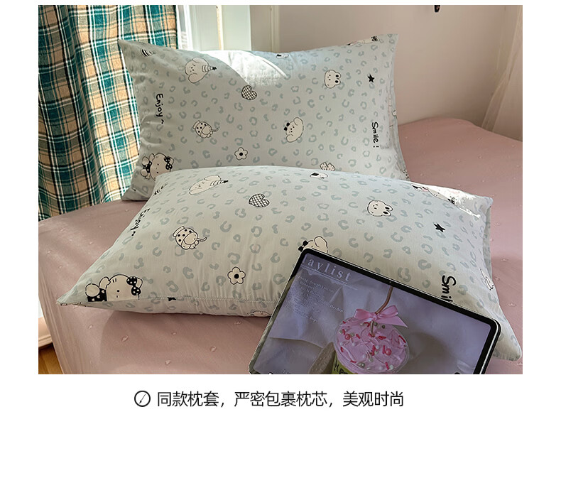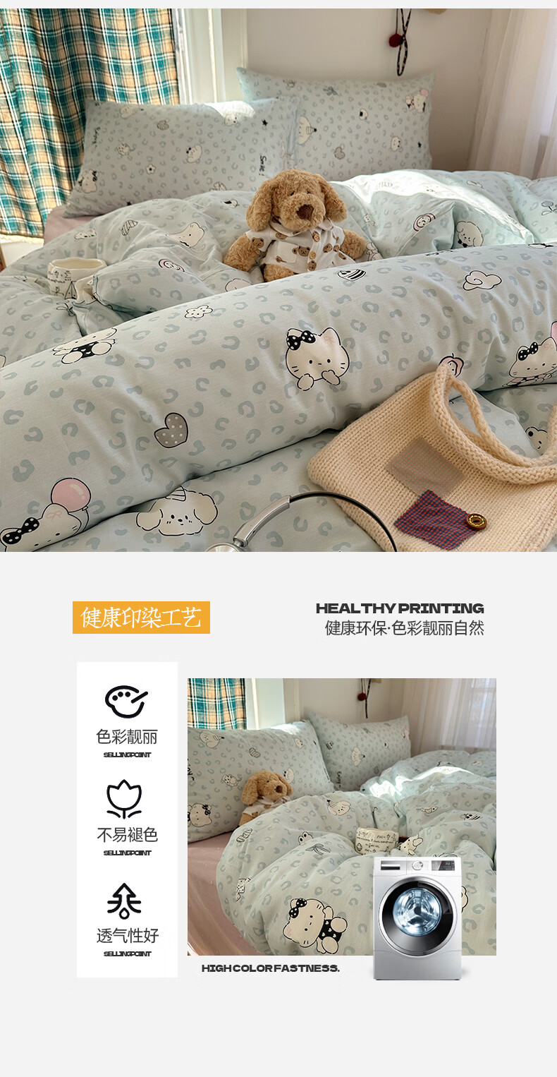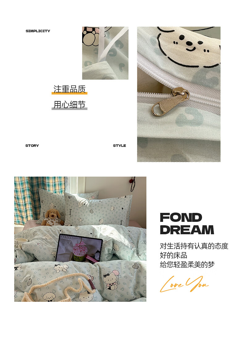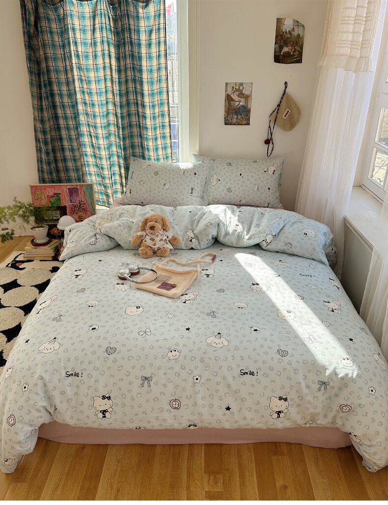 猫人(MiiOW)纯棉床上四件套全棉卡通床品床单被套罩三件套学生宿舍四季通用 蓝豹纹猫【全棉亲肤柔软】 0.9/1.2 床单款 三件套-150x200cm被套