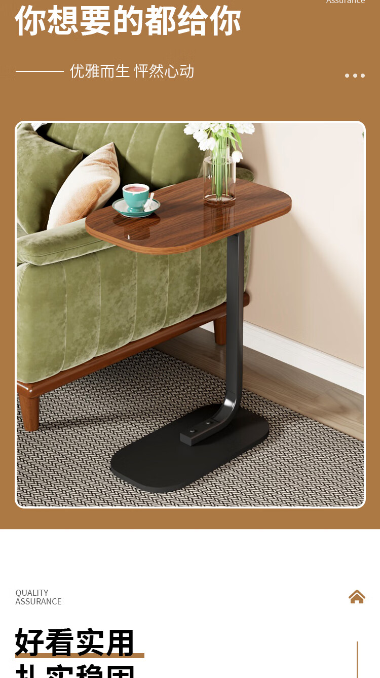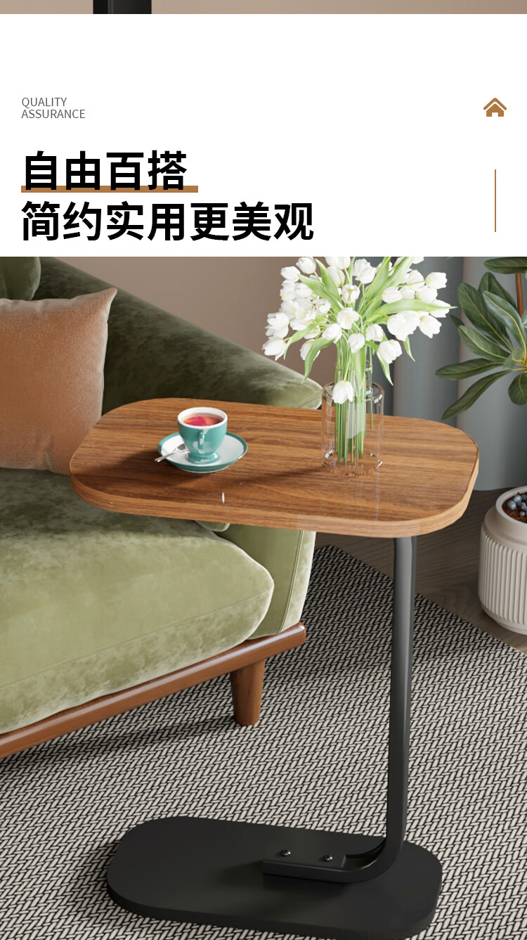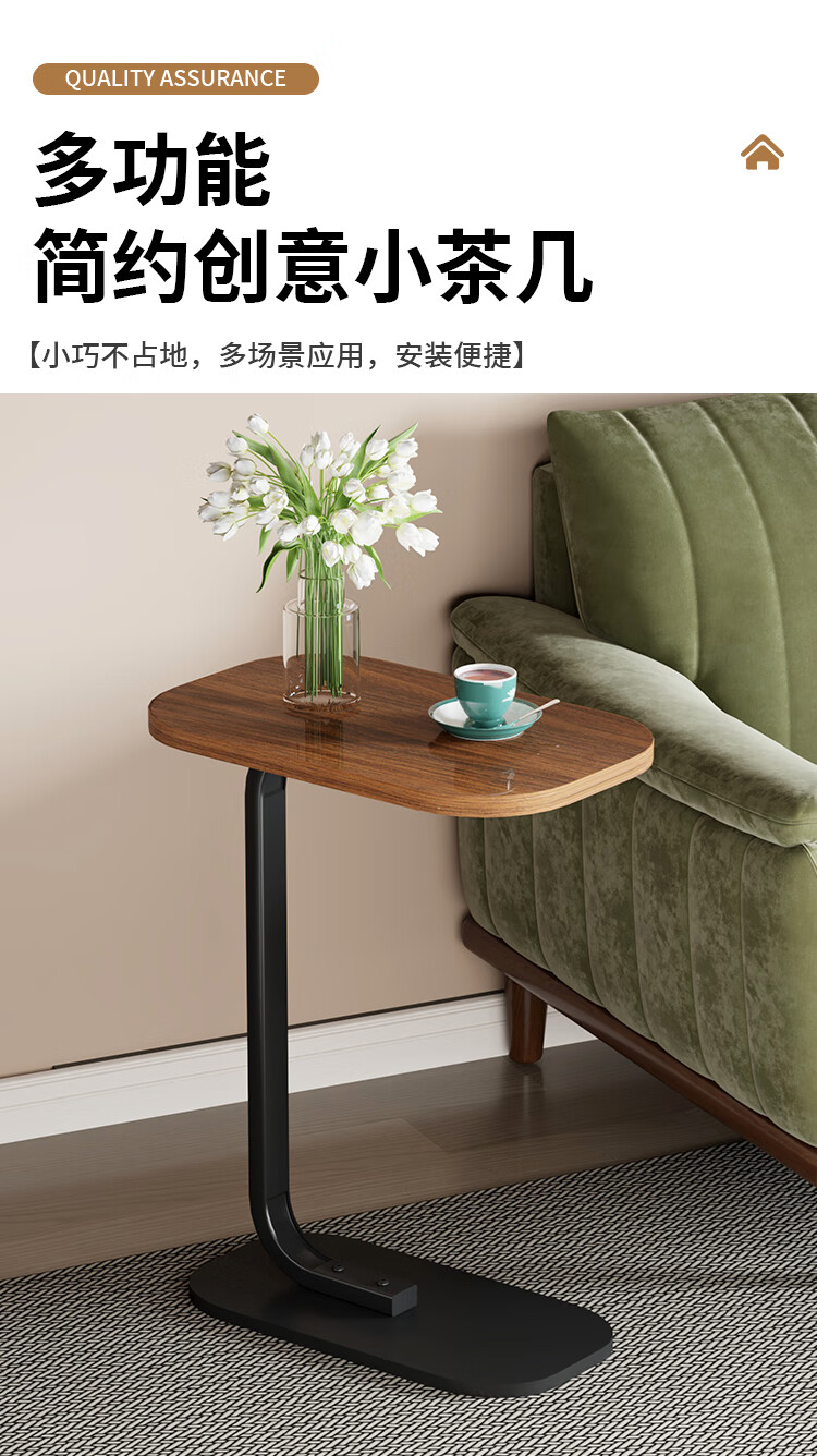 馨婺家沙发小边几小户型客厅现代简约小型创意茶几家用卧室高级感床头柜 黑架胡桃色【20*30】加粗加固