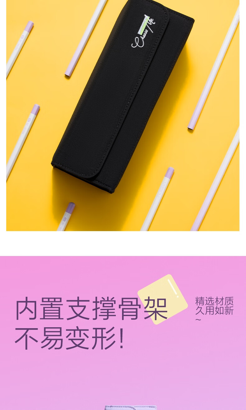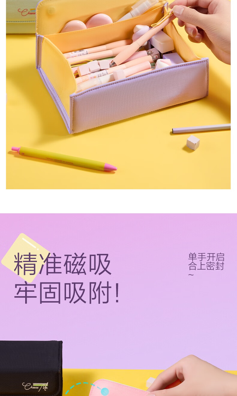 得力(deli)大开口翻盖磁吸方块学生笔袋 大容量文具盒简约时尚多功能眼镜盒男孩女孩便携收纳礼物 黑色BC519