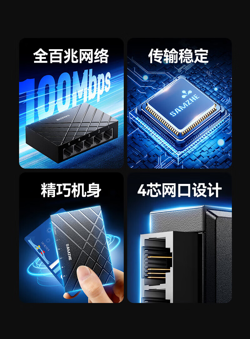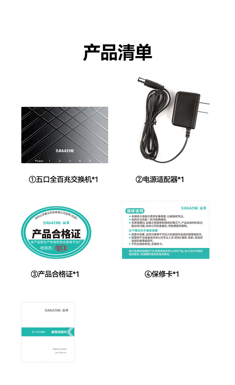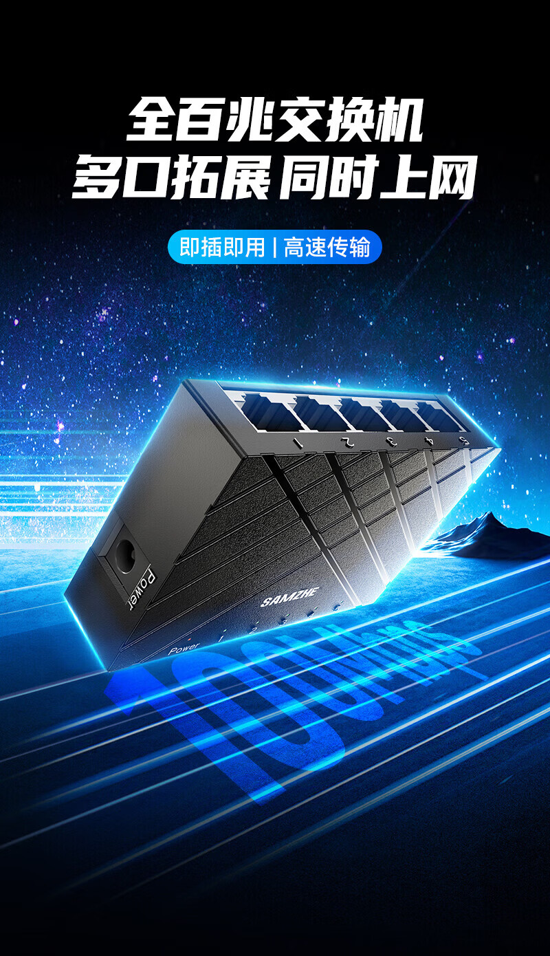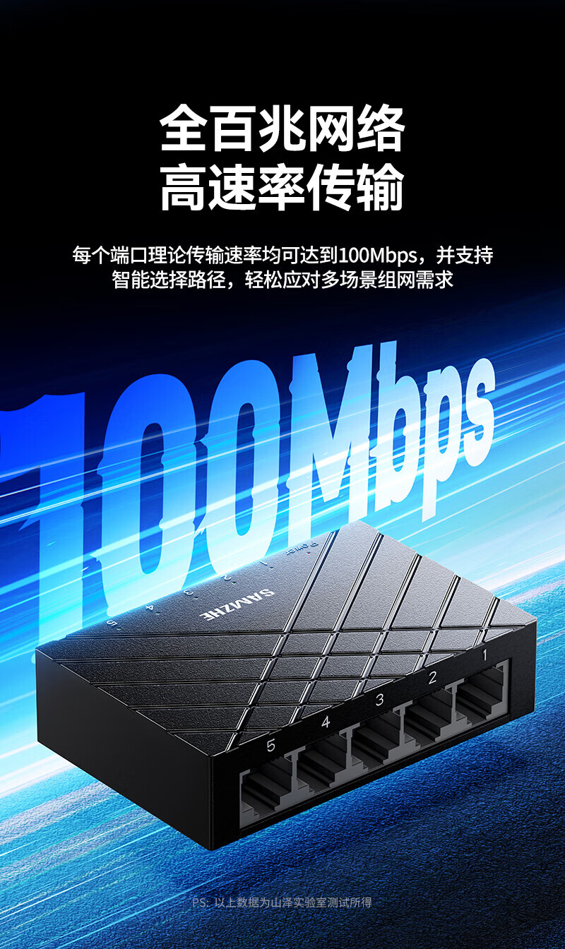 山泽5口千兆交换机 网线分线器 企业家用宿舍监控分流 一拖四交换器4口网络转换器 HUB分流器 【家庭丨宿舍首选】5口全百兆