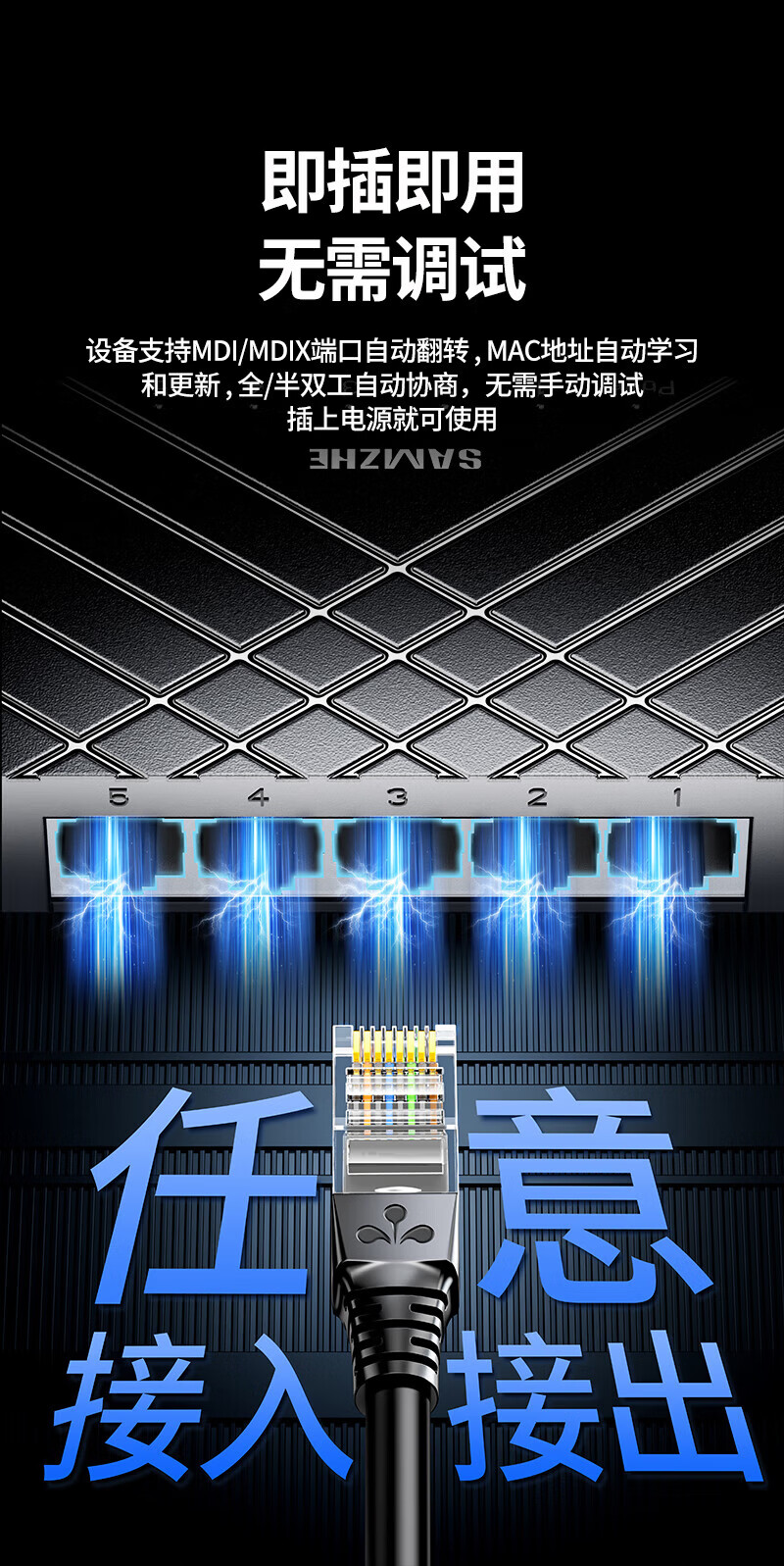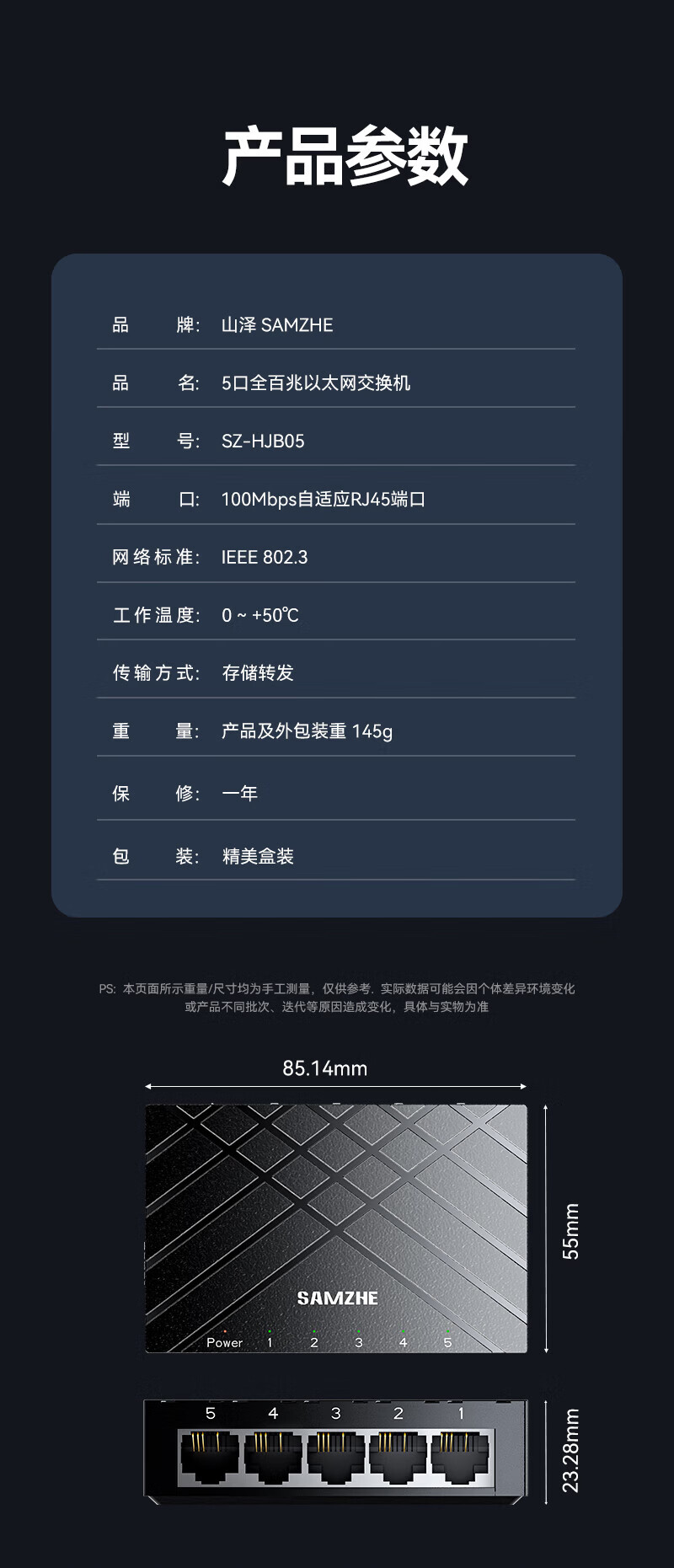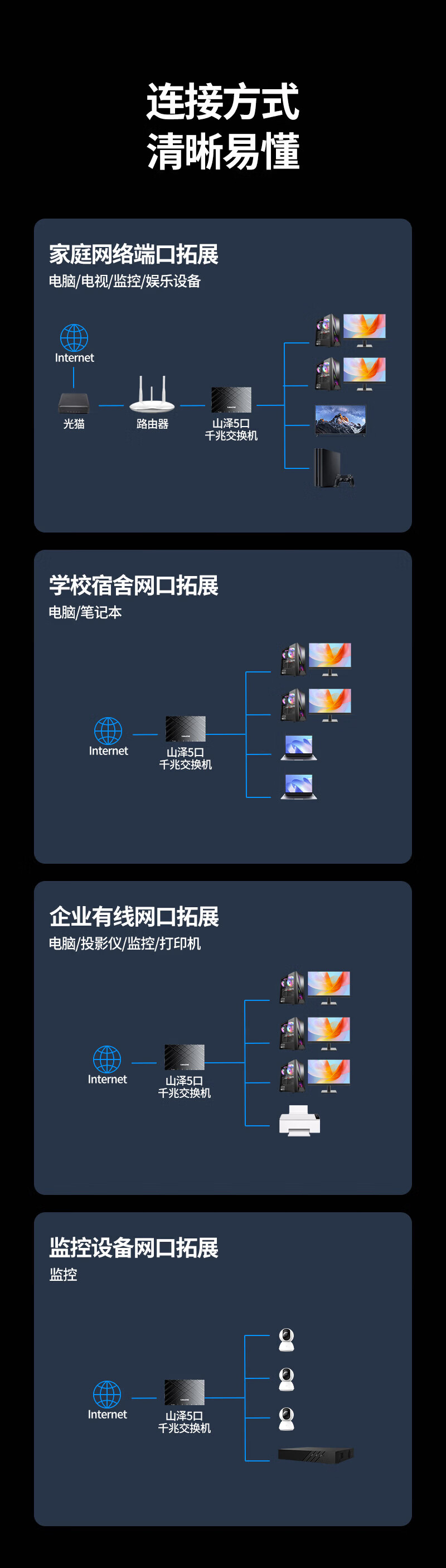 山泽5口千兆交换机 网线分线器 企业家用宿舍监控分流 一拖四交换器4口网络转换器 HUB分流器 【家庭丨宿舍首选】5口全百兆