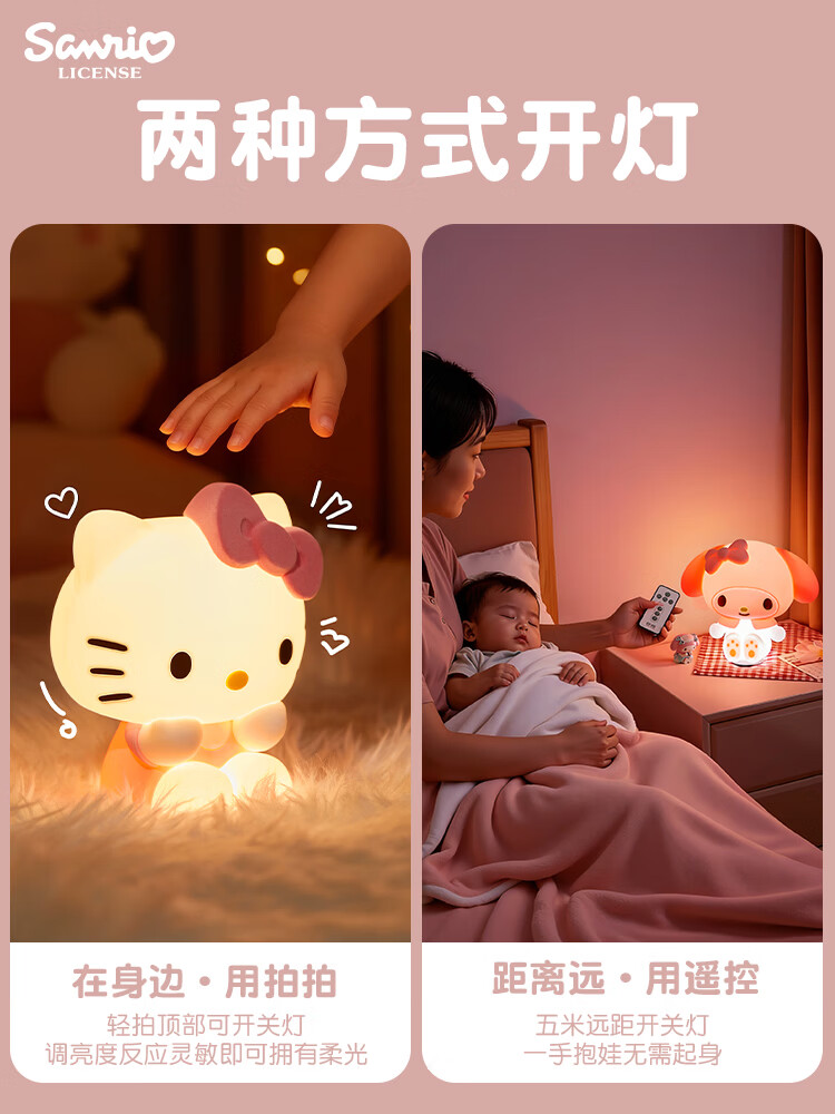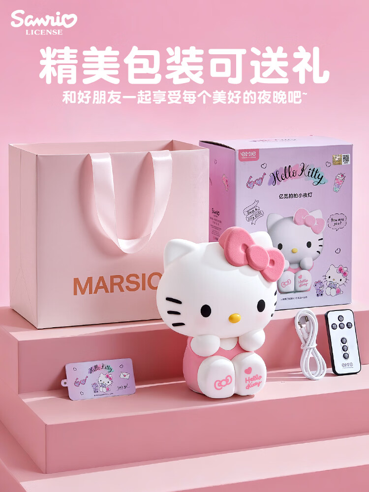 MARSICAhellokitty夜灯卧室床头灯拍拍灯柔光摆件女生情侣新年kt生日礼物 生活仪式感/拍拍灯-凯蒂猫【正版授权】送礼佳选