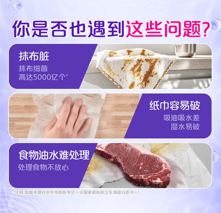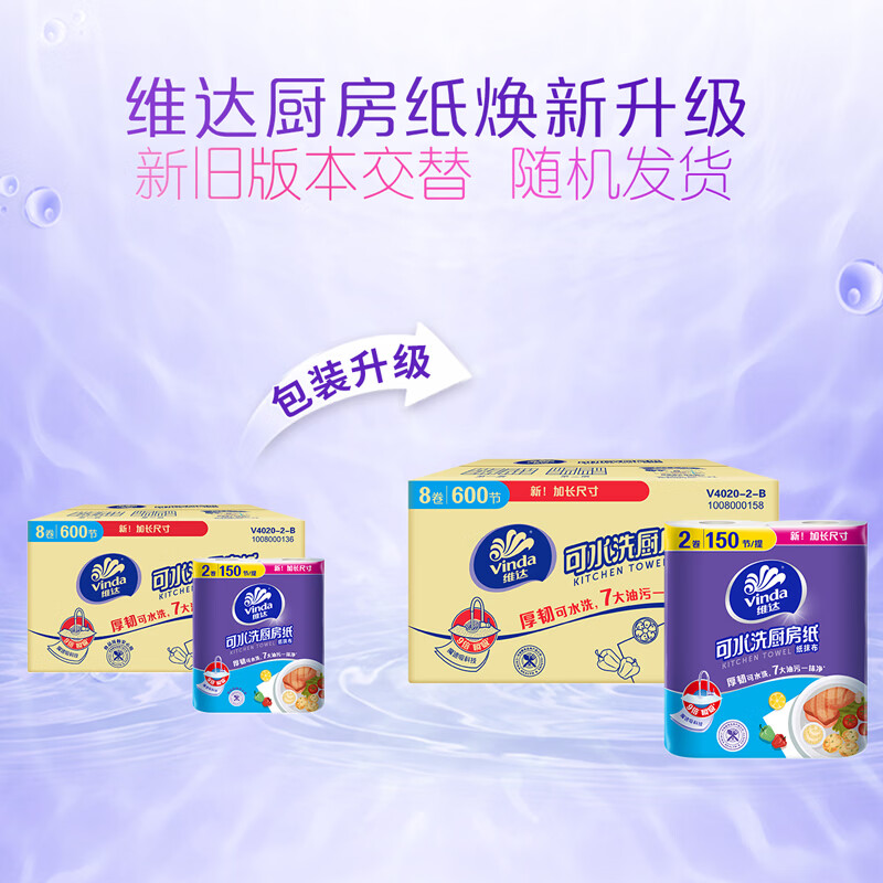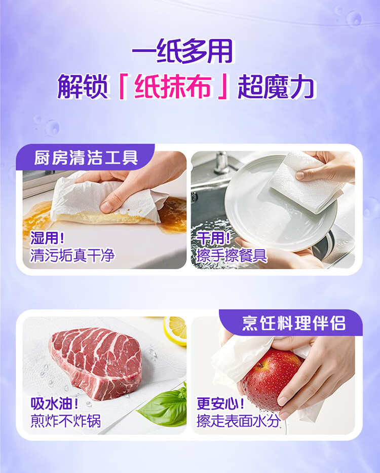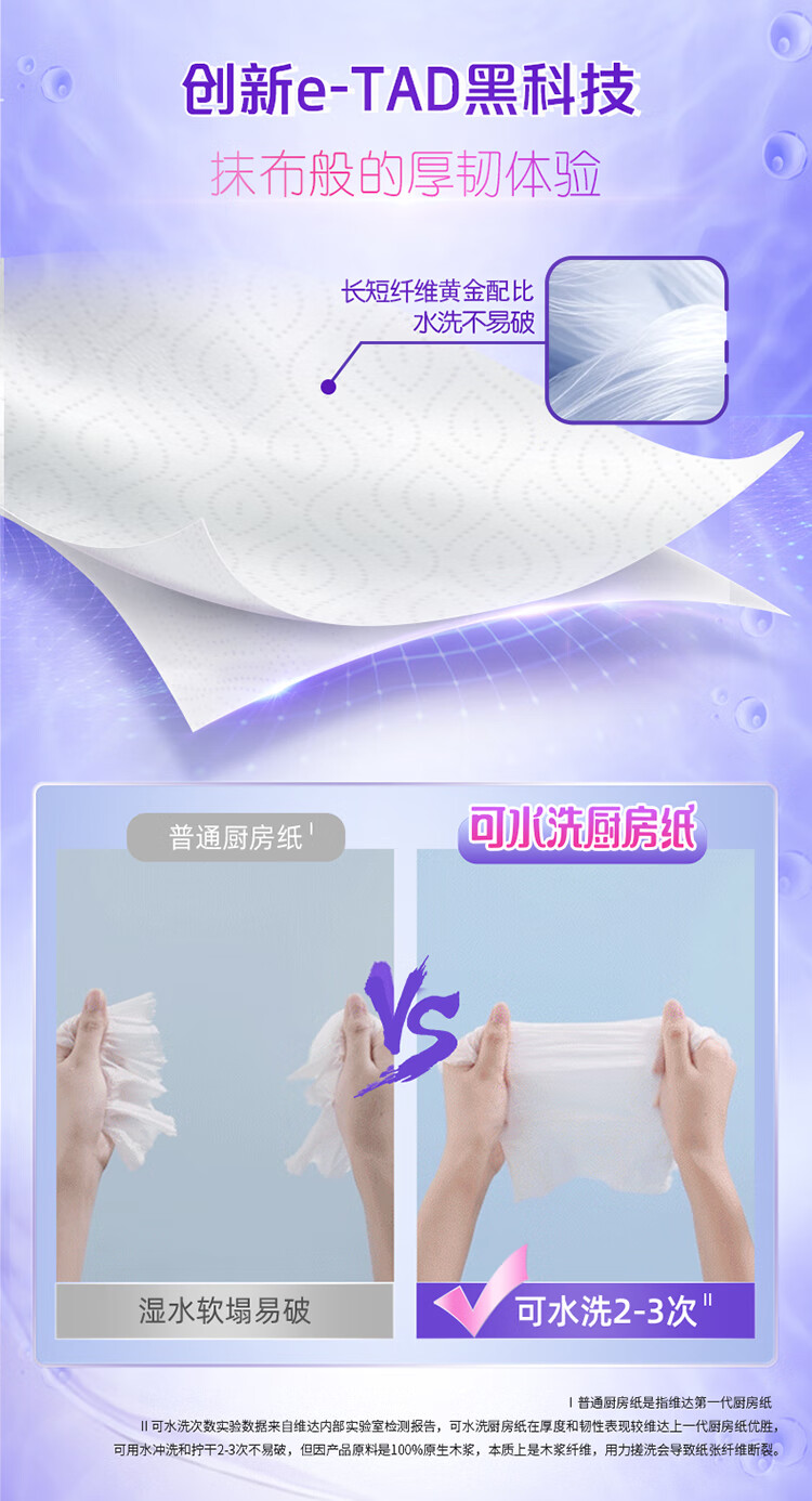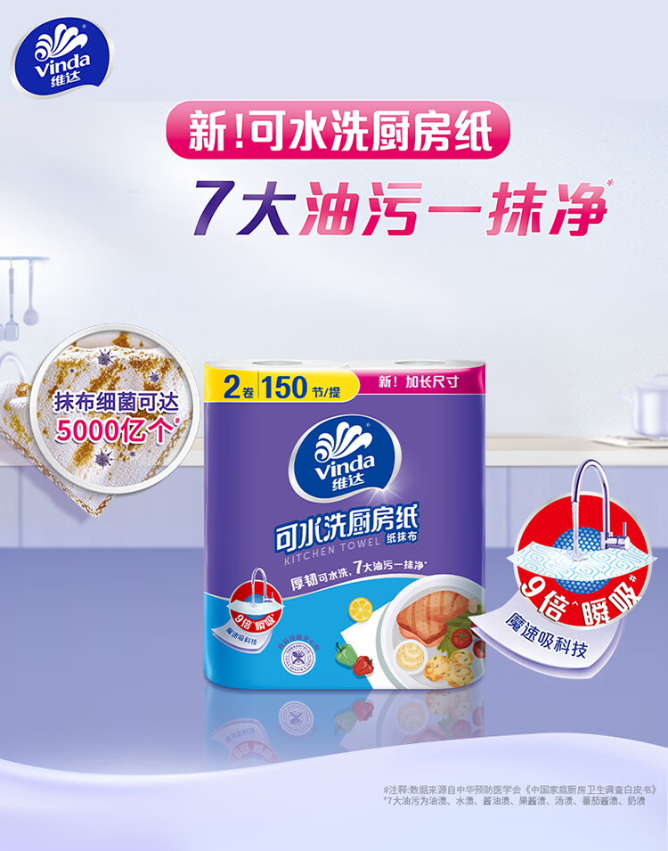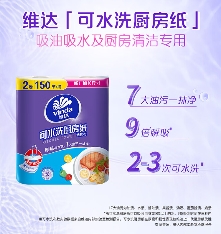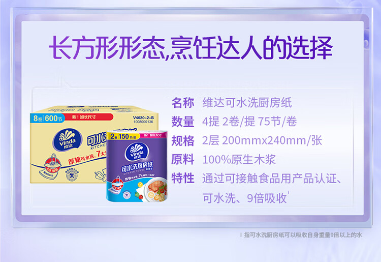 维达(Vinda)厨房纸巾 可水洗卷纸75节*8卷 懒人抹布 厨房用纸 整箱