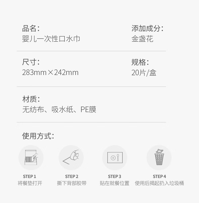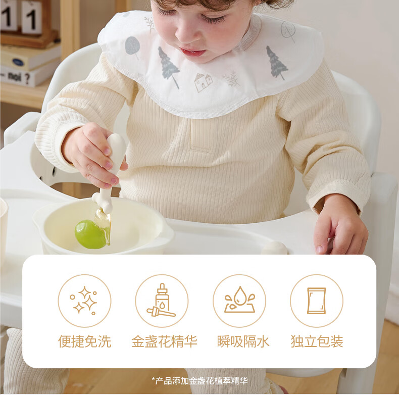 尼塔宝宝一次性口水巾20片 独立装免洗新生儿围嘴 围兜防水口水贴