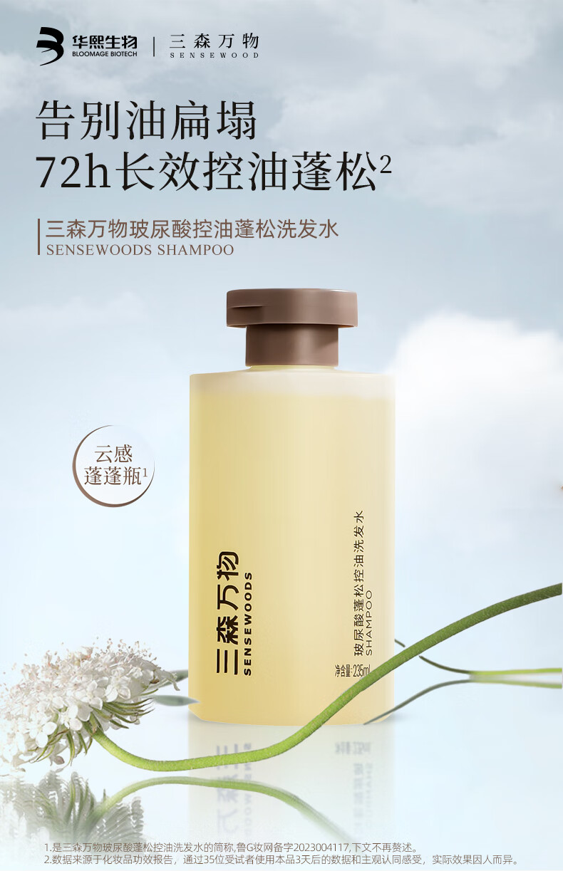 三森万物洗护套装 【华熙生物】玻尿酸洗发水控油蓬松高颅顶柔顺护发组套