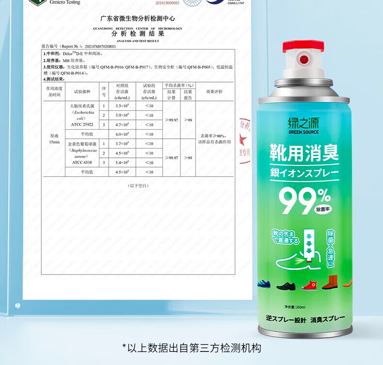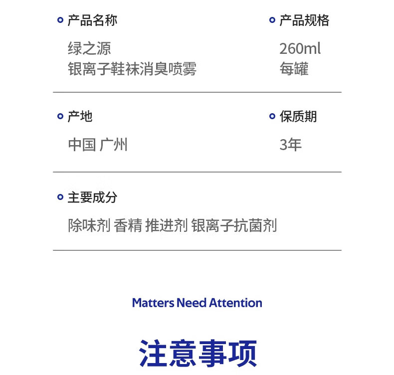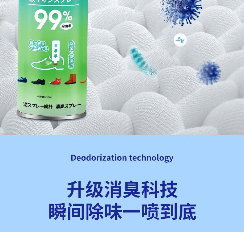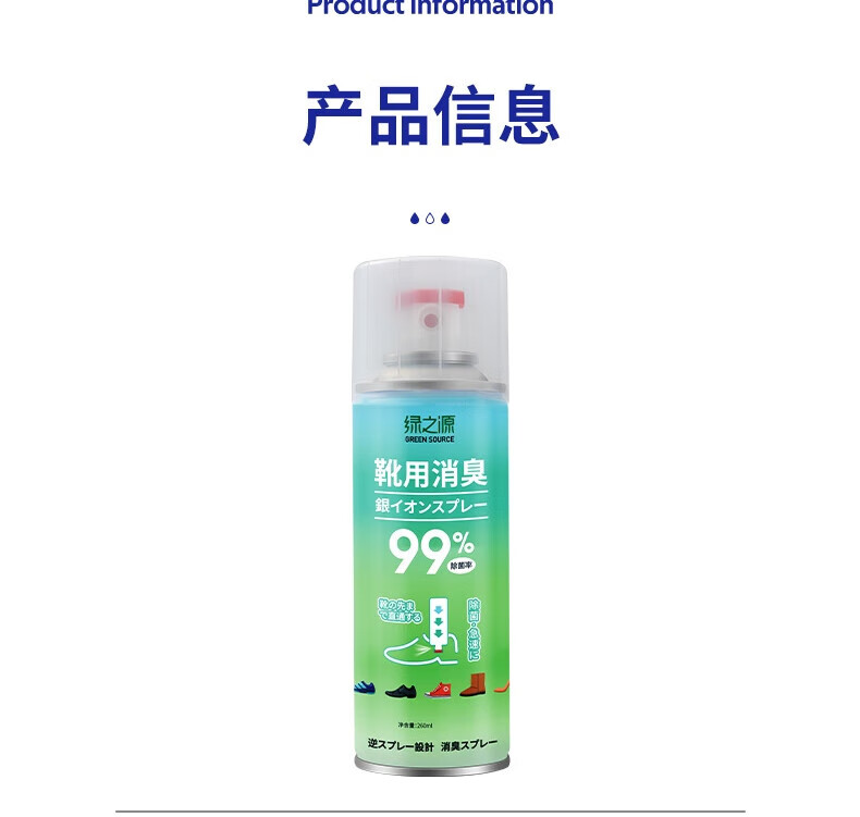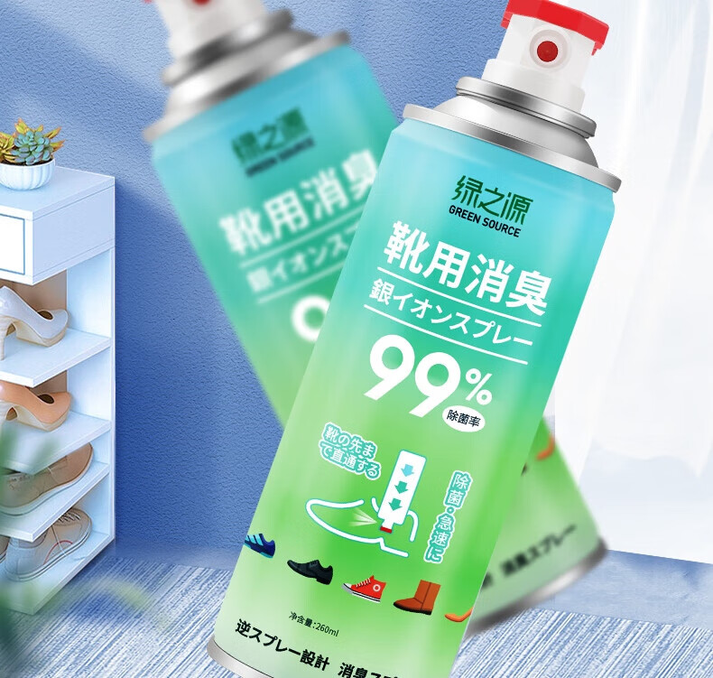 绿之源银离子鞋袜除臭除菌喷雾260ml皮鞋除脚臭去异味脚汗鞋袜清香剂 银离子鞋袜除臭剂丨4罐*200ml