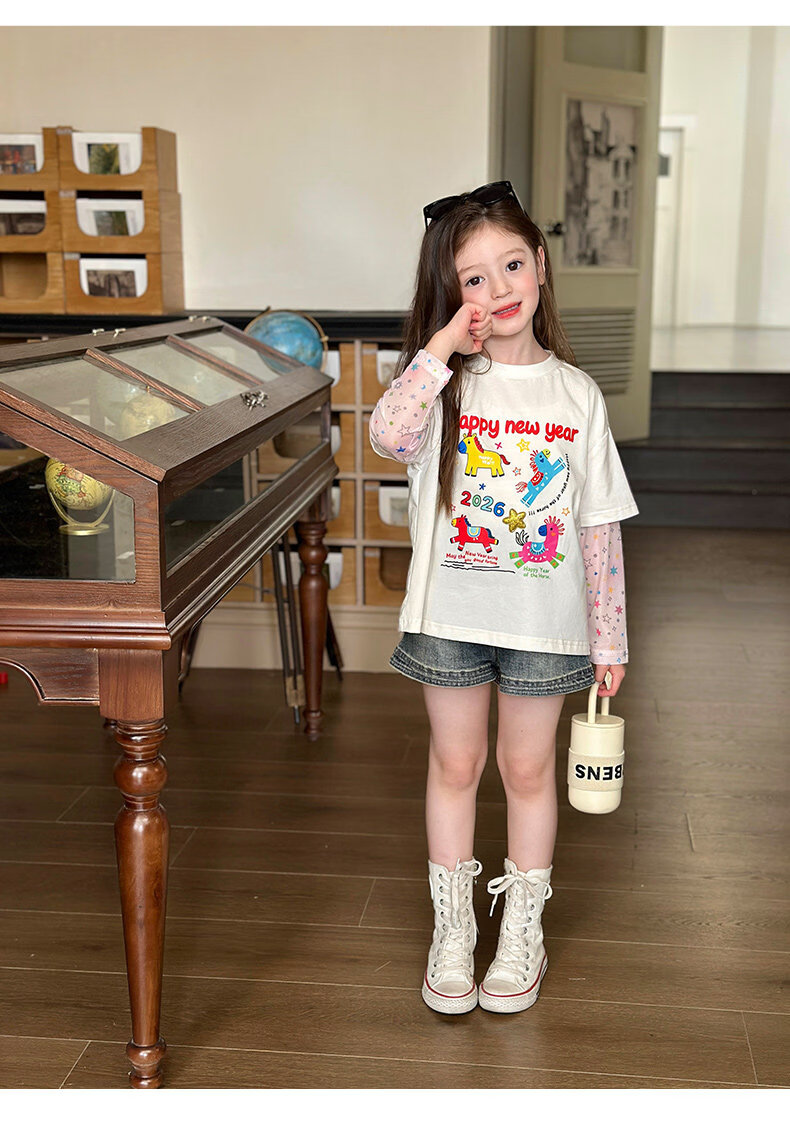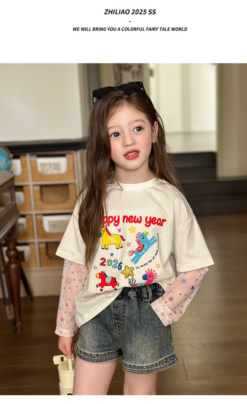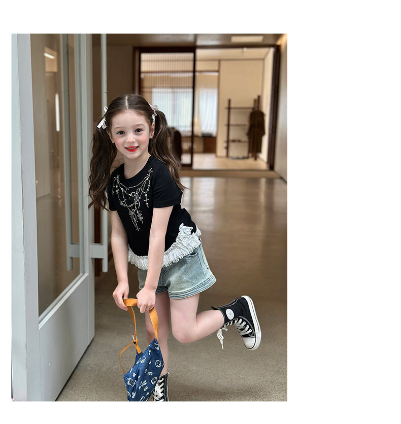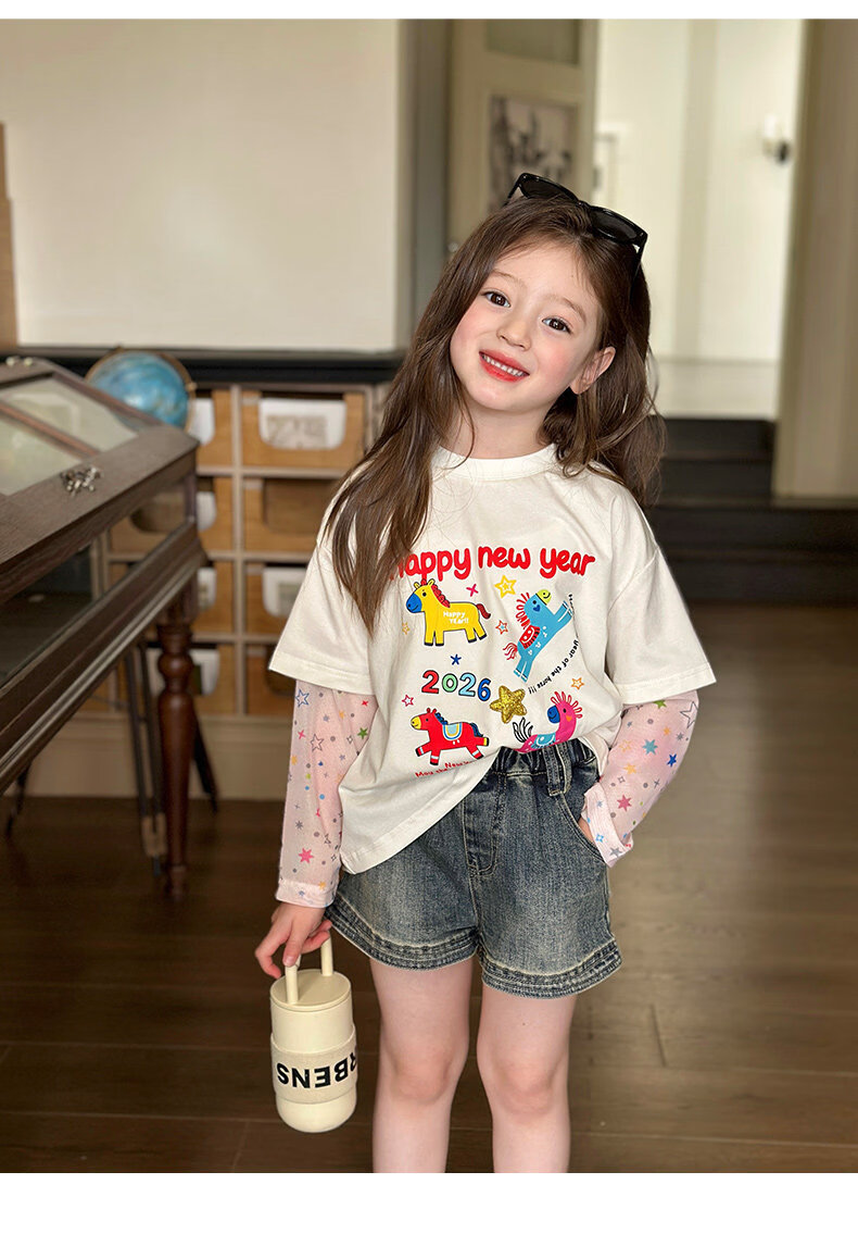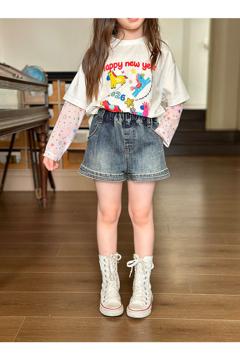 栀了成长记女童装时髦洗水牛仔短裤2026春季儿童新款韩版百搭裤子 深蓝色 短裤 100 cm