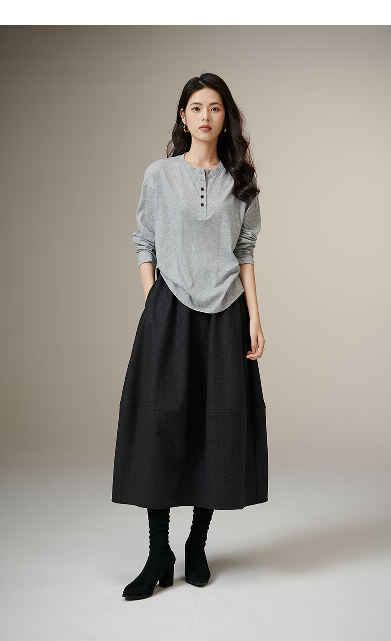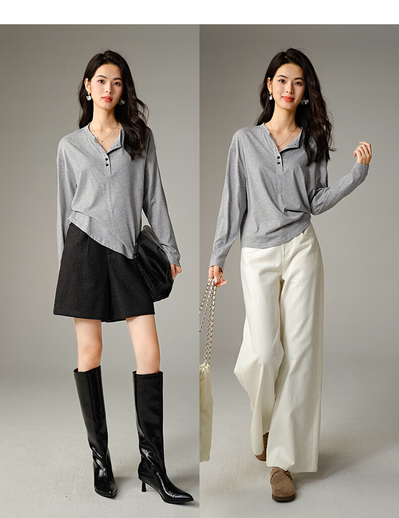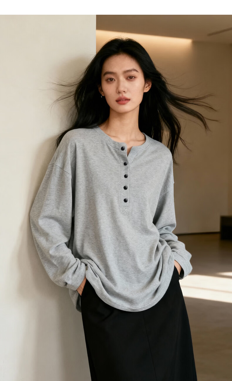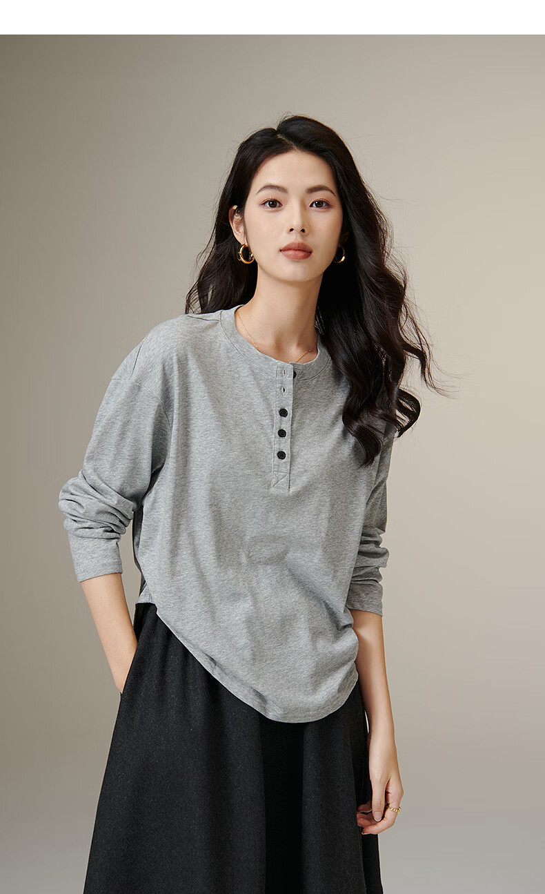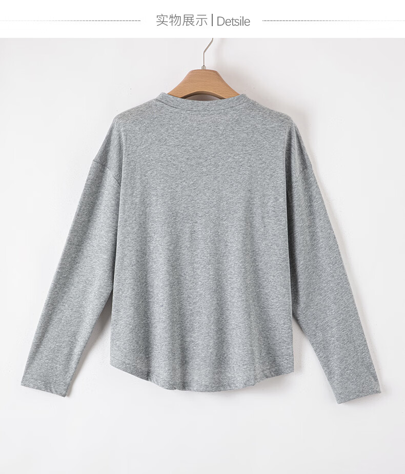 晚白【新品】2026年春款经典纯色棉料上衣宽松大码舒适百搭T恤衫女 灰色 L