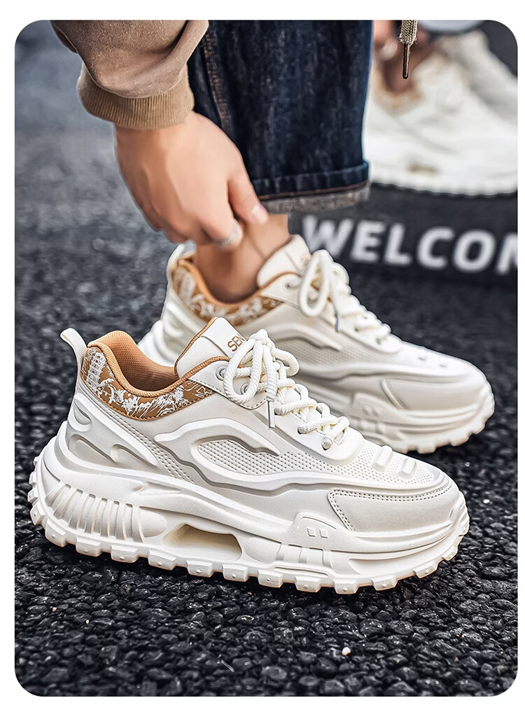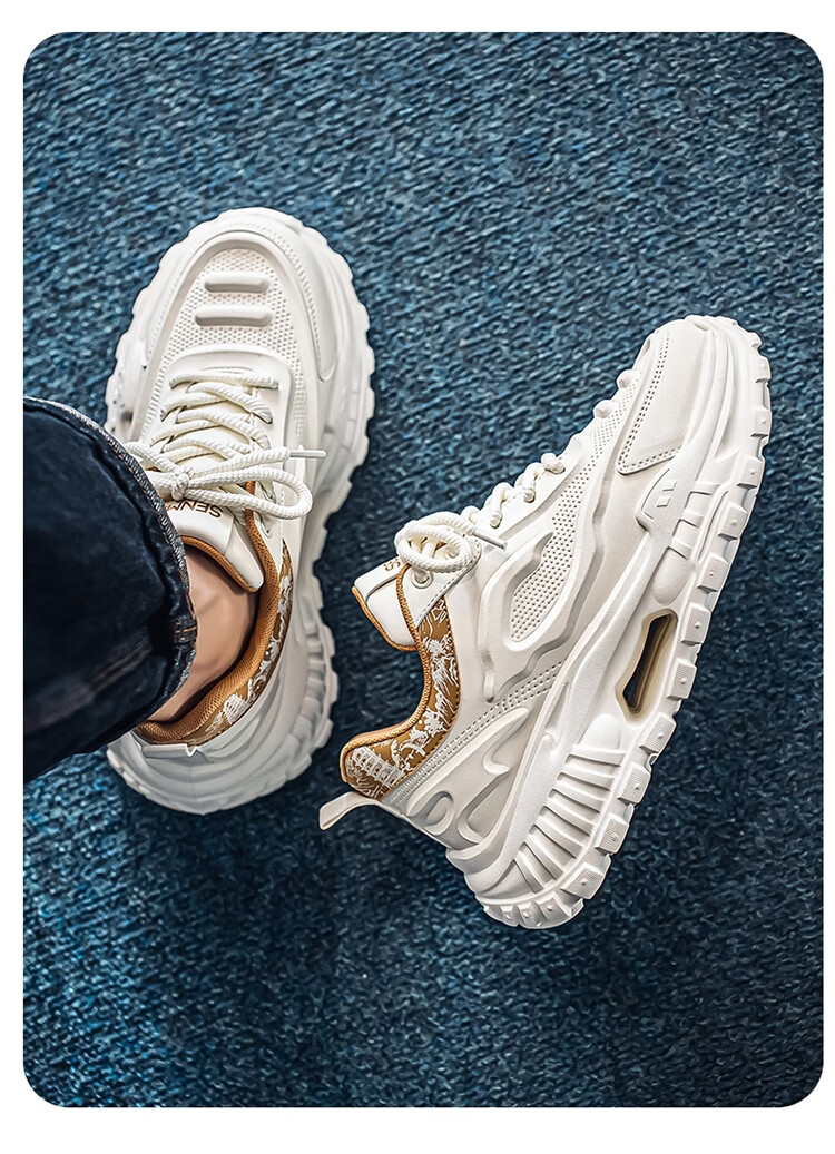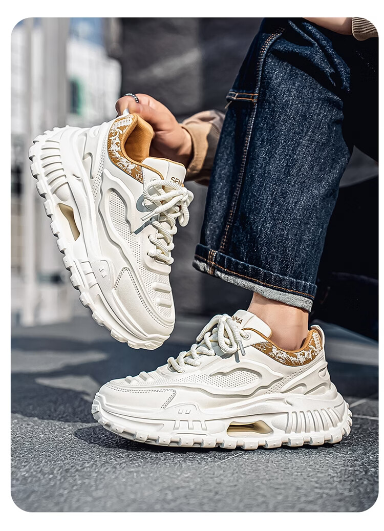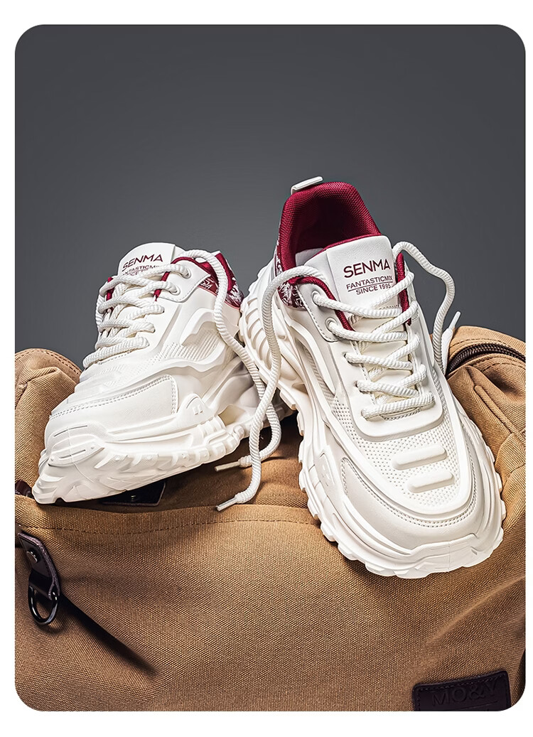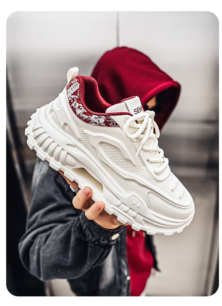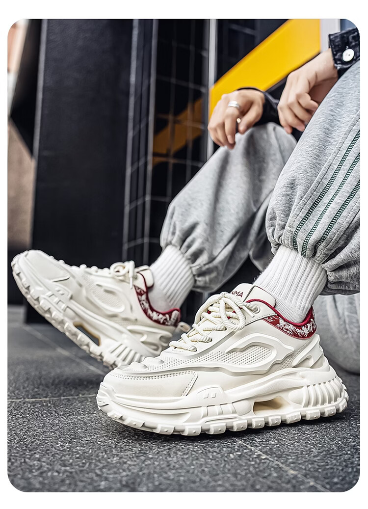 森馬男鞋2026新款春季皮面休闲运动跑步鞋青少年厚底增高防滑老爹潮鞋 白卡【基础款】 39 标准码数/现货秒发
