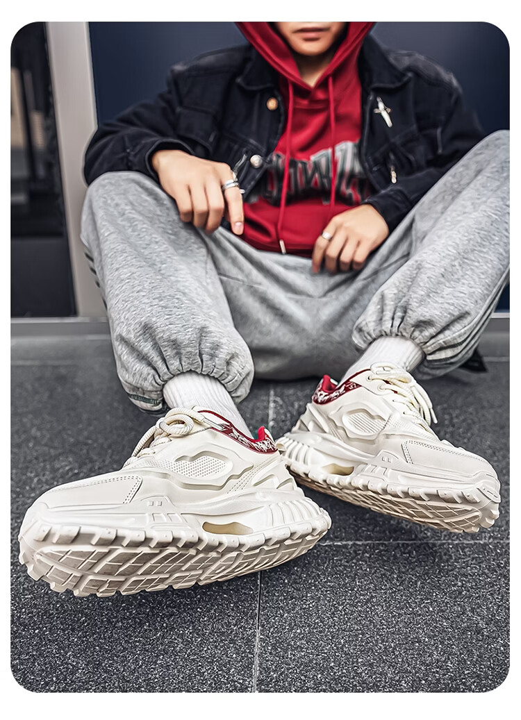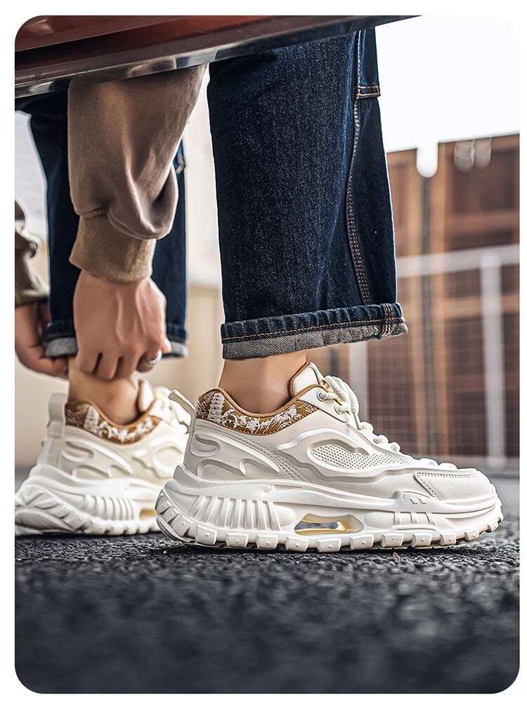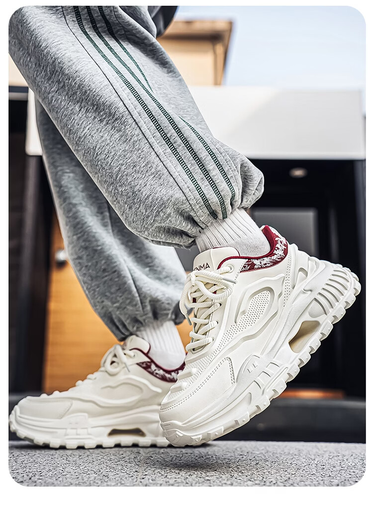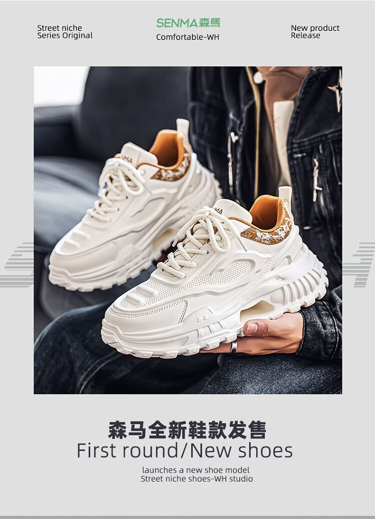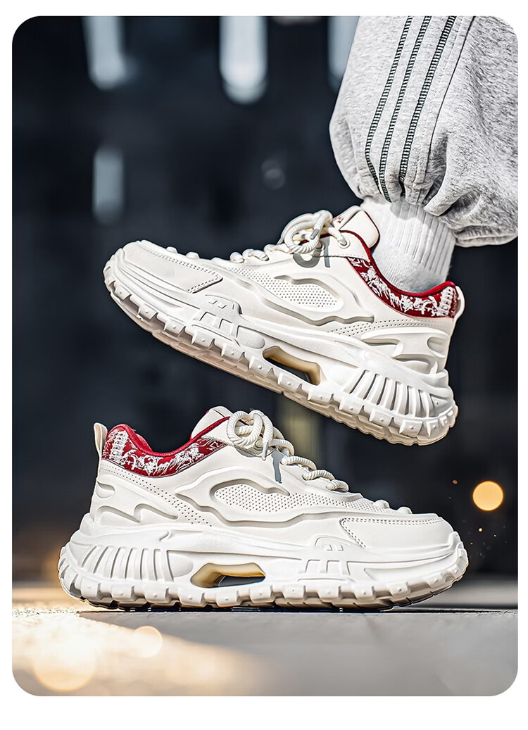 森馬男鞋2026新款春季皮面休闲运动跑步鞋青少年厚底增高防滑老爹潮鞋 白卡【基础款】 39 标准码数/现货秒发