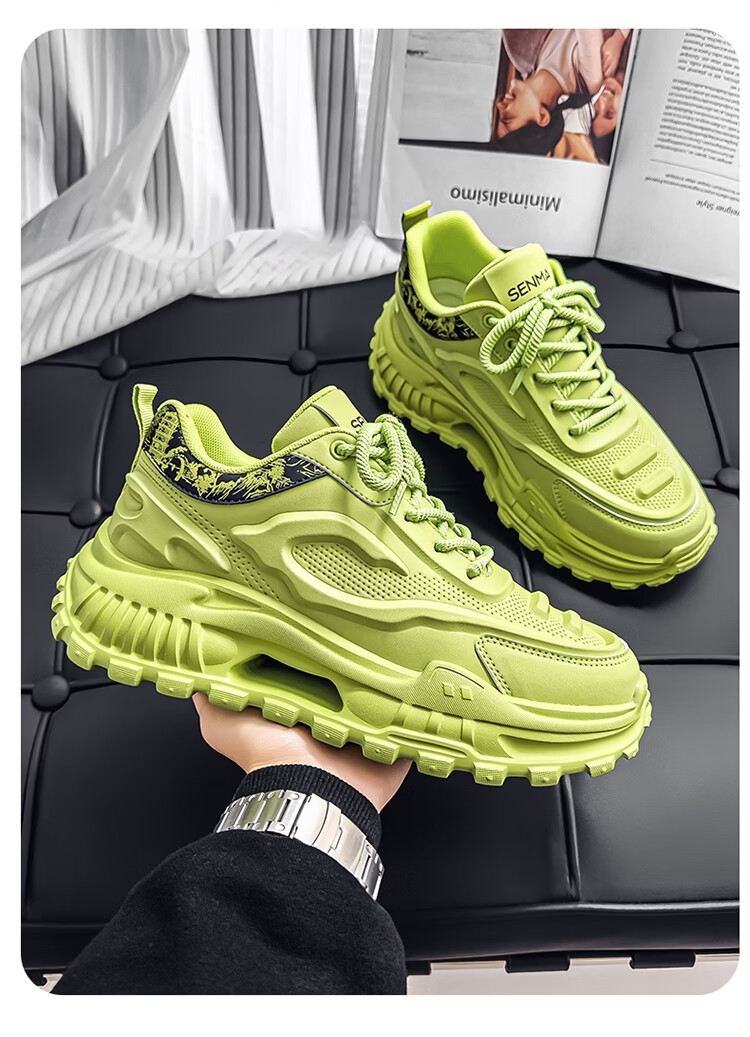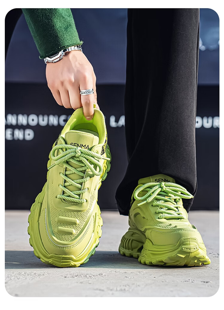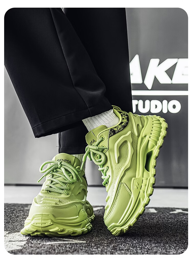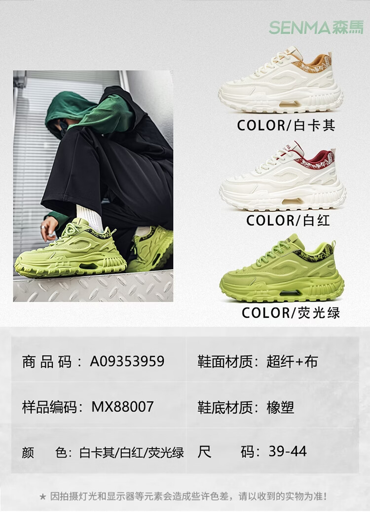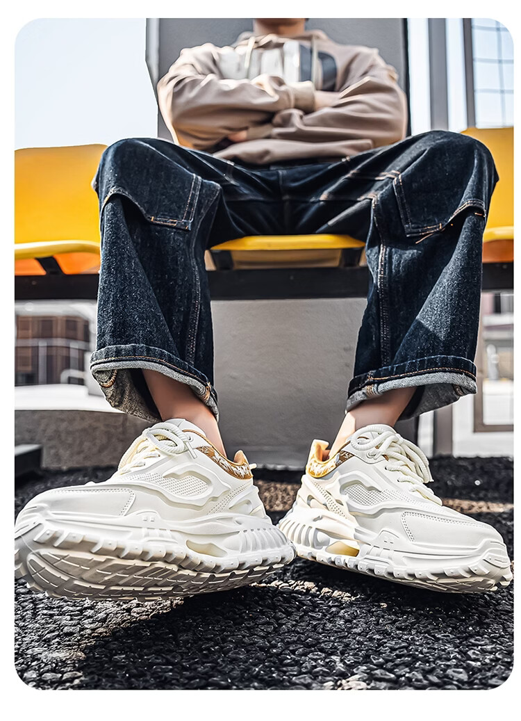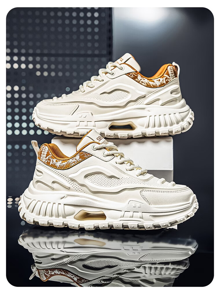 森馬男鞋2026新款春季皮面休闲运动跑步鞋青少年厚底增高防滑老爹潮鞋 白卡【基础款】 39 标准码数/现货秒发
