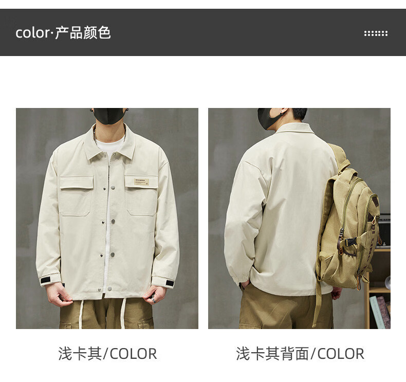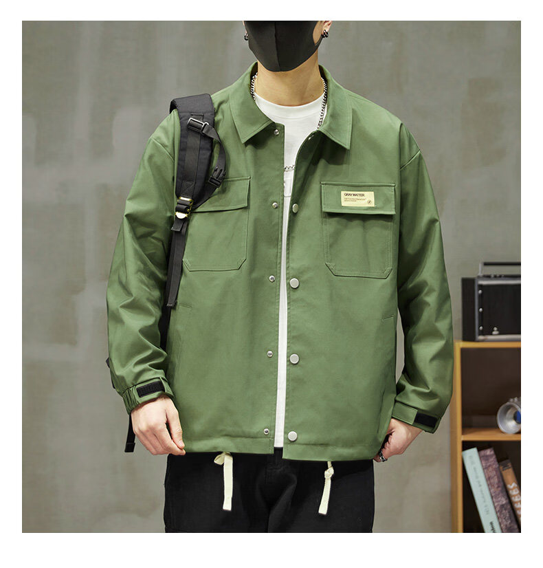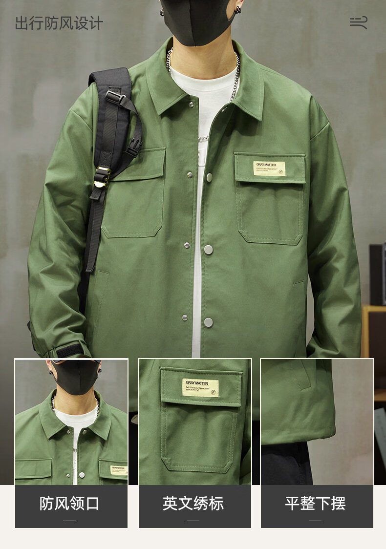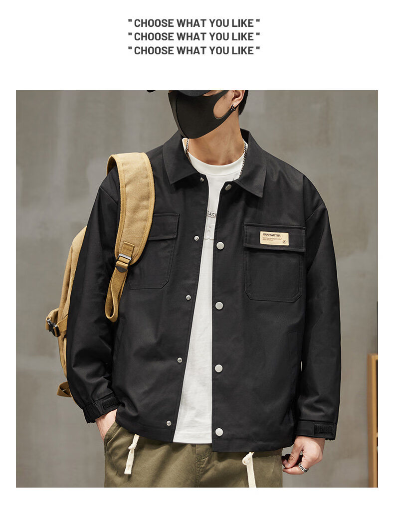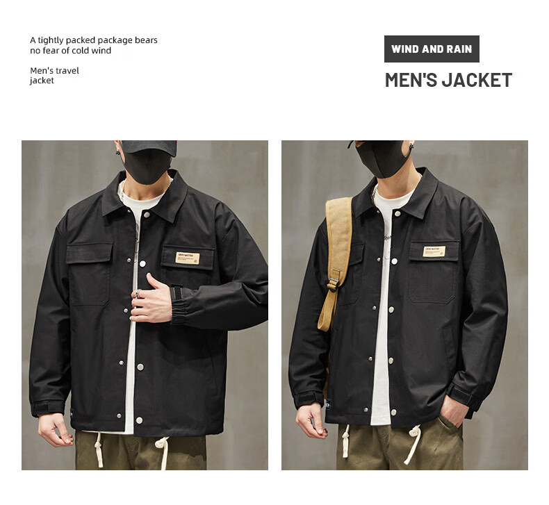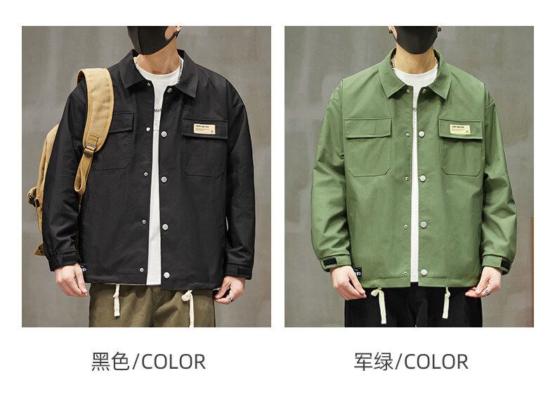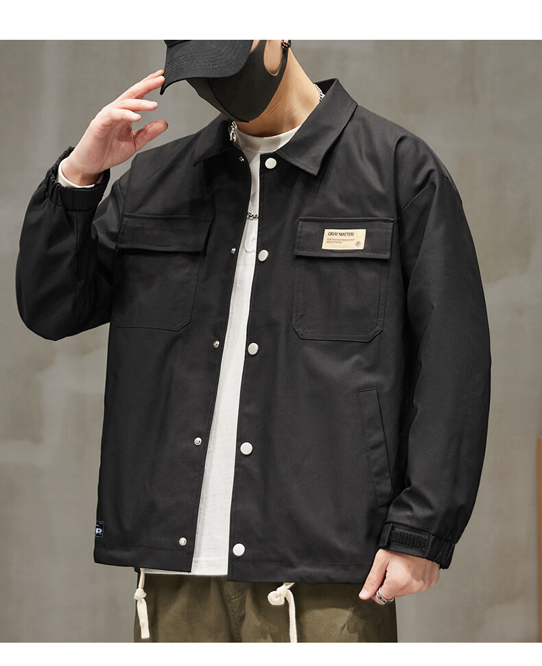 啄木鸟工装外套男士2025新款秋季宽松百搭夹克休闲复古男款上衣服 黑色 【官方正品】 S 建议【80斤-100斤】