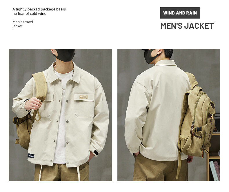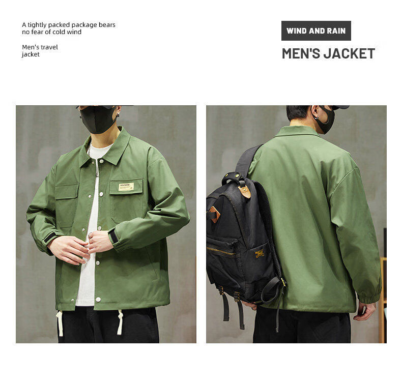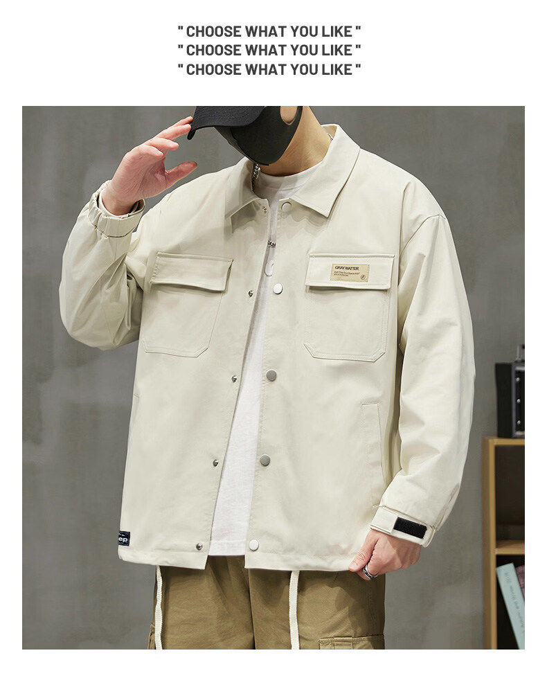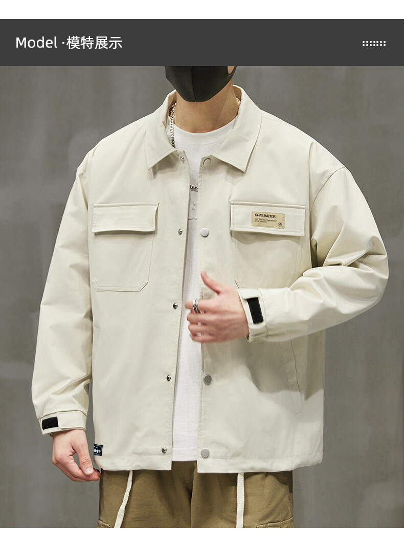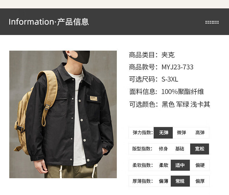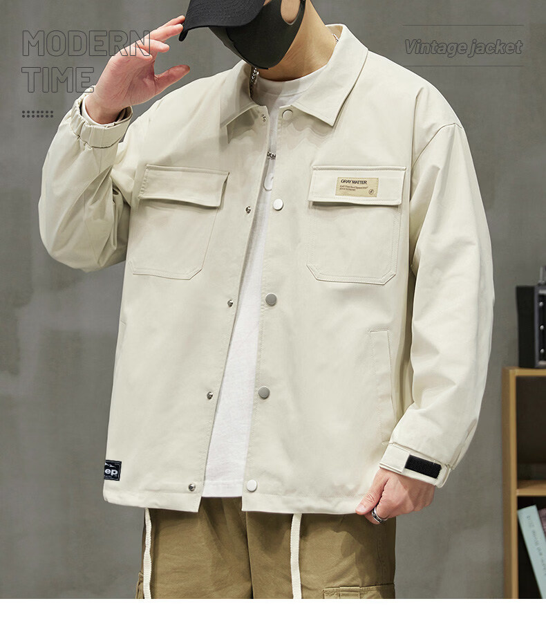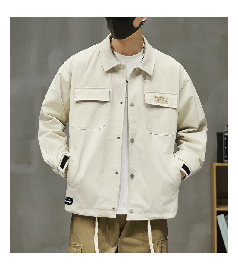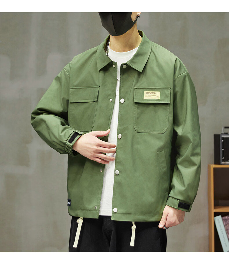 啄木鸟工装外套男士2025新款秋季宽松百搭夹克休闲复古男款上衣服 黑色 【官方正品】 S 建议【80斤-100斤】