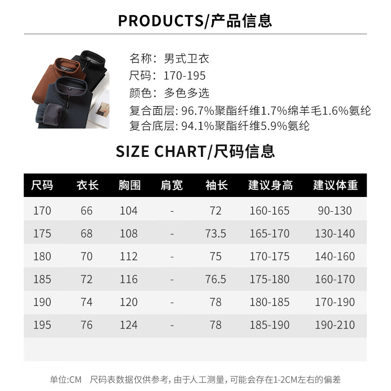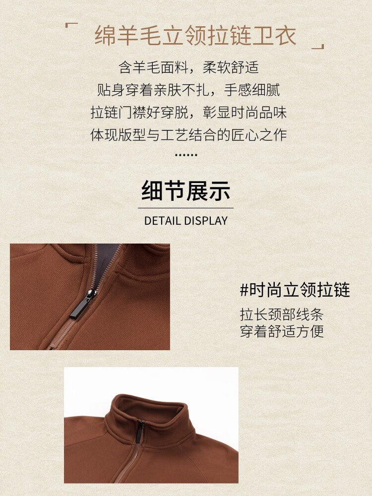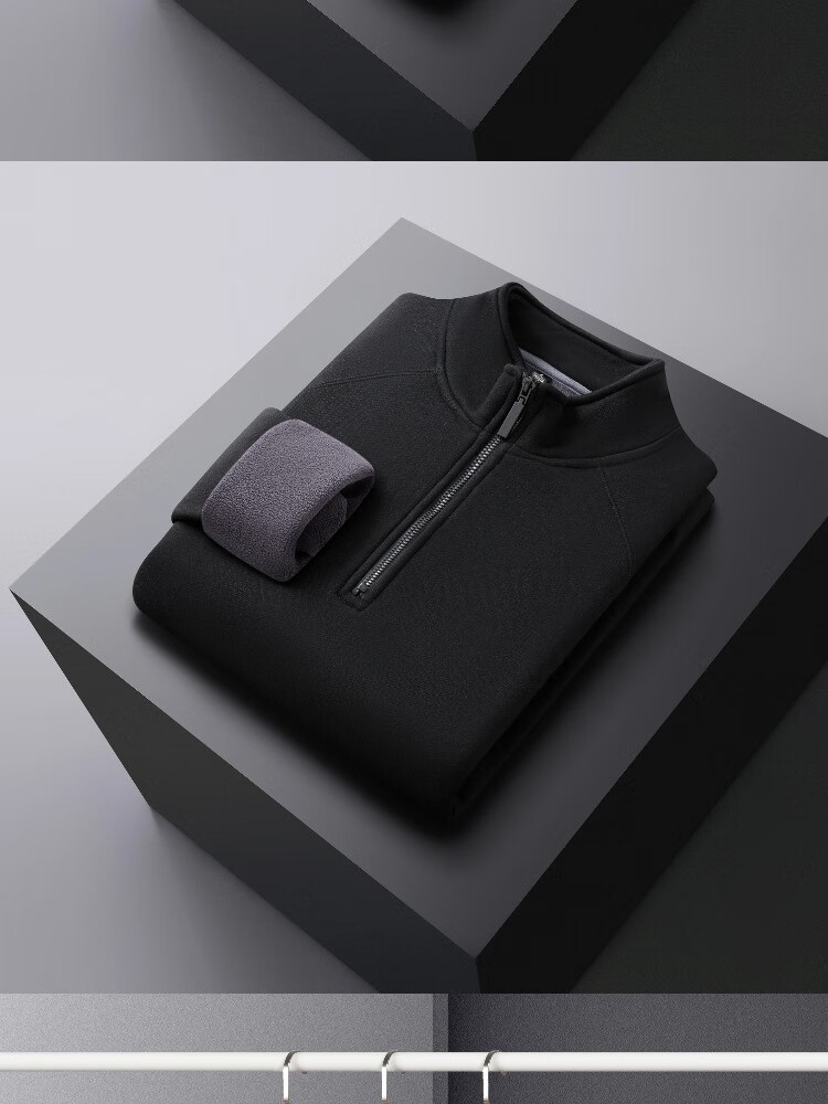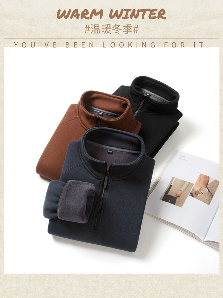 H 2000品牌新款2025年秋季休闲加绒立领半拉链卫衣 黑色 L 175 推荐130-140斤