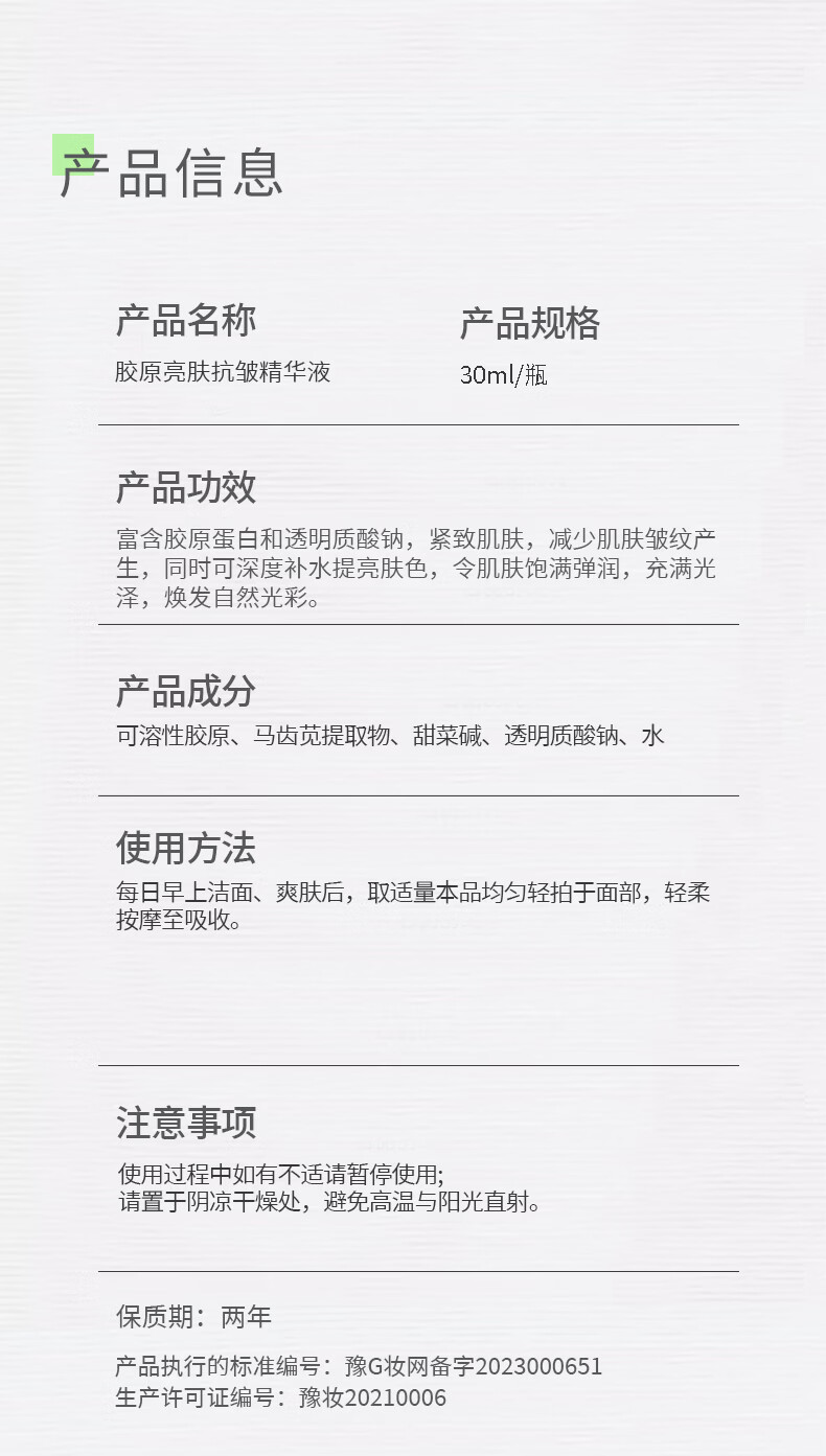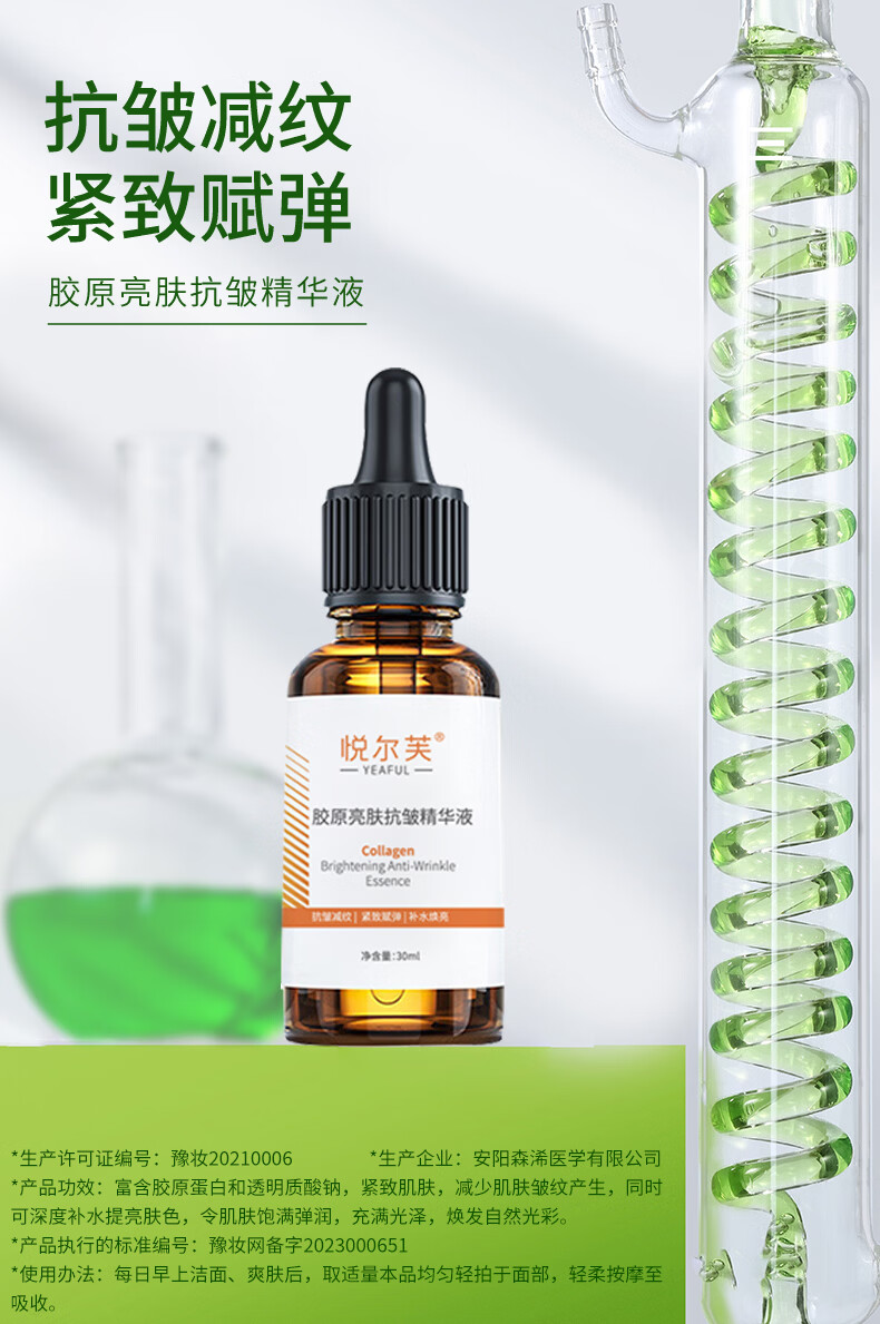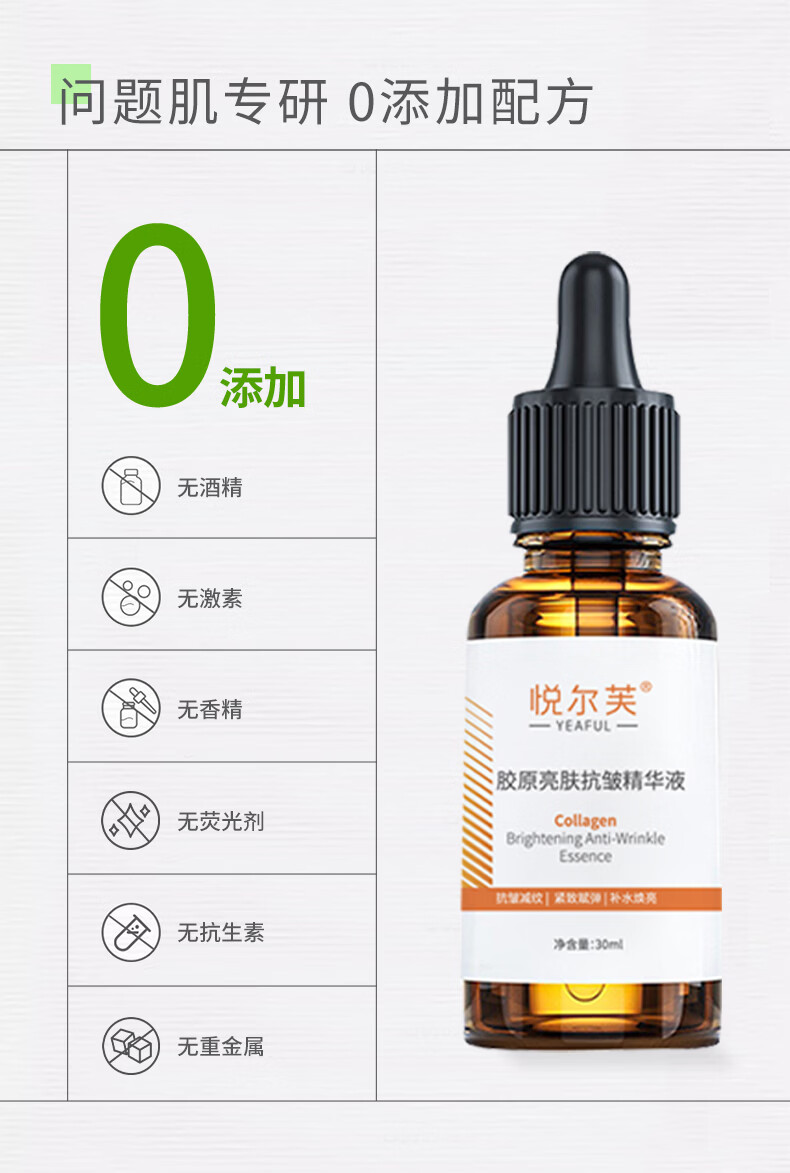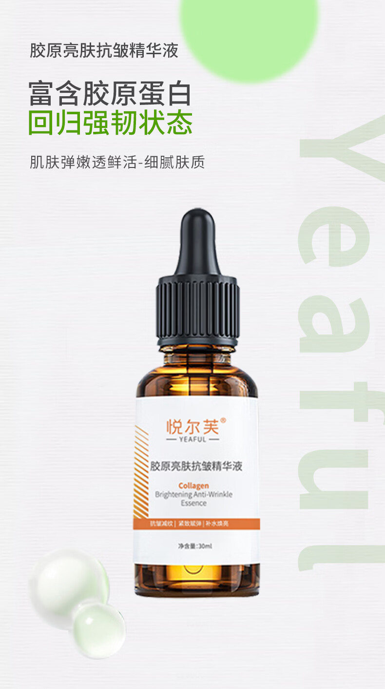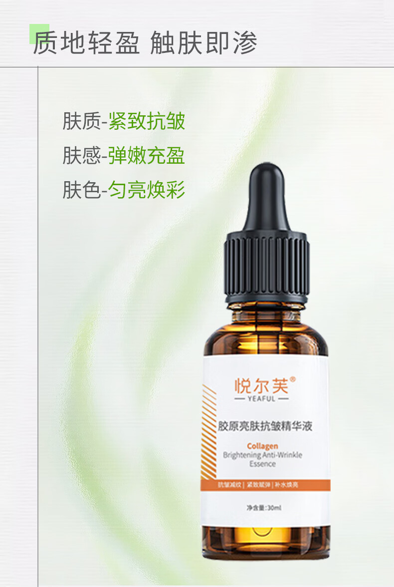 悦尔芙胶原亮肤抗皱保湿精华液提亮肤色补水减少皱纹紧致肌肤舒敏精华液 胶原舒缓保湿精华液30ml