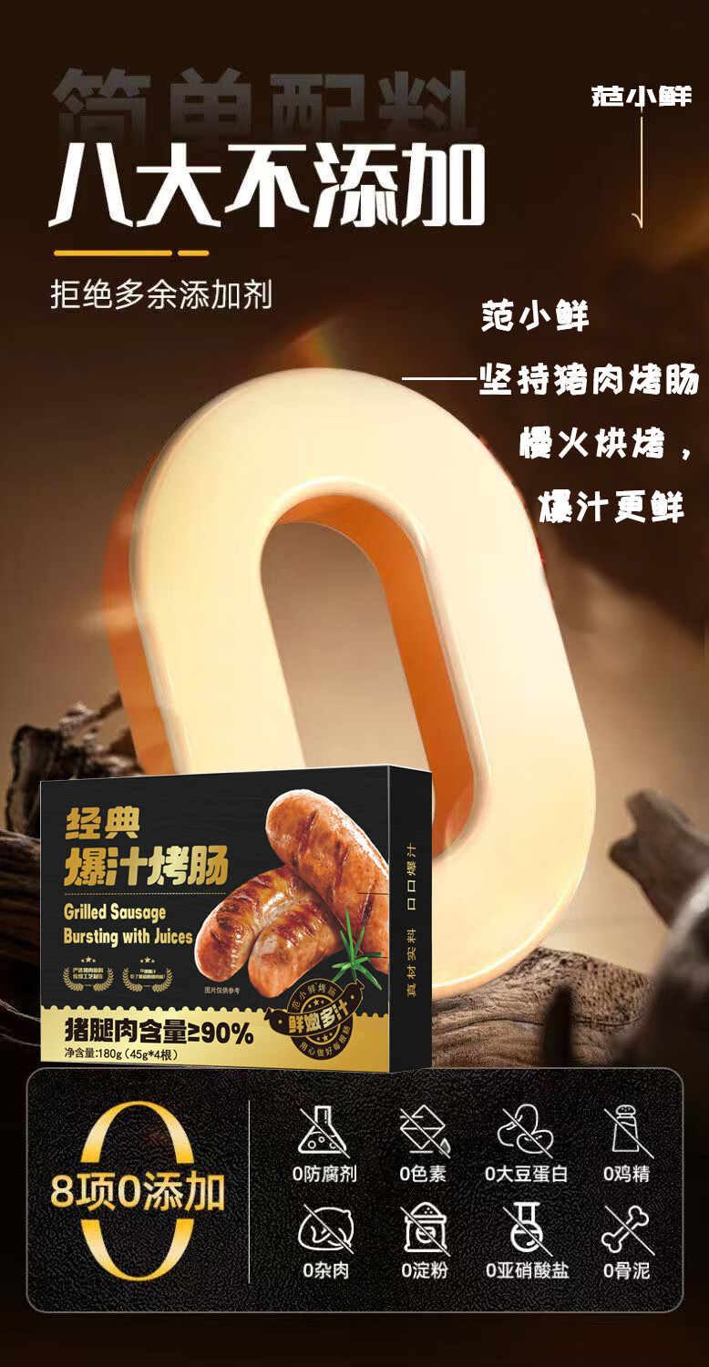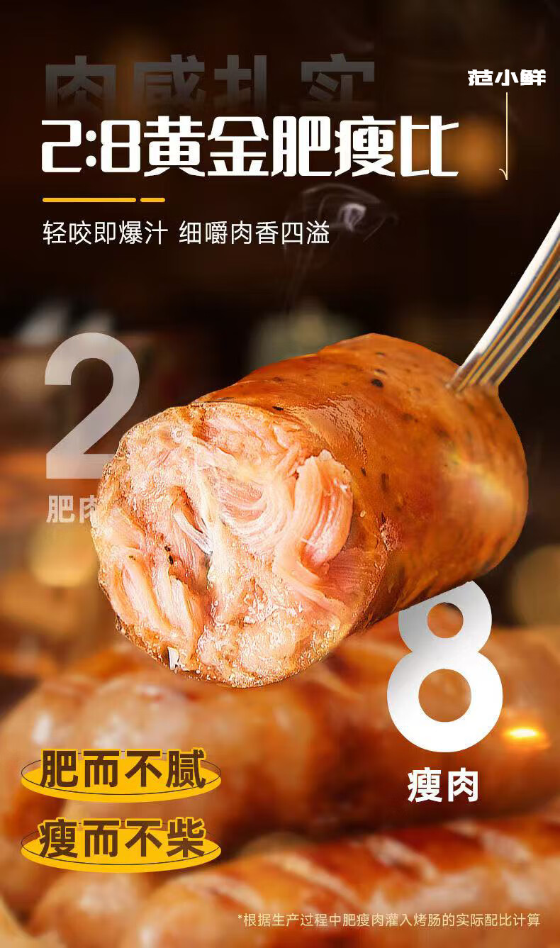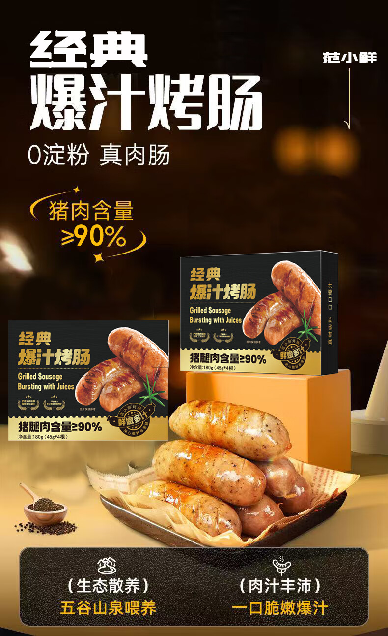 范小鲜经典原味猪肉爆汁烤肠台湾式风味烤肠热狗肠地道肠火山石鲜肉香肠