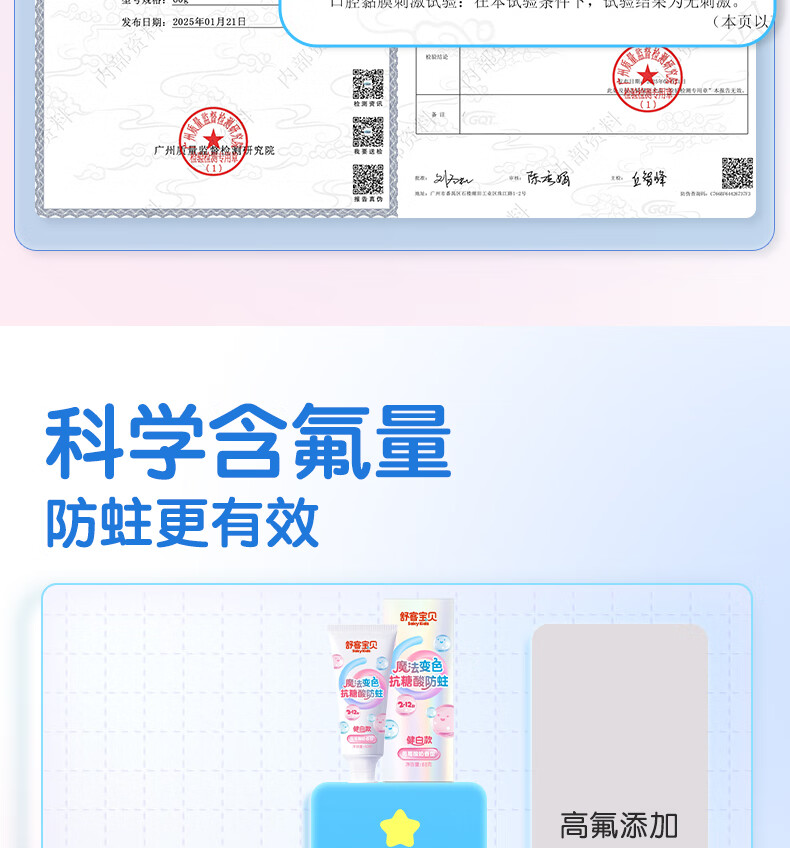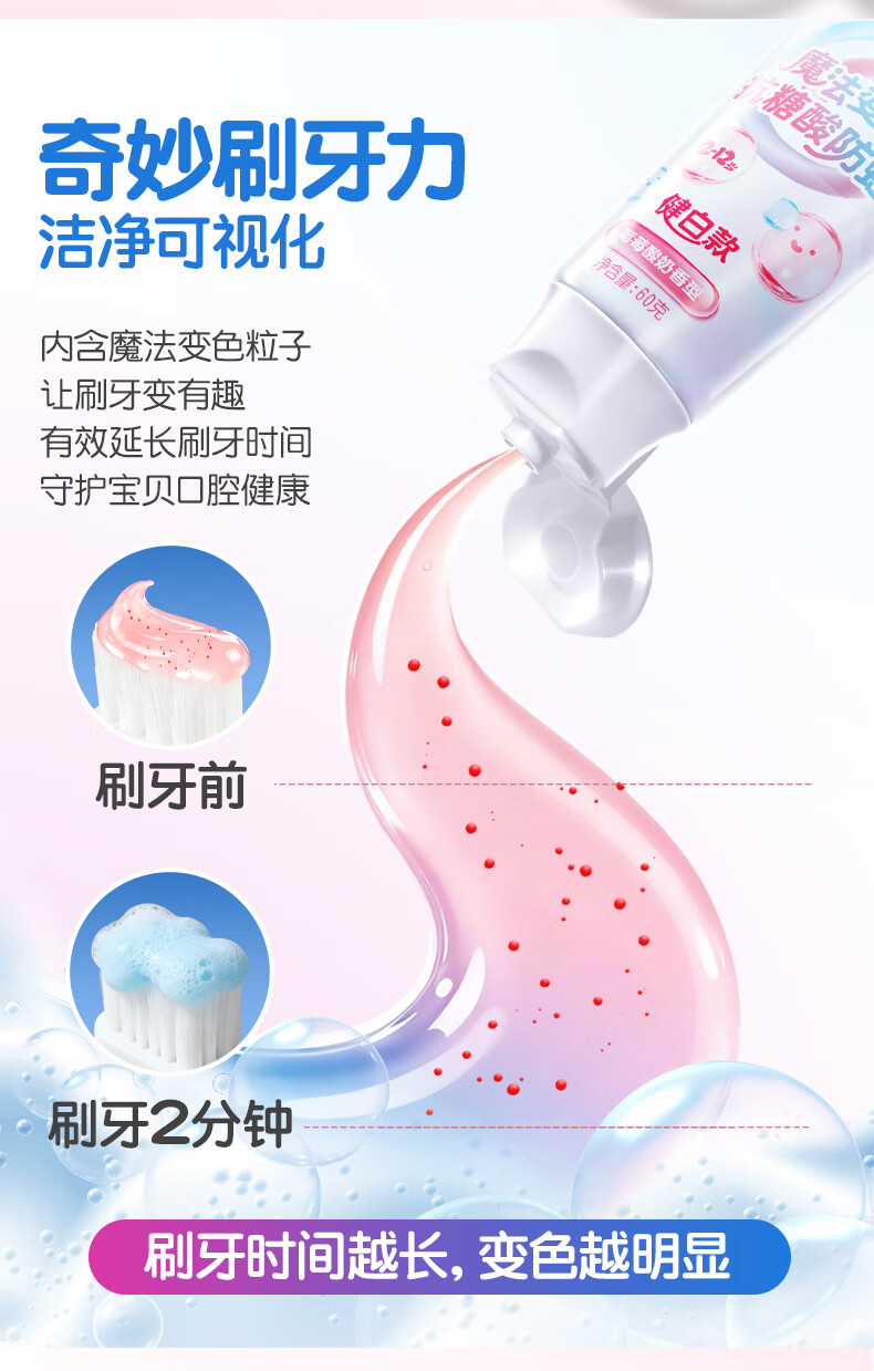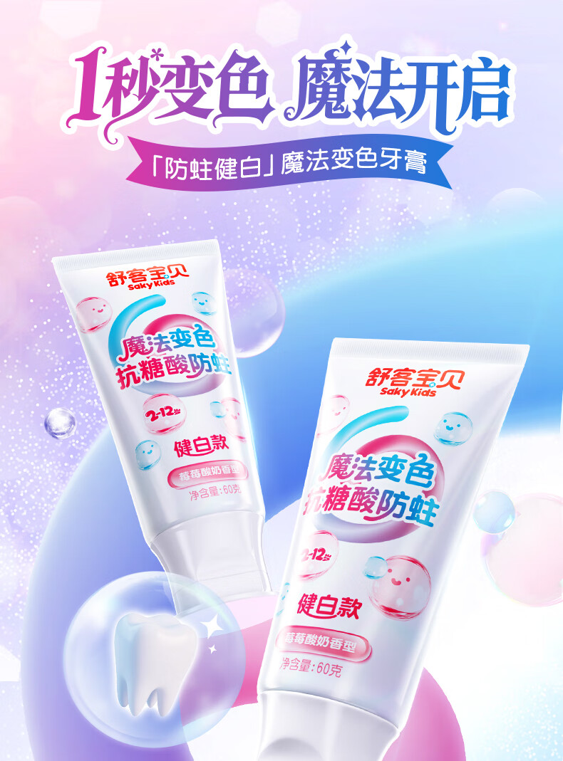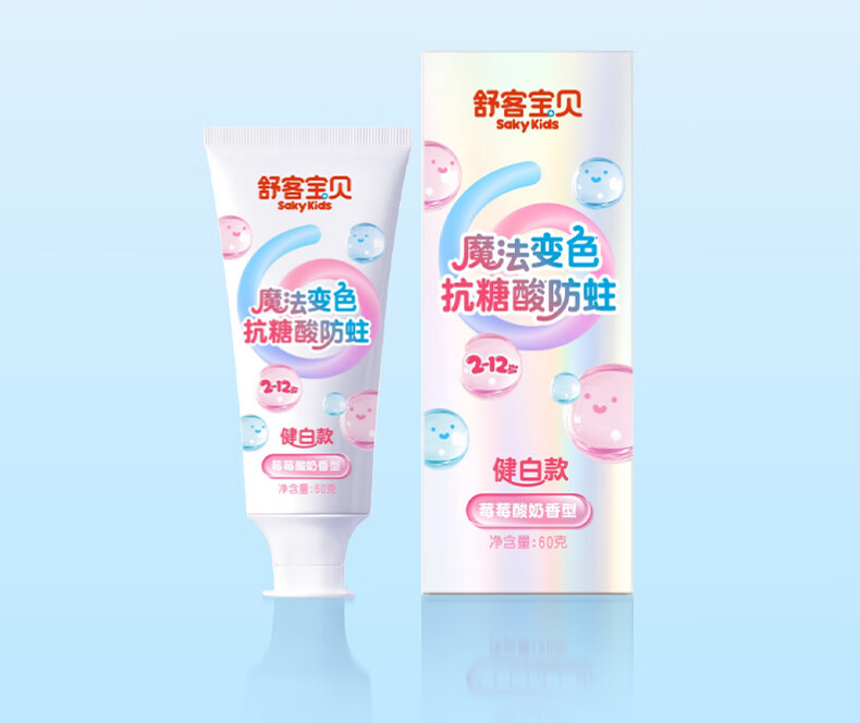 舒客宝贝魔法变色儿童牙膏2-6-12含氟防蛀抗糖健白克龋齿趣味刷牙可视清洁 魔法变色牙膏(草莓味)60g