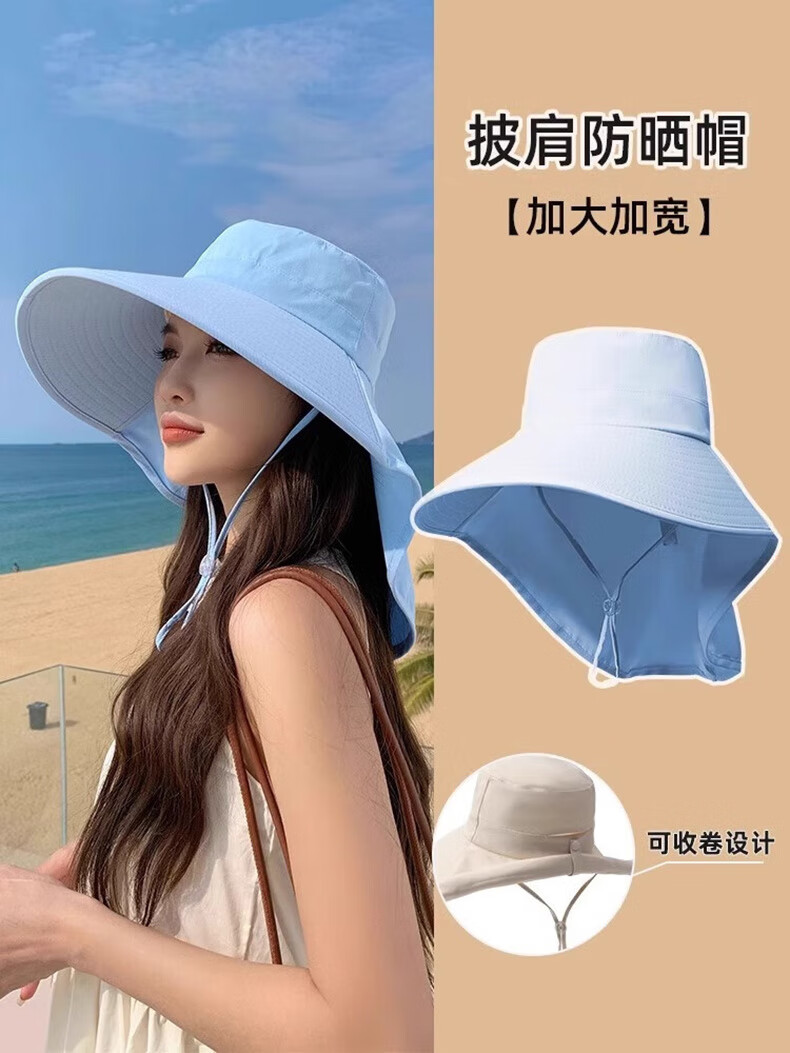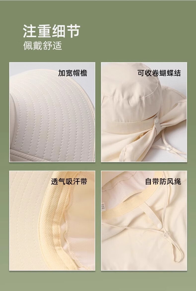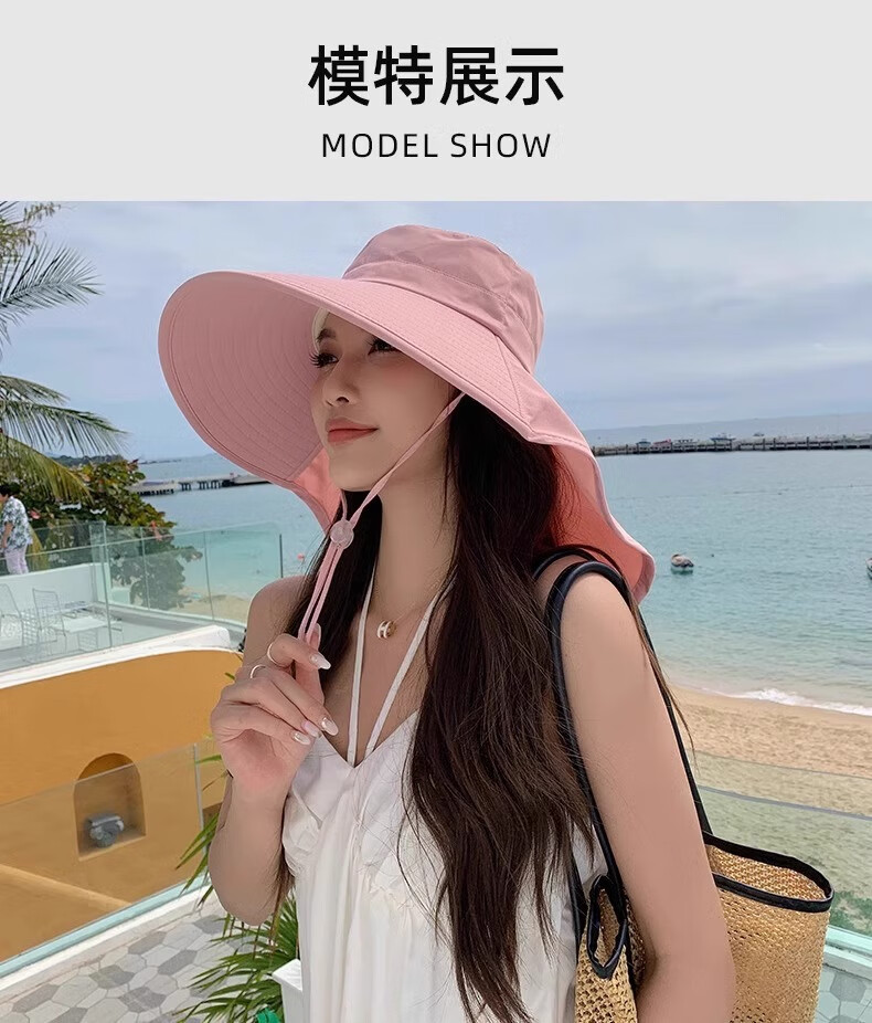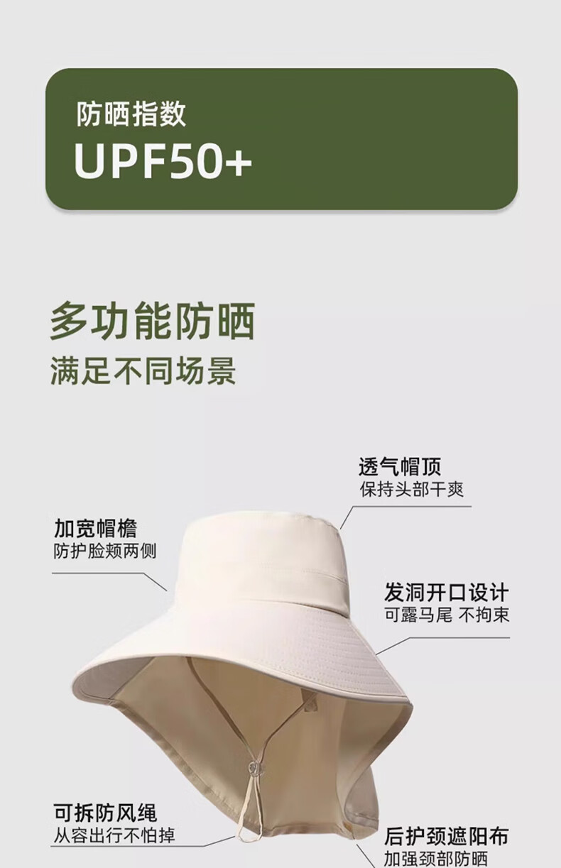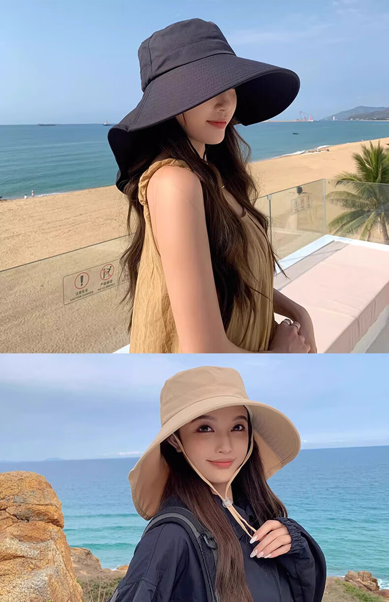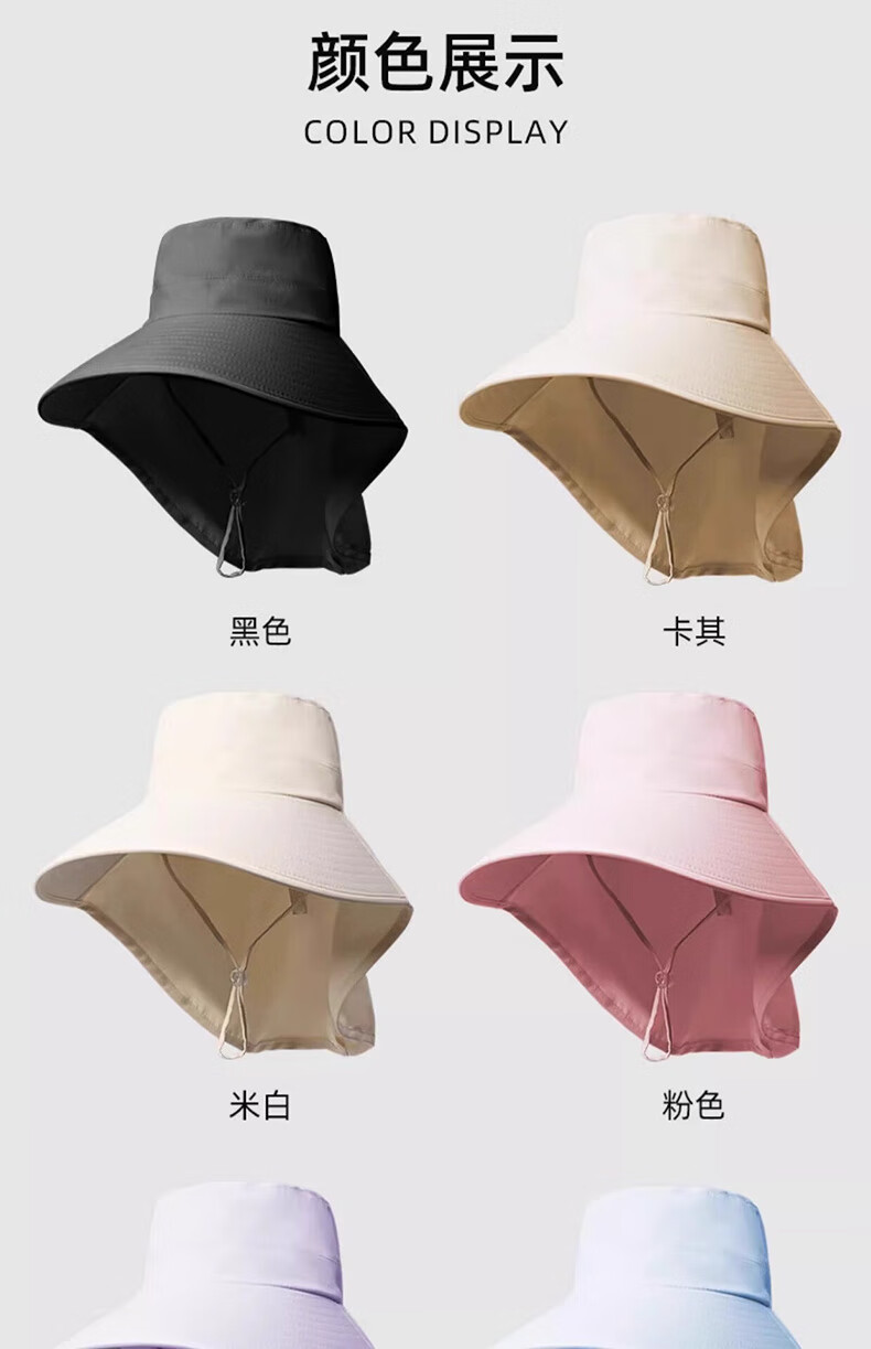 简时行防晒帽子女夏季遮脸披肩大檐太阳帽骑行护颈沙滩百搭扎马尾遮阳帽 深灰(可拆卸)