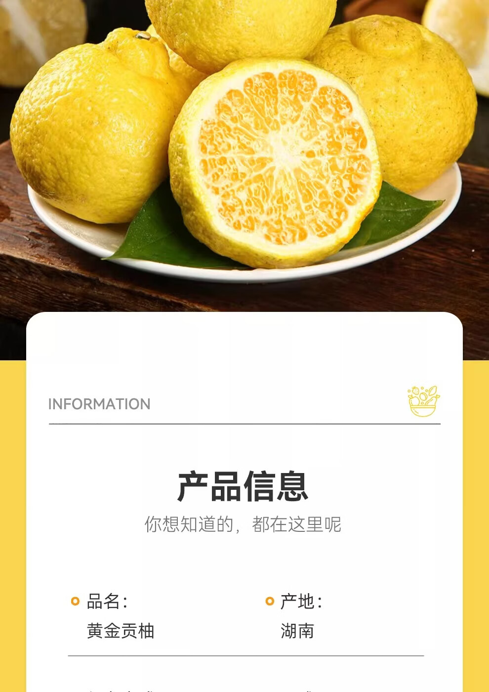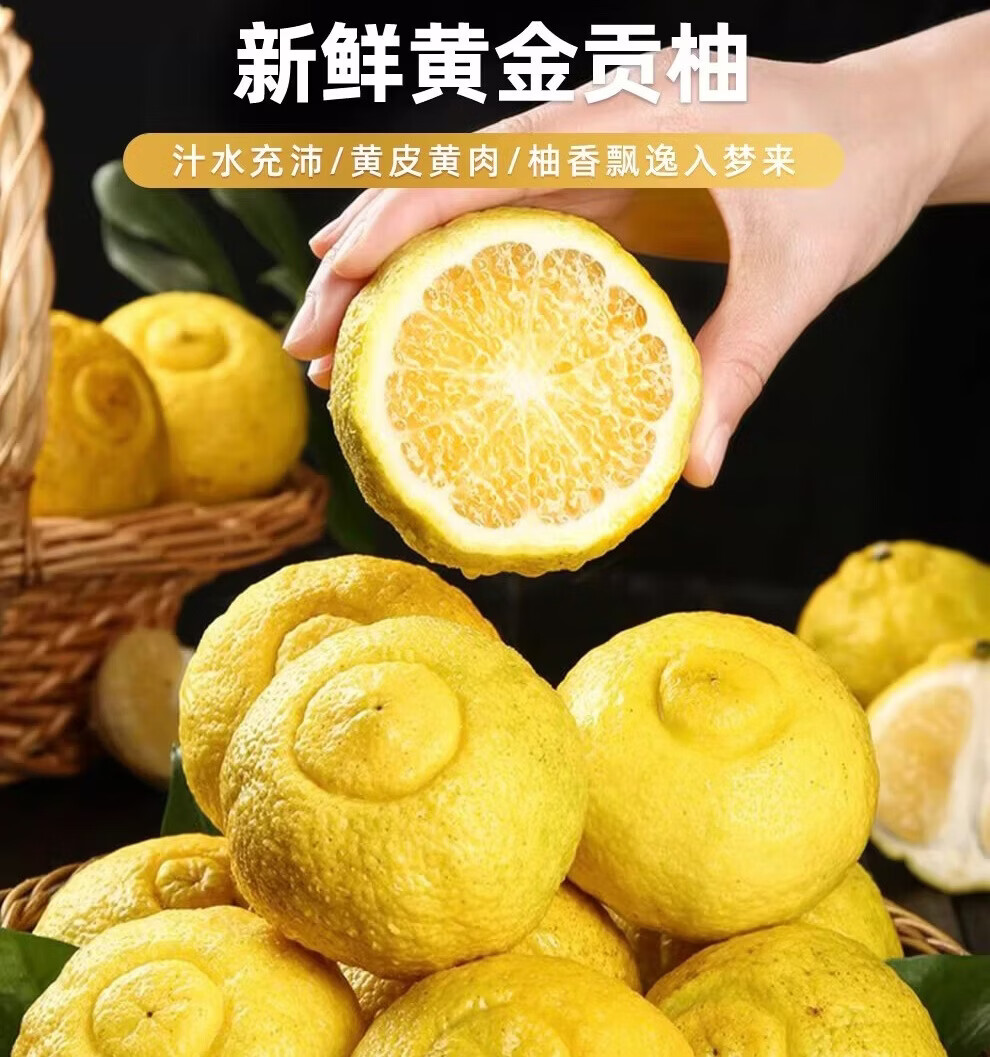 品鲜将黄金贡柚湖北怀化柑橘柚子春香柚黄金柑时令新鲜水果年货礼盒 贡柚礼盒 9斤 果径70mm