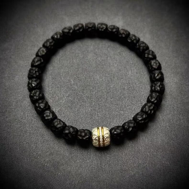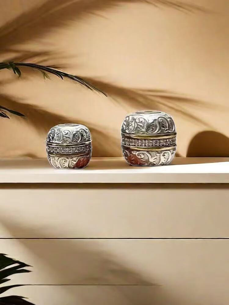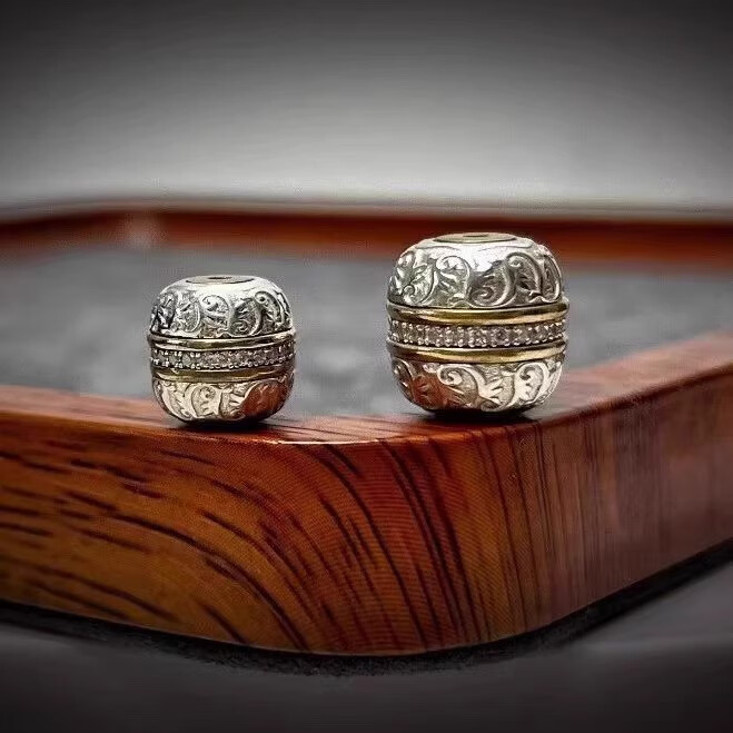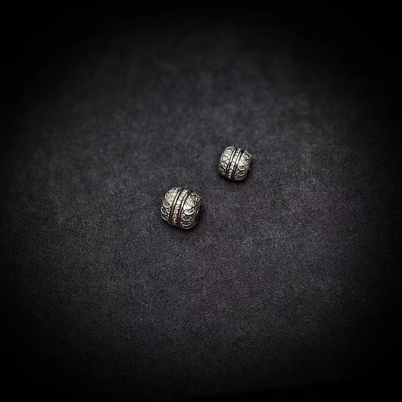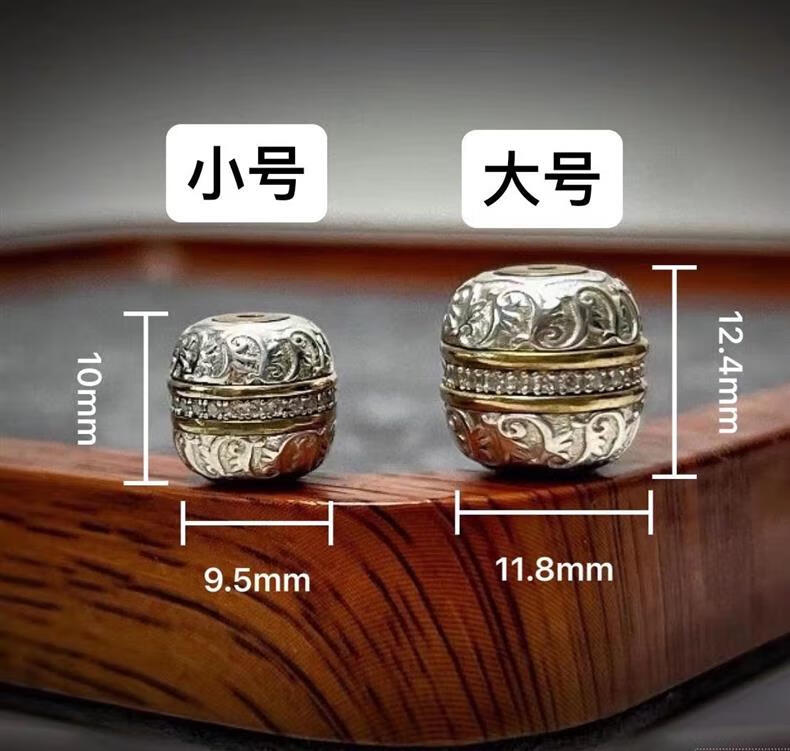 925银手工篆刻镶嵌唐草汉堡珠祥云珠隔珠腰珠顶珠文玩散珠diy配饰 大号单颗12mm
