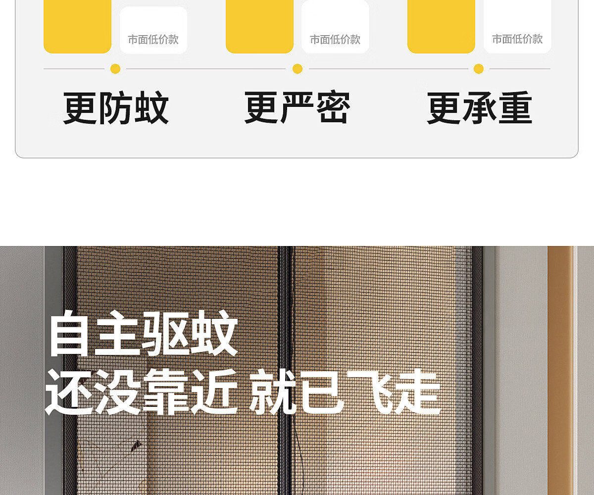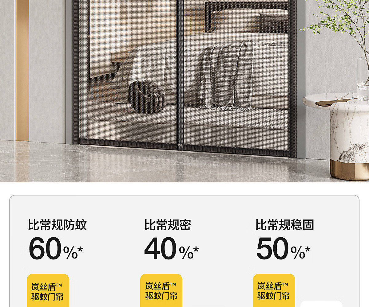 朔朔居纱门防蚊门帘自粘双开门新款入户门家用全磁条免打孔金刚网纱窗 艾纤盾【法铜咖】驱蚊型门帘 200cm宽*240cm高【超大加重块+四边加宽】