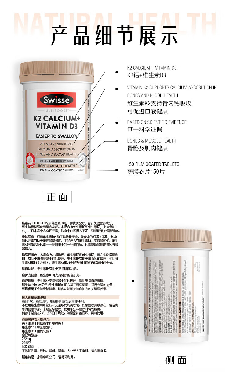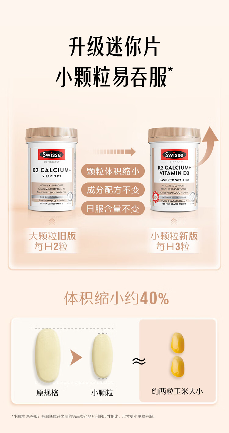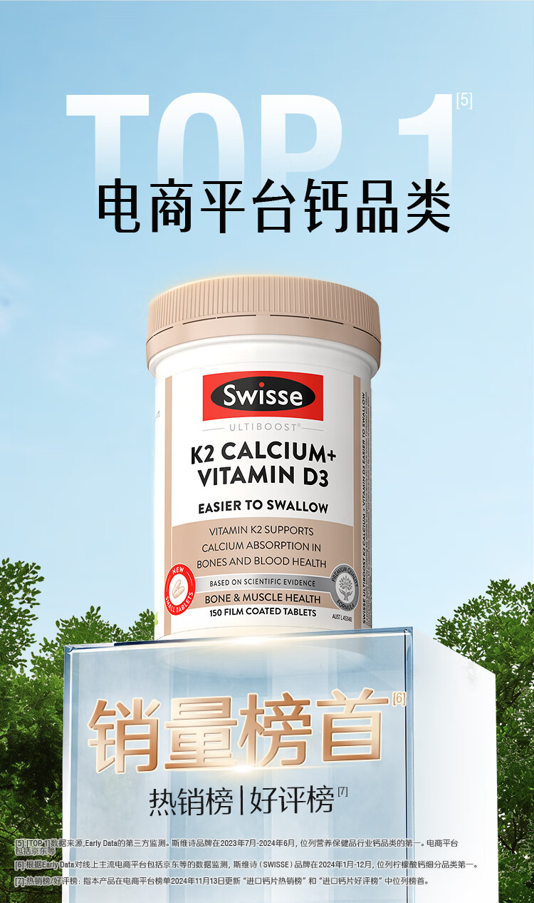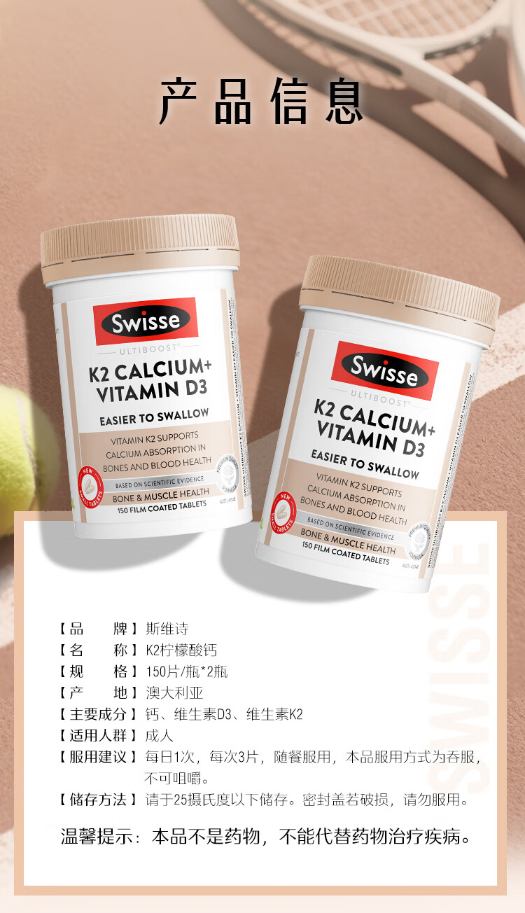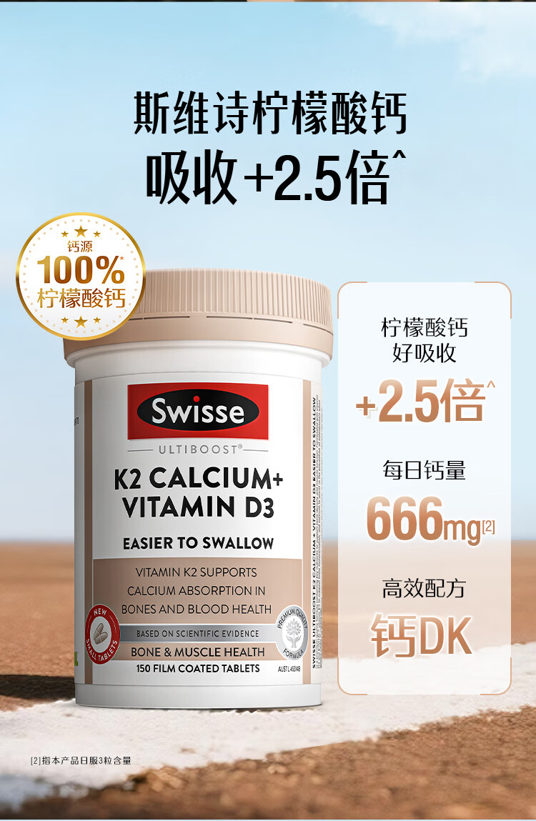 Swisse斯维诗 钙片K2柠檬酸钙迷你片维生素d 成人中老年人补钙150片*2